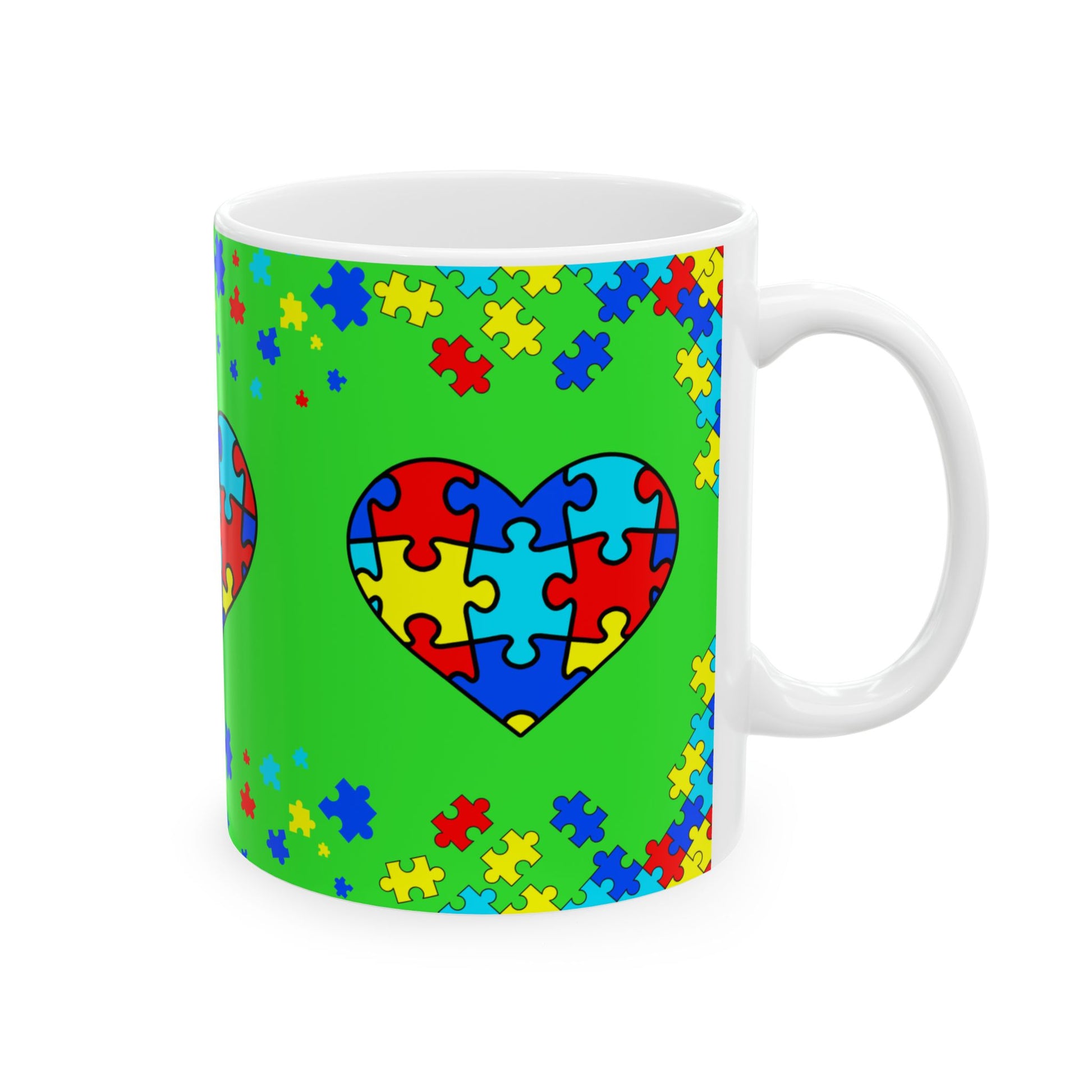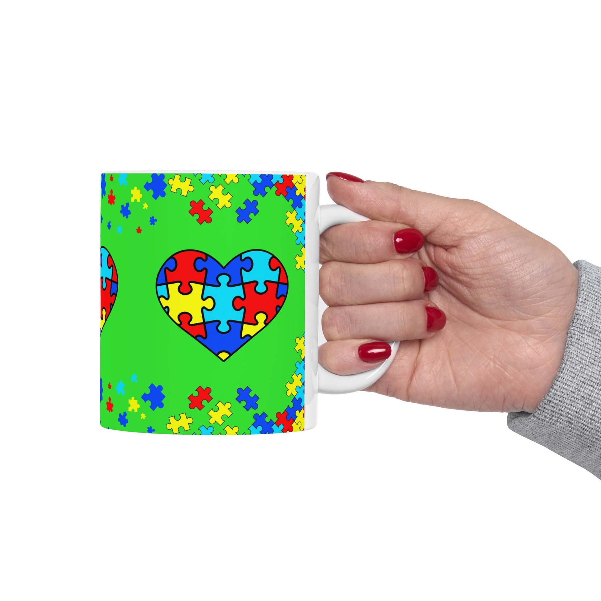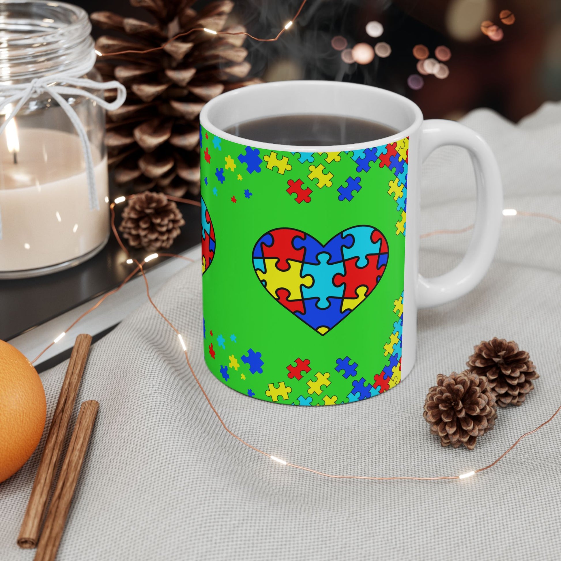Colorful Autism Puzzle Piece Mug perfect for coffee, tea and hot chocolate that makes a great gift for yourself or the special people in your life! We've created a beautiful image that is sublimated onto a ceramic mug and wraps around the mug. It's BPA and Lead-free, microwave & dishwasher-safe, and made of white, durable ceramic in 11-ounce size. The perfect gift for coffee, tea, and chocolate lovers. All mugs feature a comfortable C-handle and a shiny finish so that they're both easy to use and great to look at. This is a great gift for the hard to shop for person in your life.