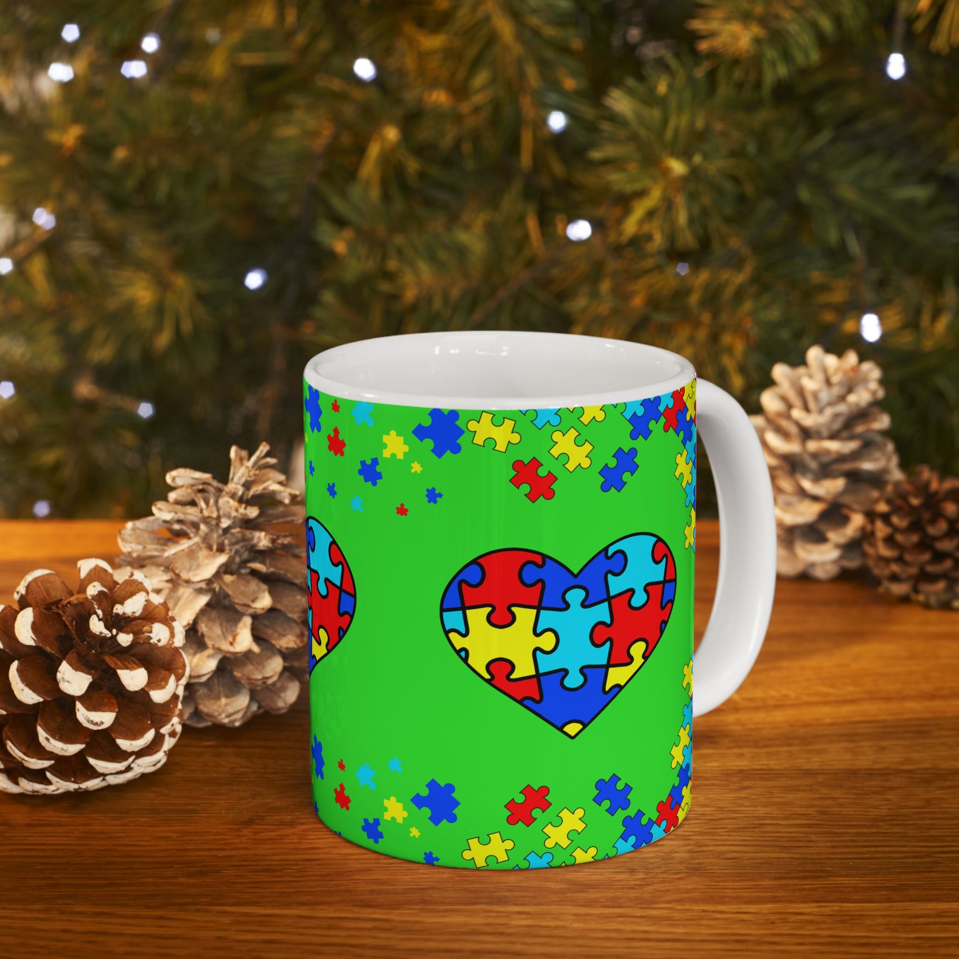 Autism Spectrum Awareness and Love Coffee Tea Mug Holiday Gift for Teacher Christmas Present Festive Unique Special Needs Gift Mug