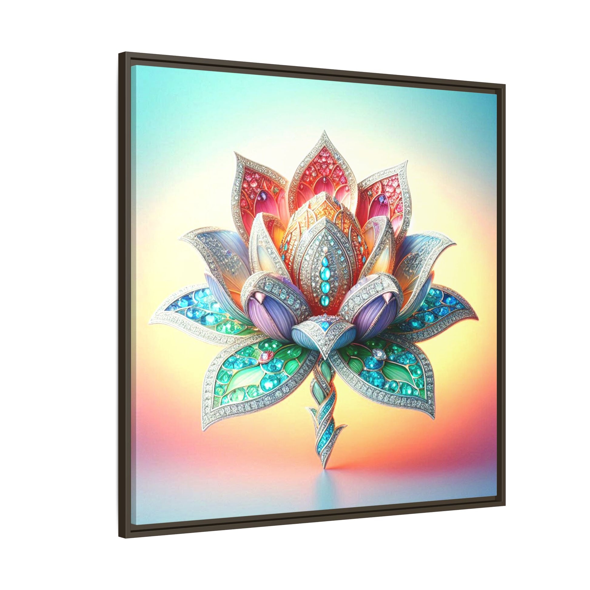 Bejeweled Lotus Blossom Framed Canvas Print Wall Art Unique Fashion Haute Couture Fashionista Flower Lover Gift Decor 3 Frame Colors