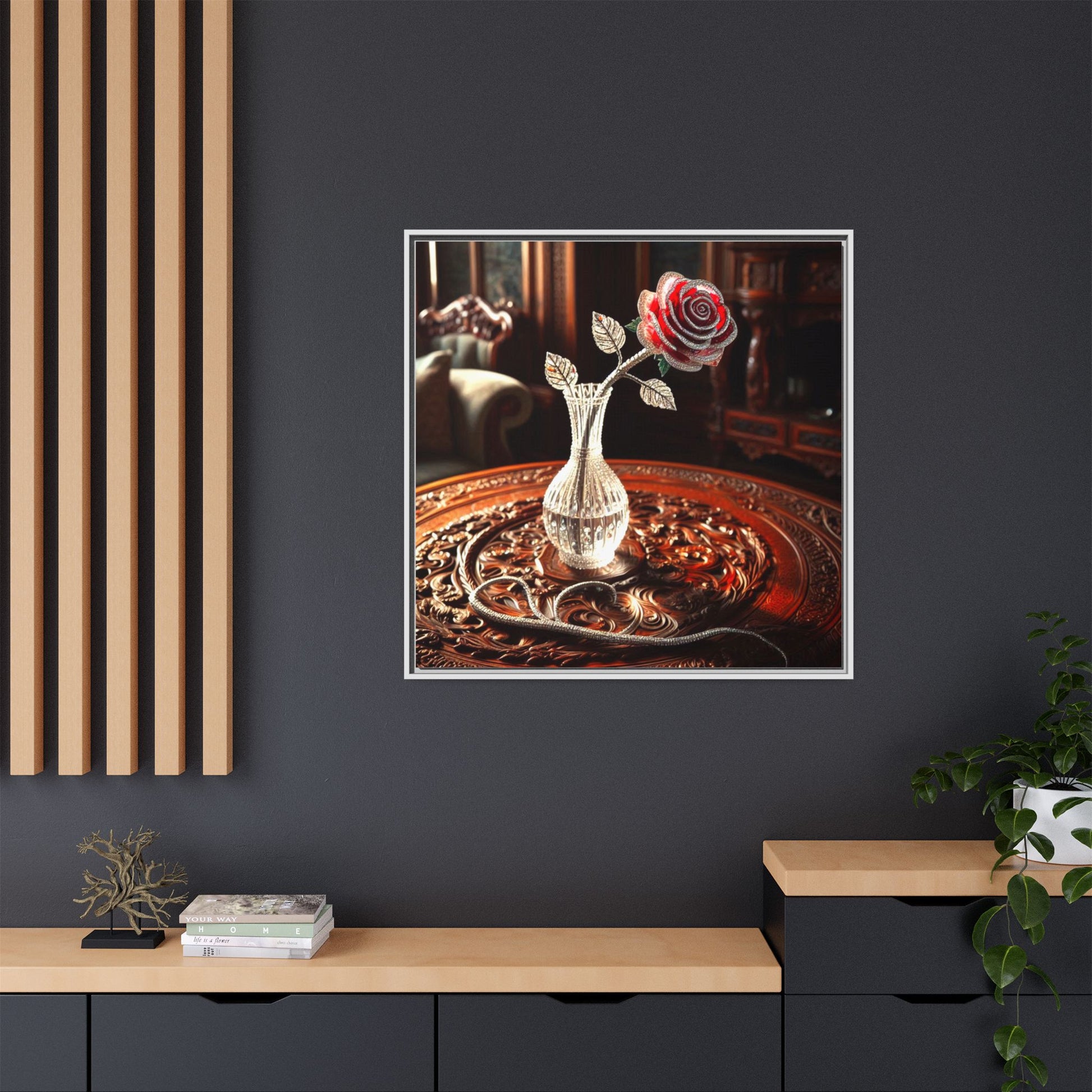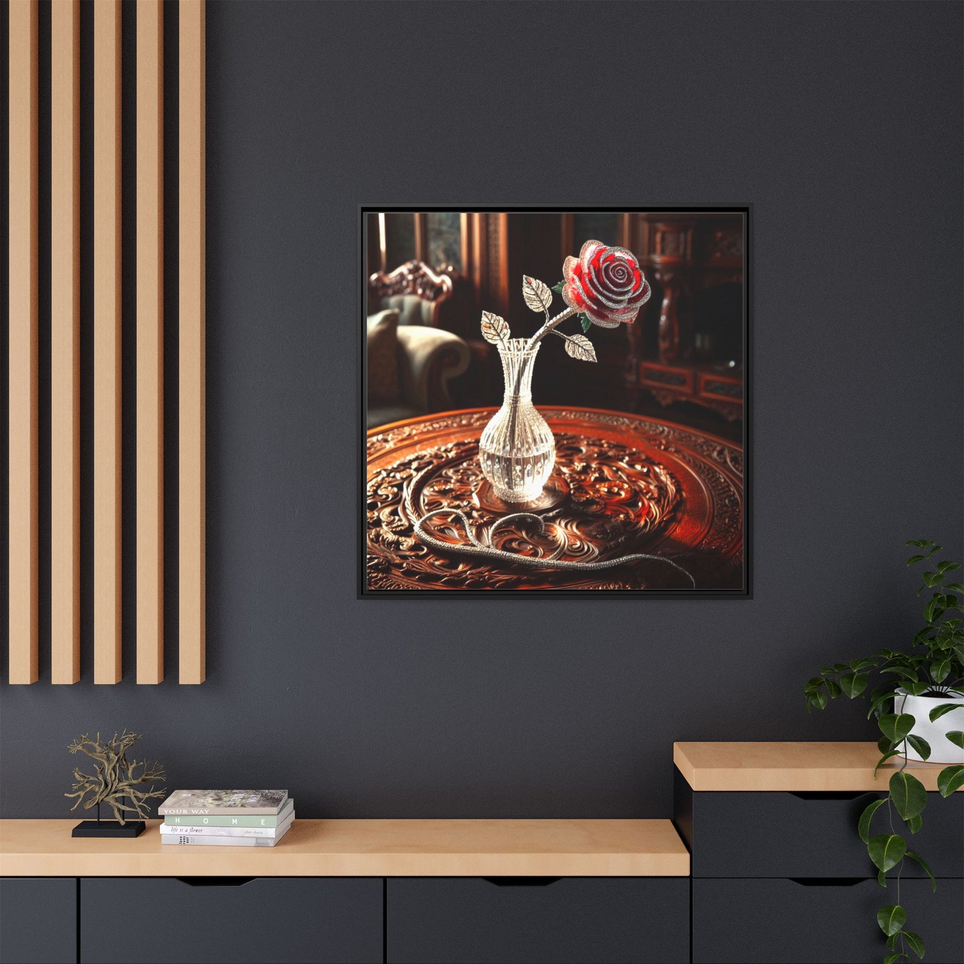 Bejeweled Red Rose Framed Canvas Print Wall Art Unique Fashion Designer Haute Couture Fashionista Flower Lover Gift Decor 3 Frame Colors