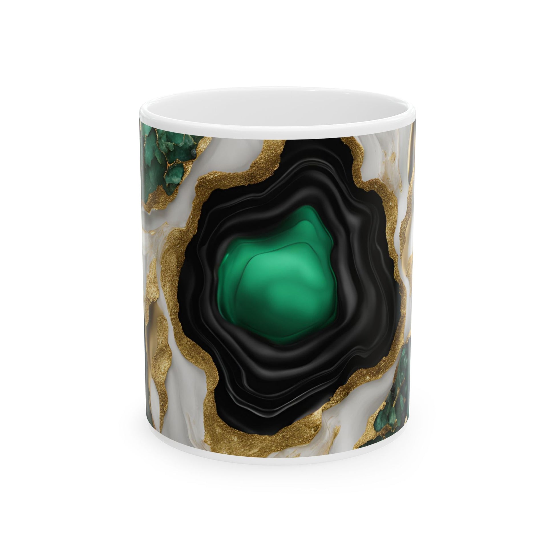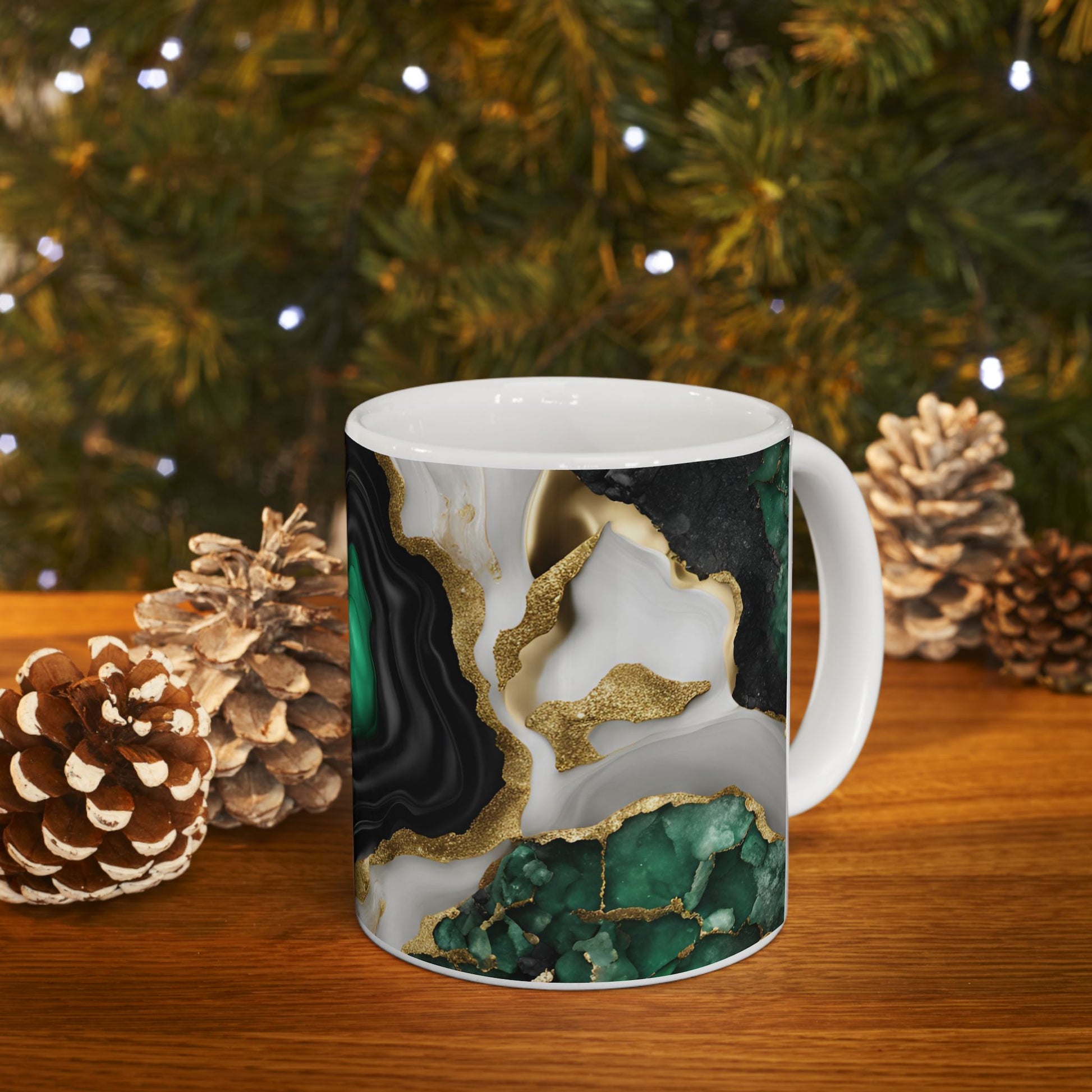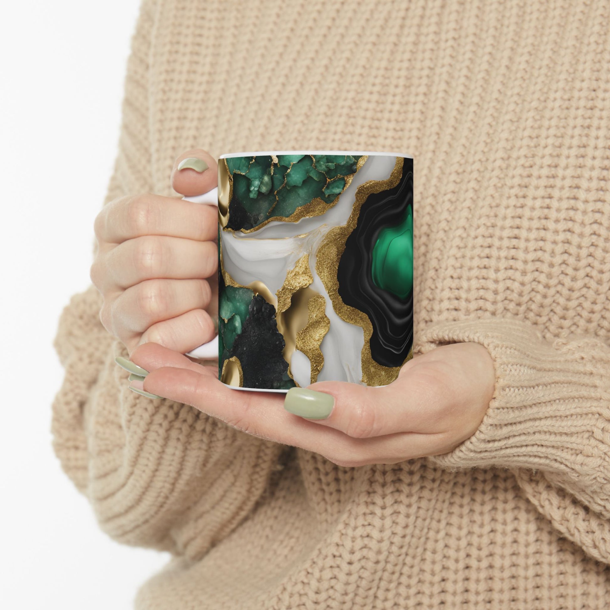 Black, White, Emerald Green and Gold Crystal Geode Design Coffee Tea Mug Boho Gemologist Gift Nature Lover Marble Rock Agate Geology Gift