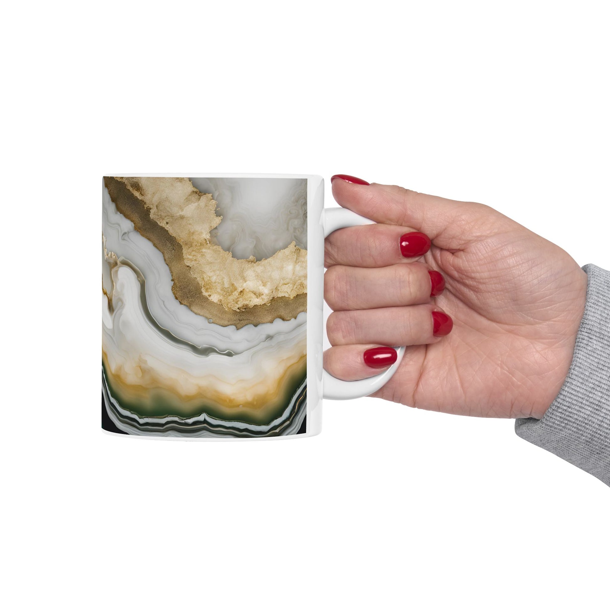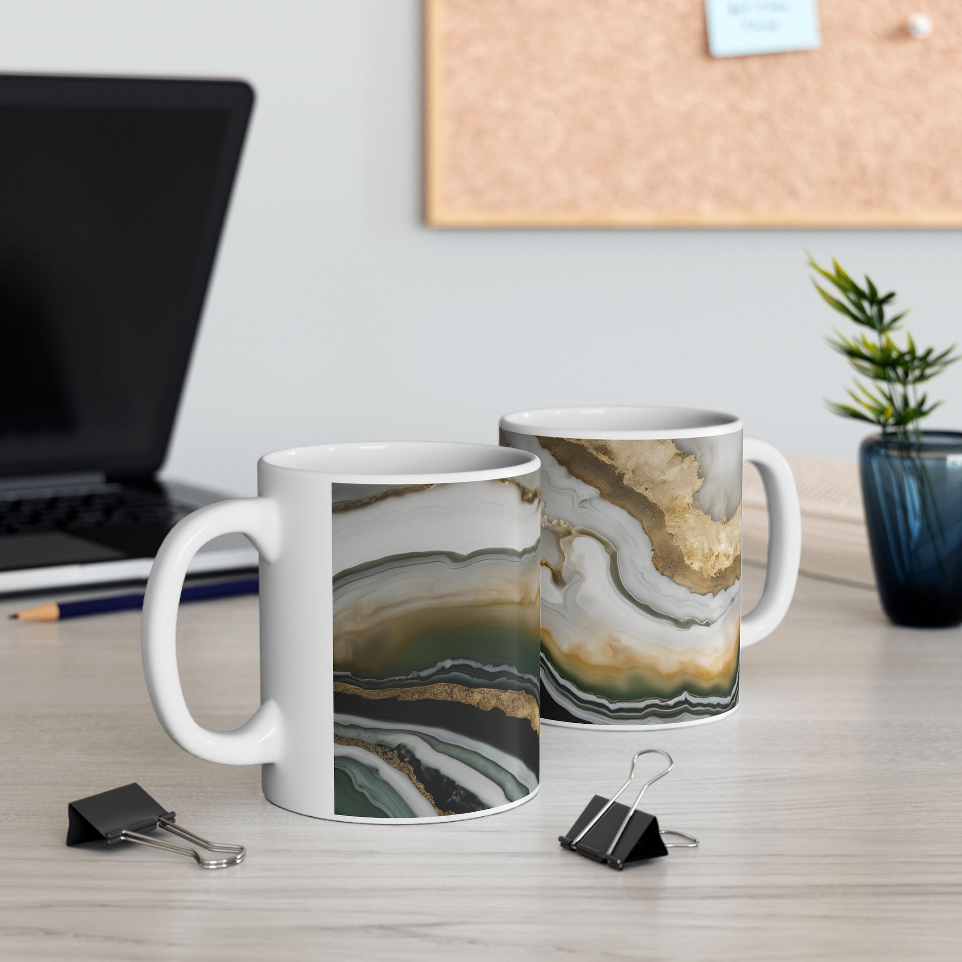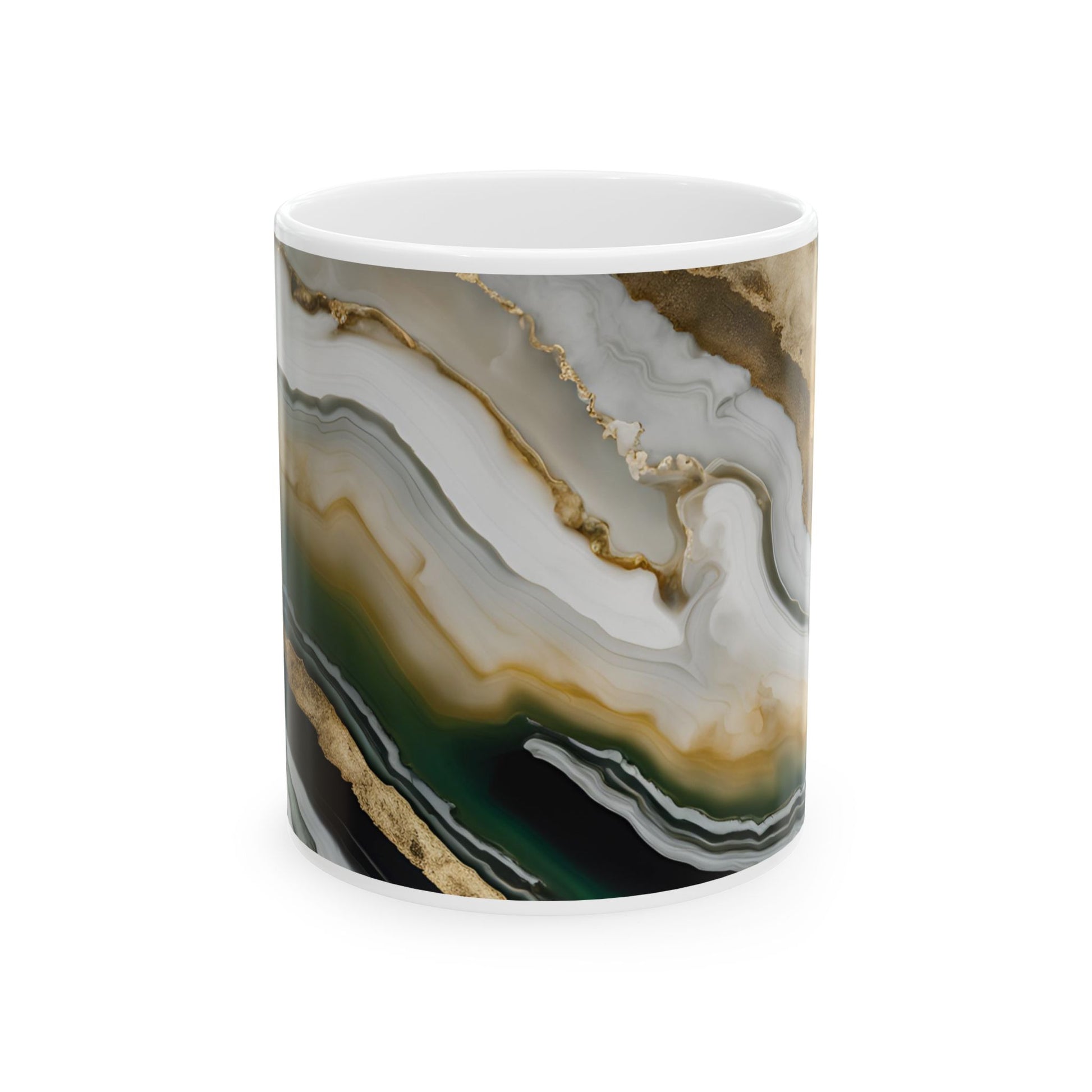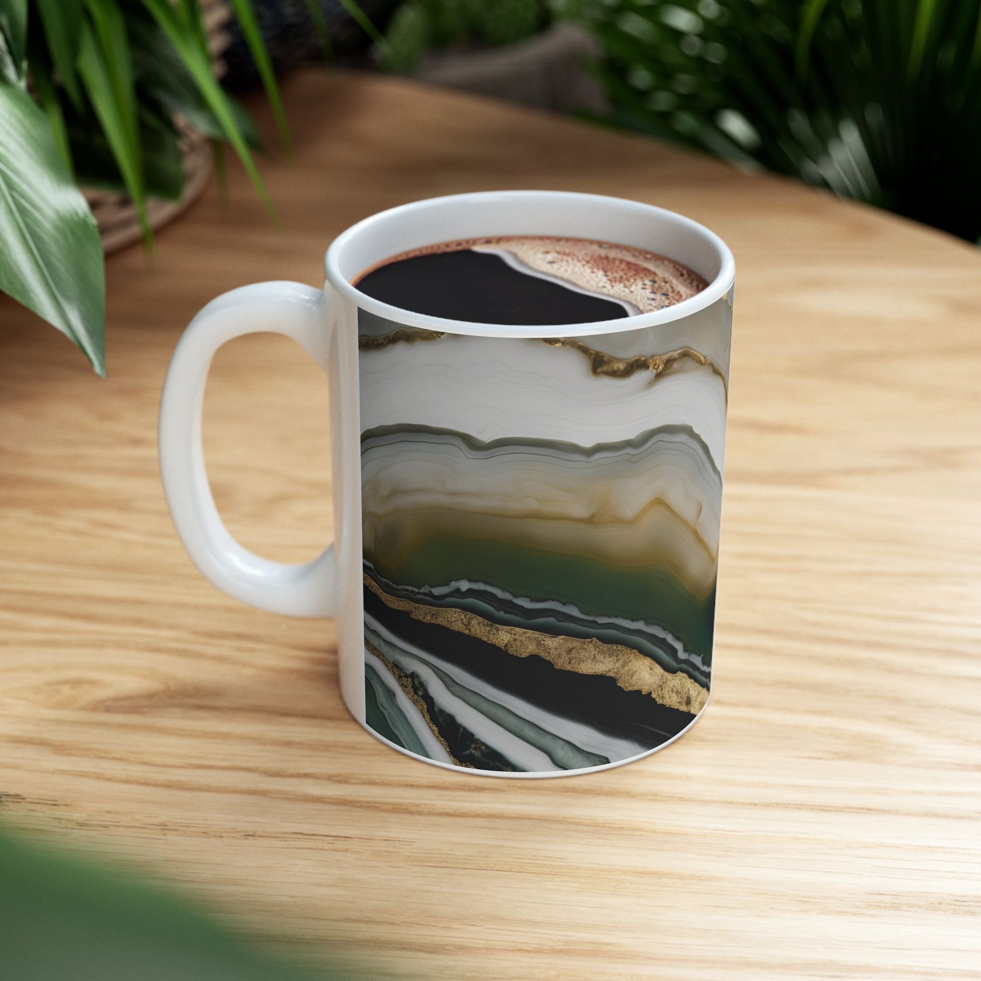 Black, White, Emerald Green and Gold Crystal Marble Design Coffee Tea Mug Boho Gemologist Gift Nature Lover Marble Rock Agate Geology Gift