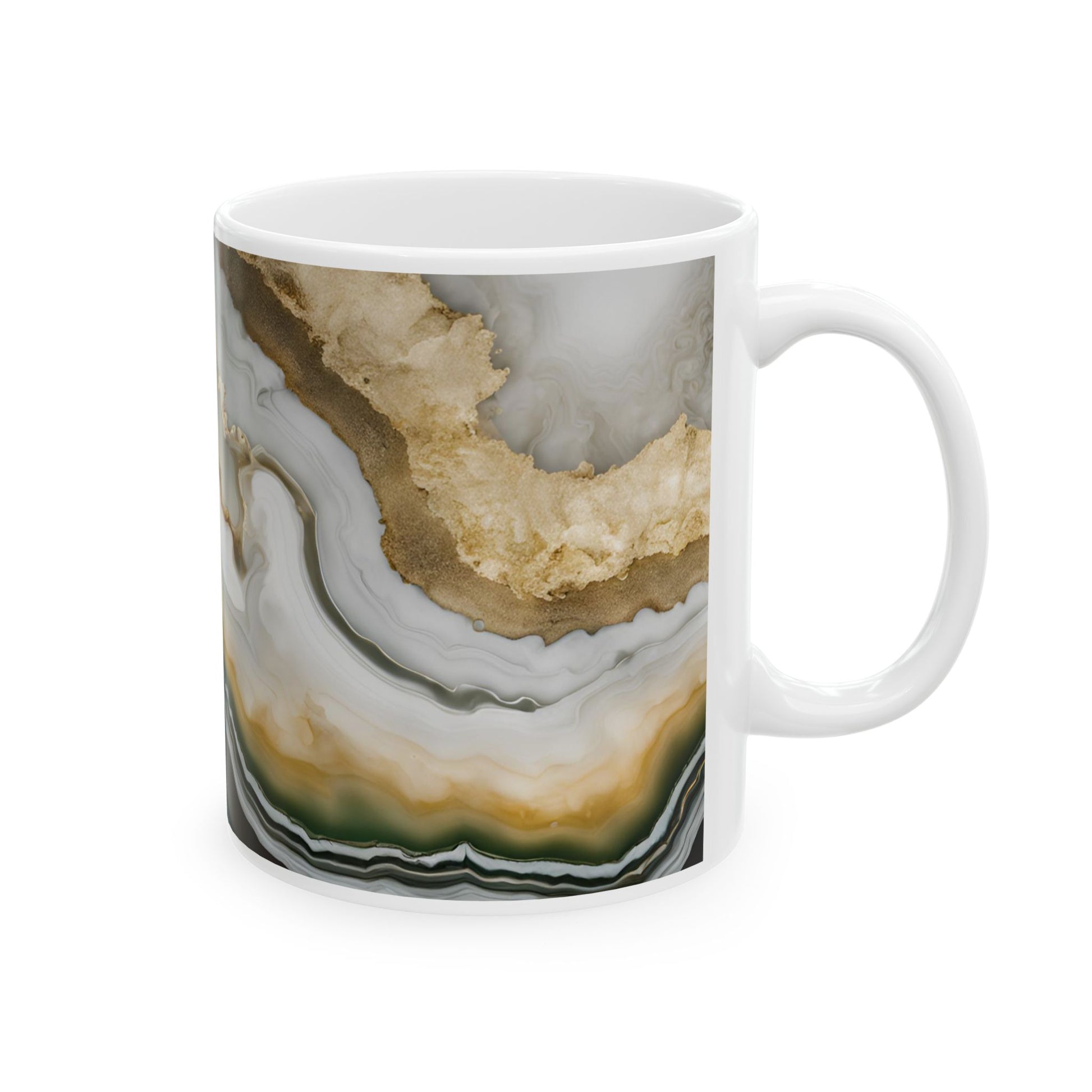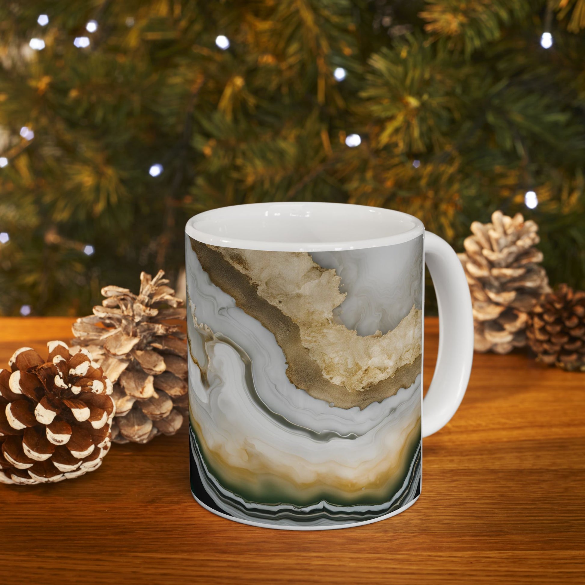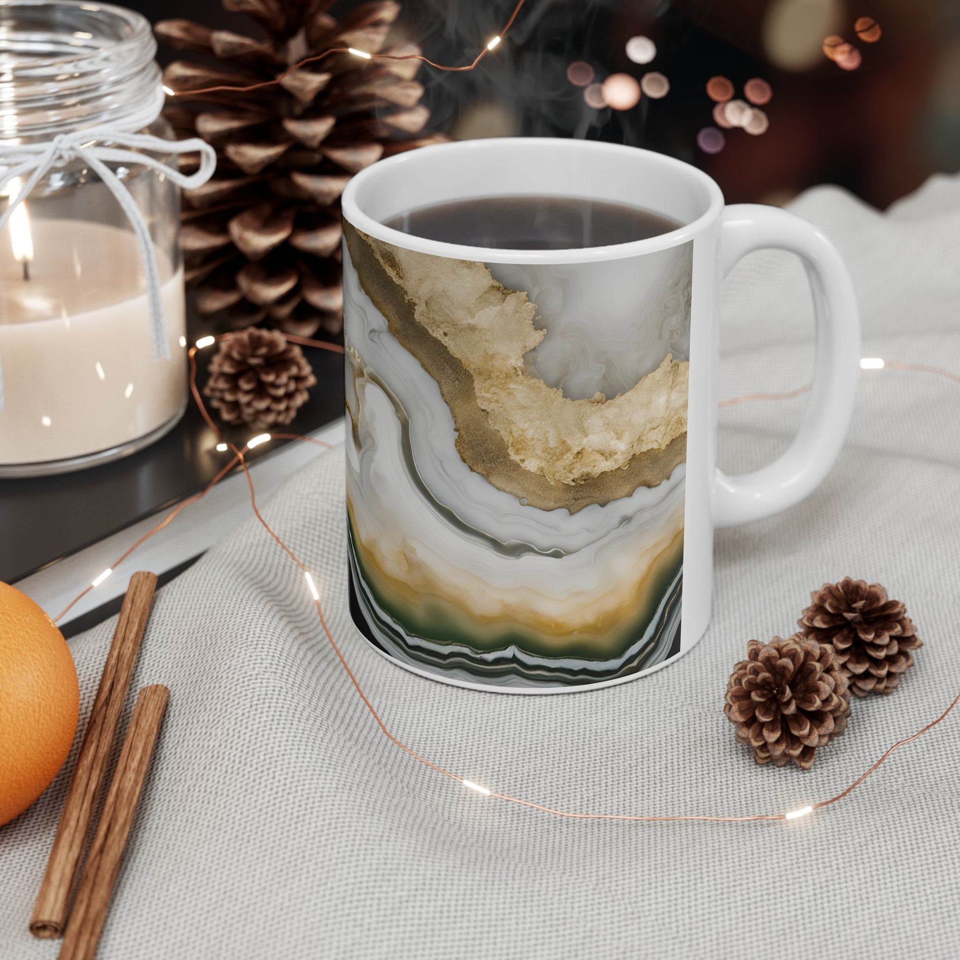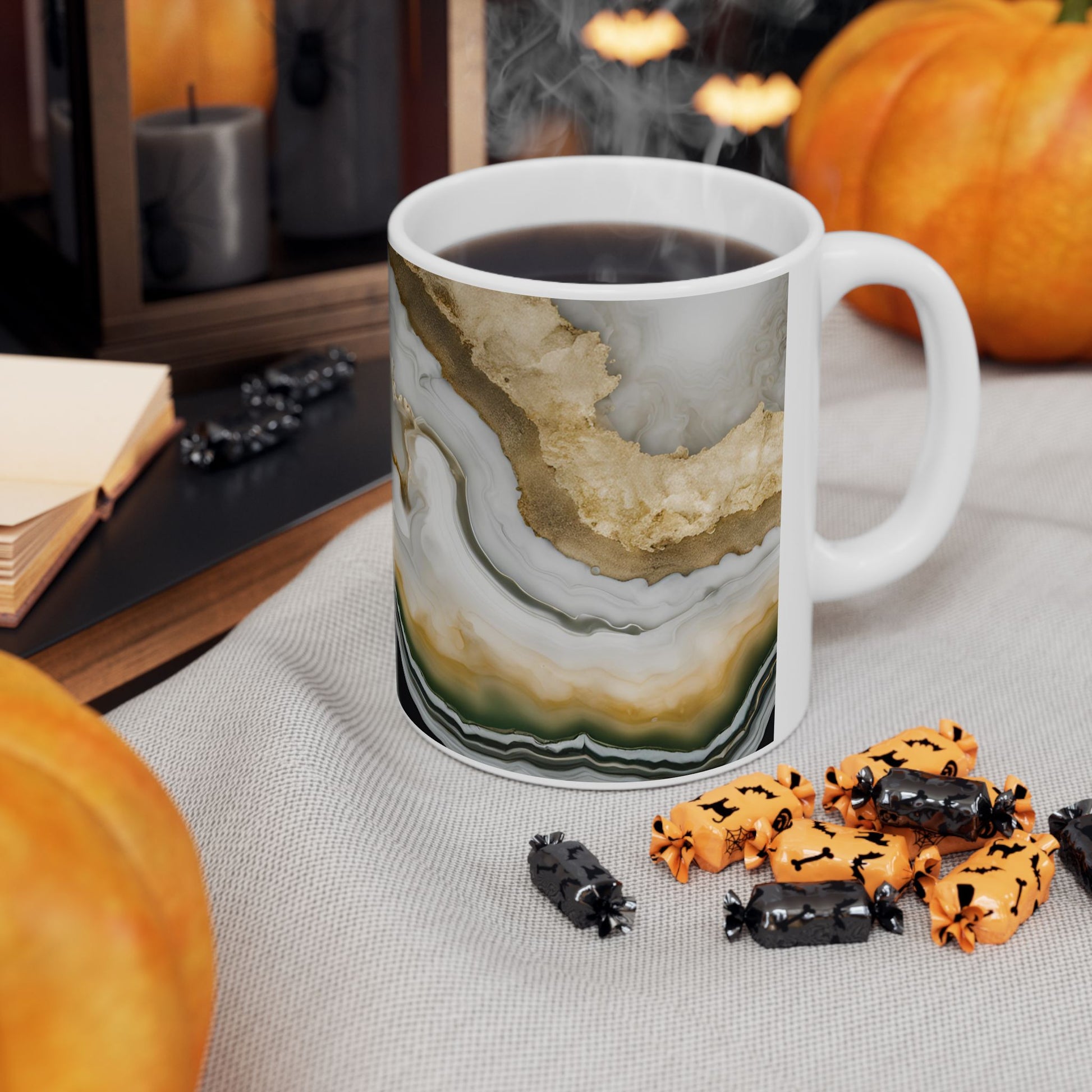 Black, White, Emerald Green and Gold Crystal Marble Design Coffee Tea Mug Boho Gemologist Gift Nature Lover Marble Rock Agate Geology Gift