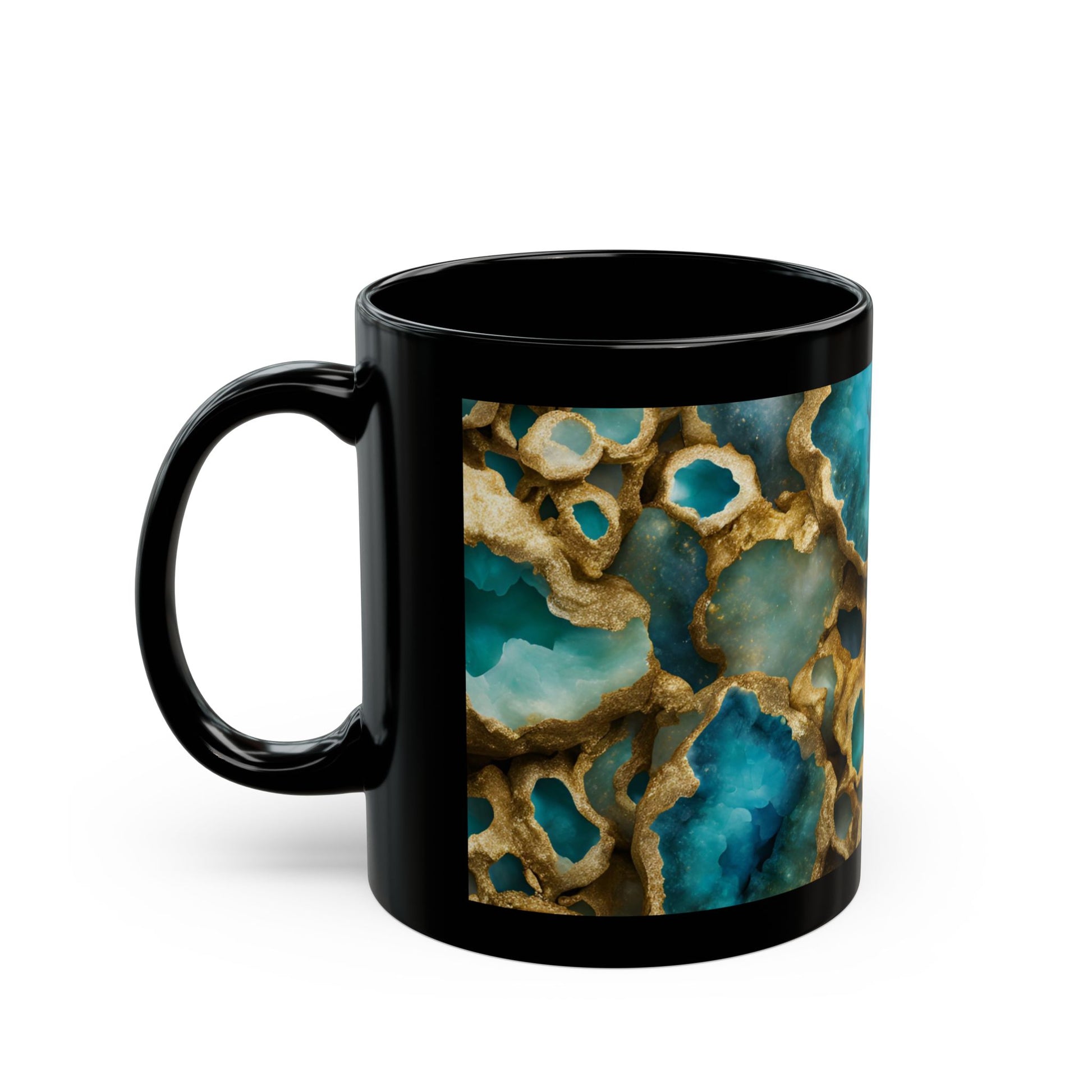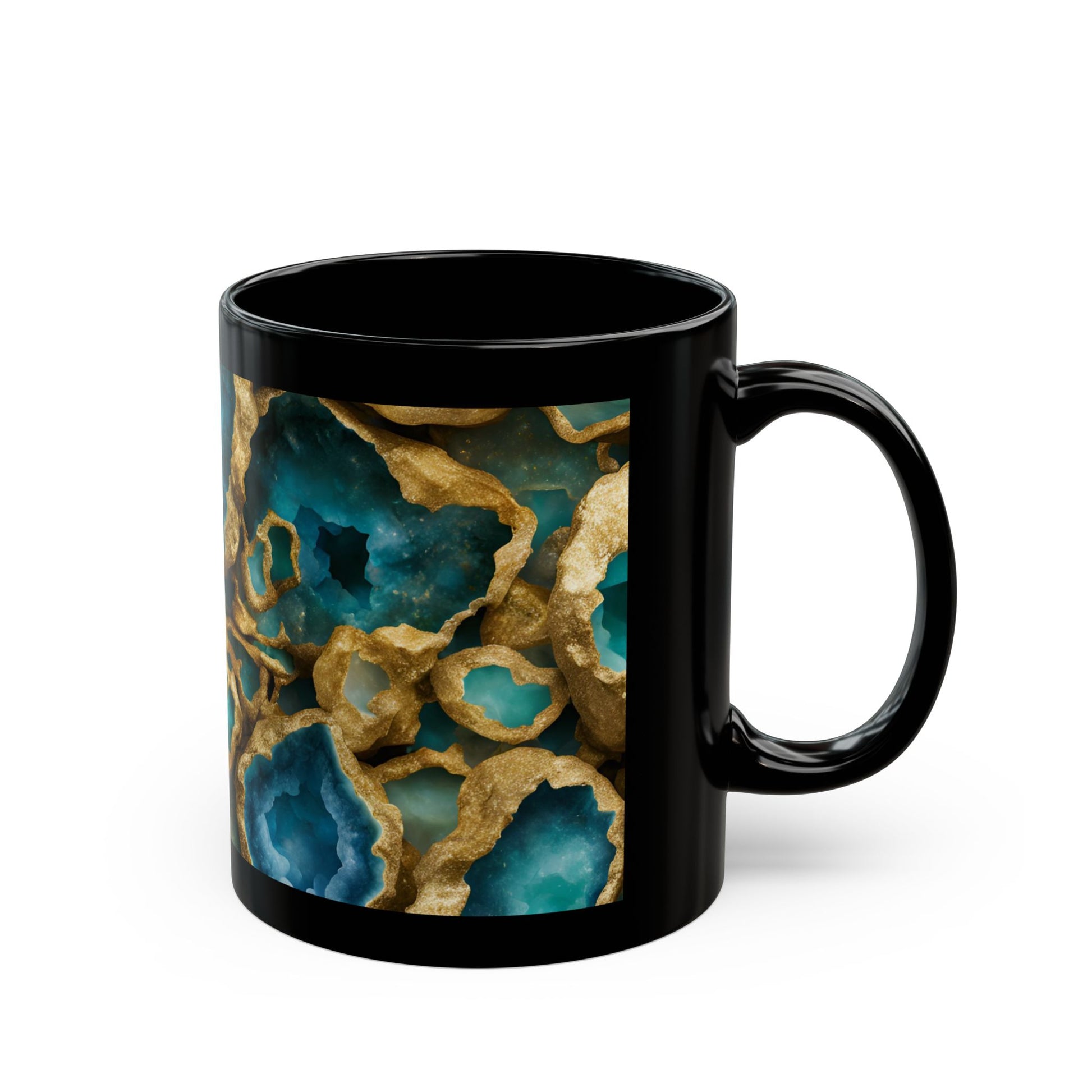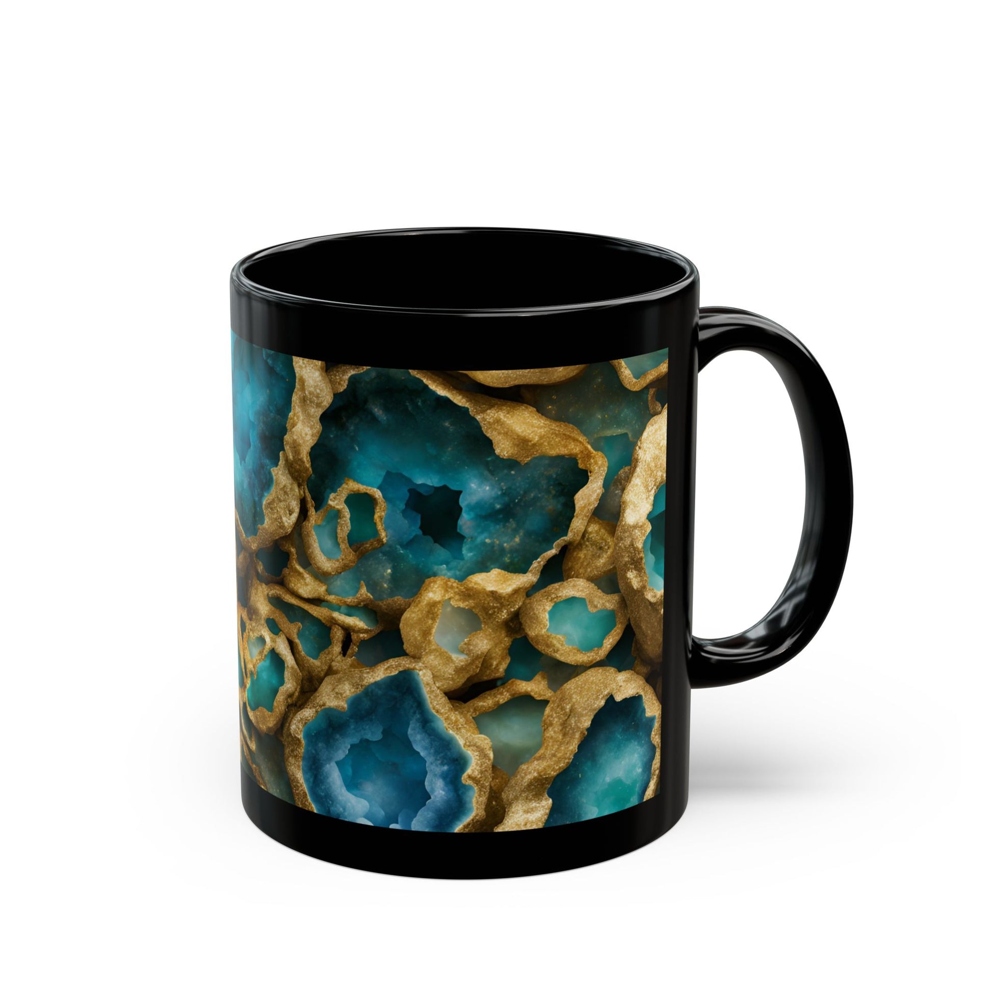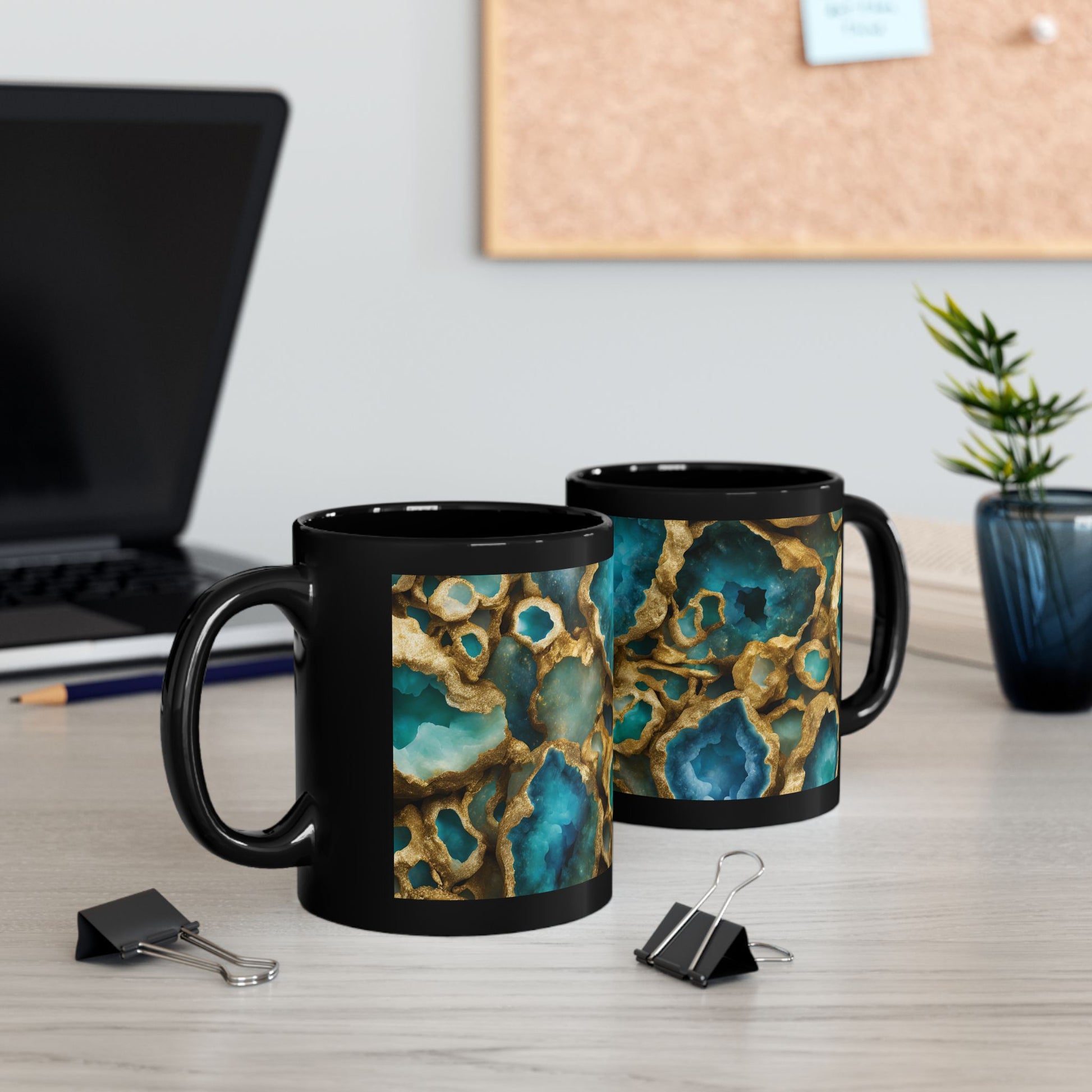 Blue, Green and Gold Amethyst Crystal Geode Design Coffee Tea Hot Chocolate Mug Boho Gift for Her Nature Lover Gift Geology Rock Lover Gift