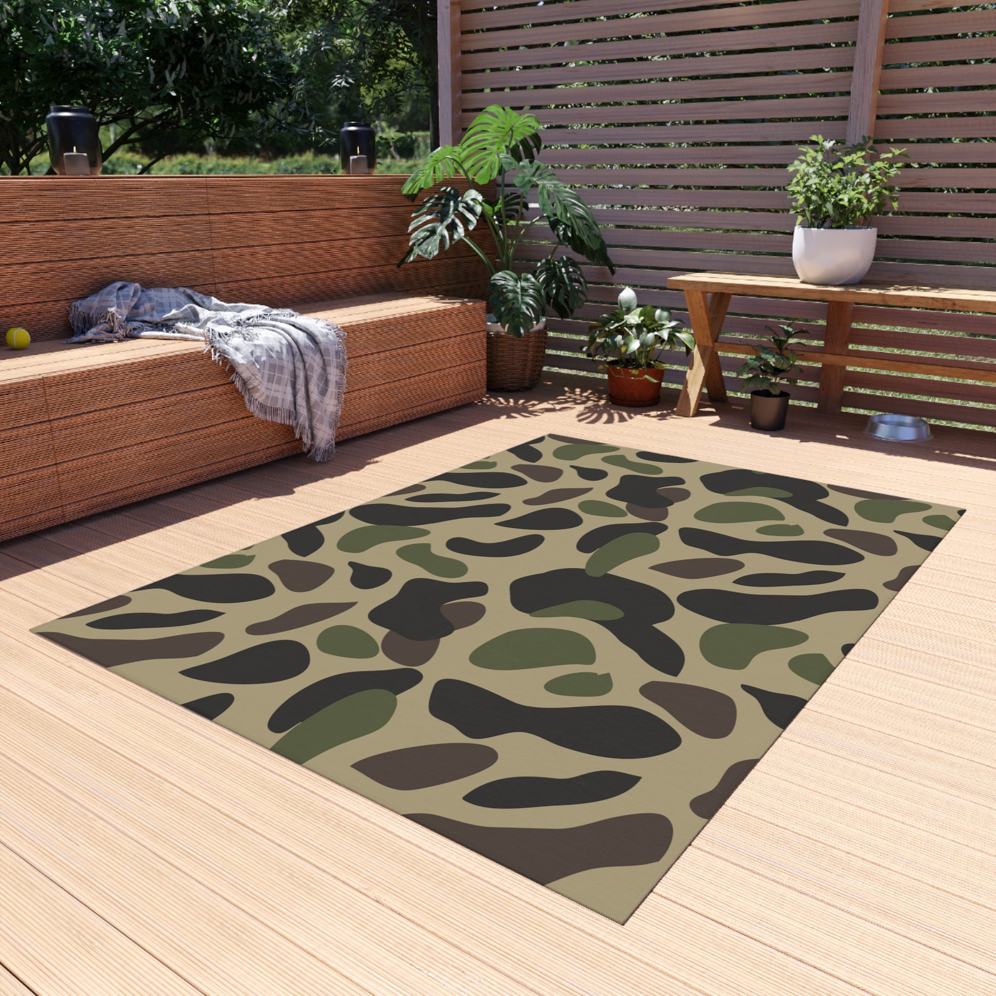 Camo Pattern Chenille Outdoor Rug with No-Skid Backing Cozy Outdoor Carpet Patio Decor Gazebo Rug Pool Area Decor Outdoor Kitchen Carpet