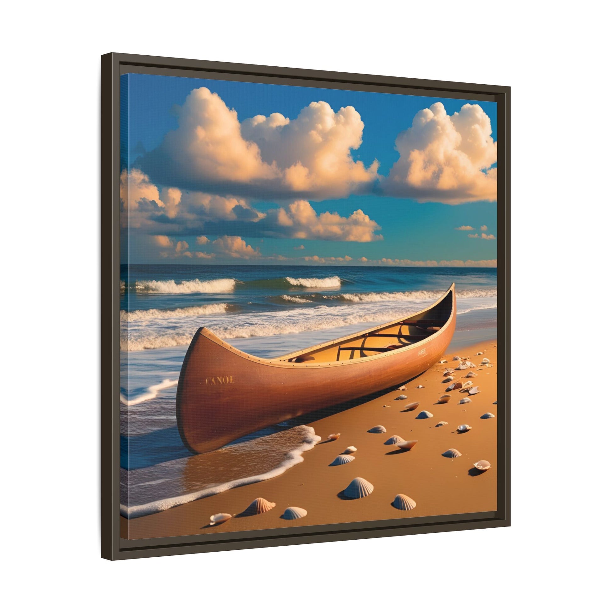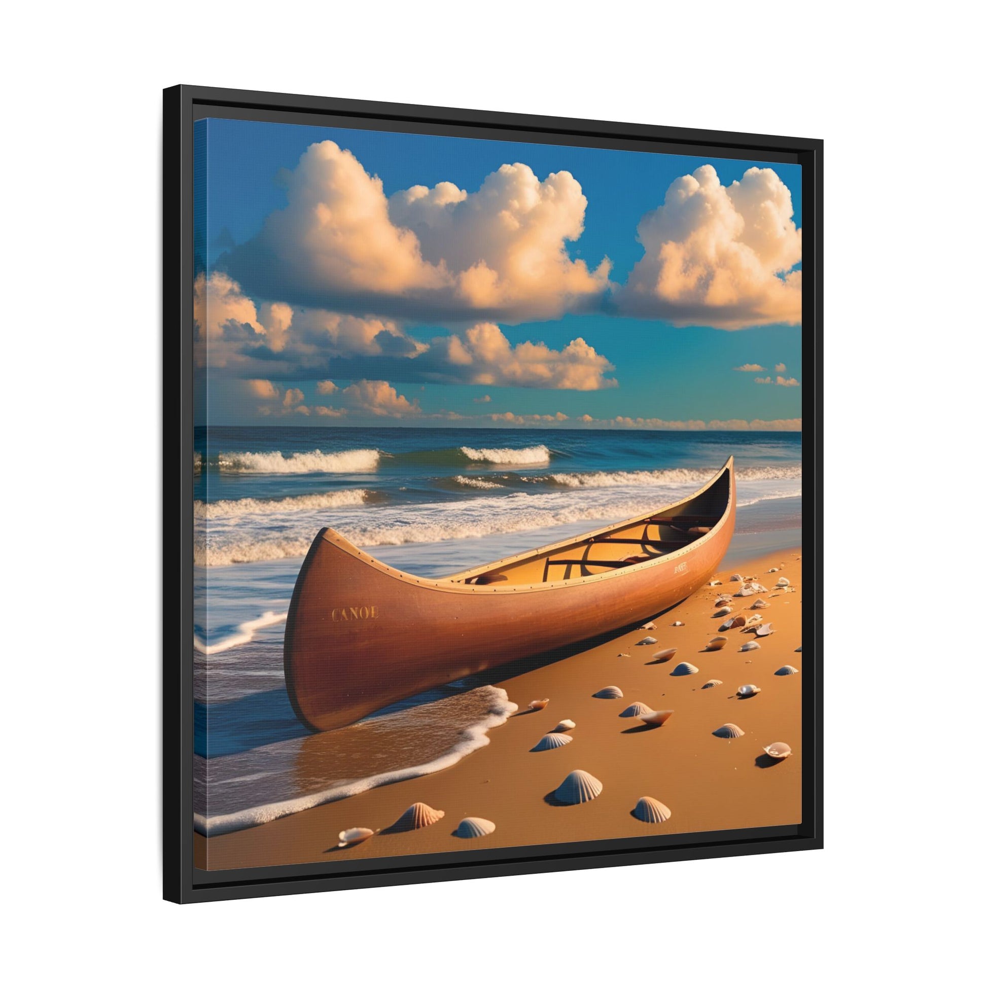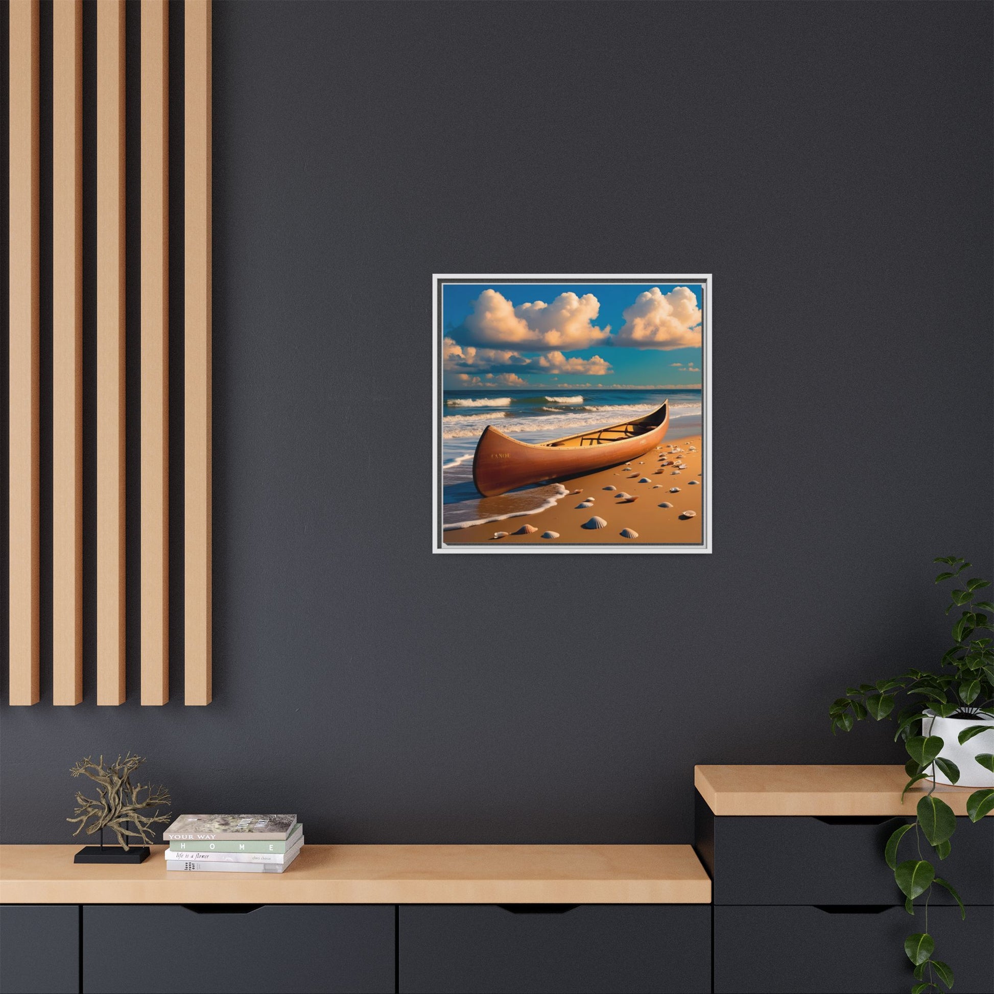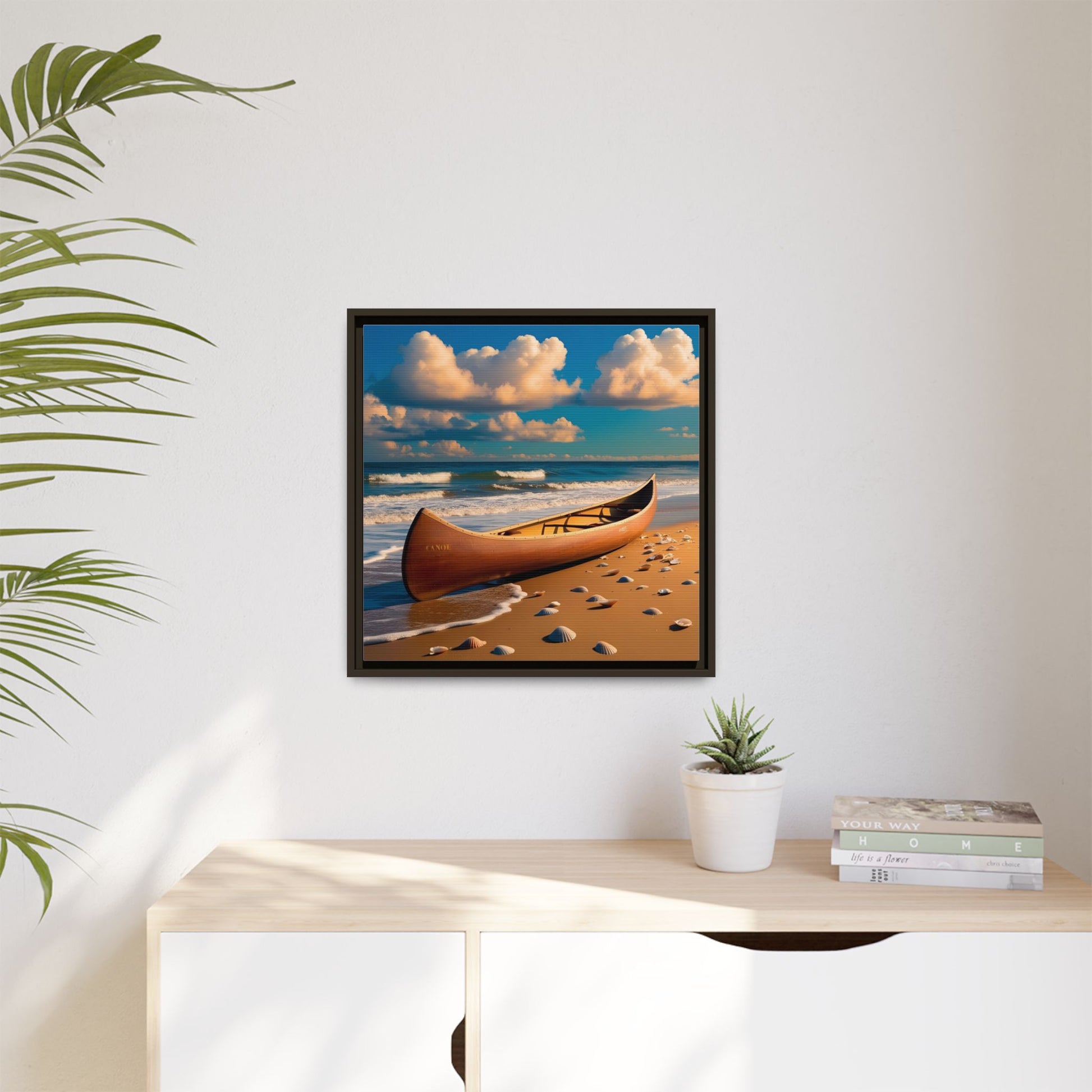 Canoe on the Beach Calm Sunny Day Framed Canvas Wall Art Beach Lover Vacation Oceanic Gift Nature Lover Peaceful Zen Gift 3 frame colors