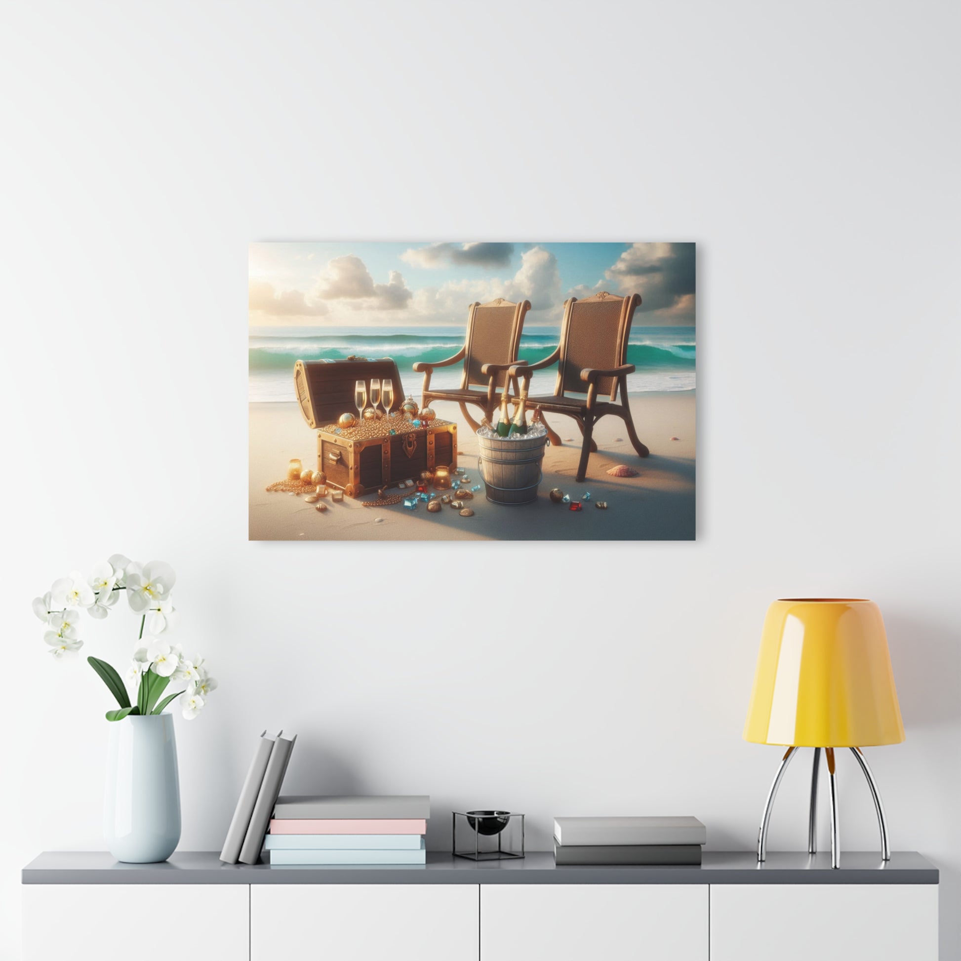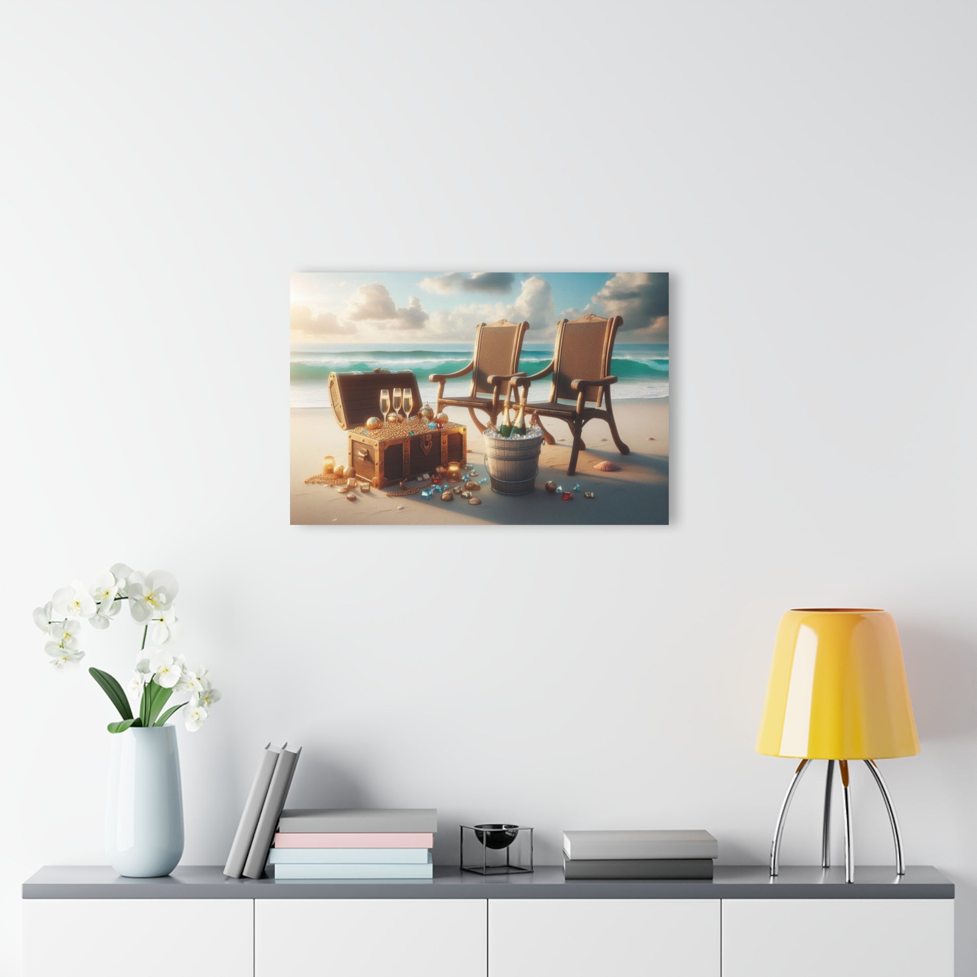 Chairs on the Beach with Pirate's Treasure Acrylic Print with French Cleat Ocean Lover Wall Art Beachy Gift Artwork Modern Home Decor