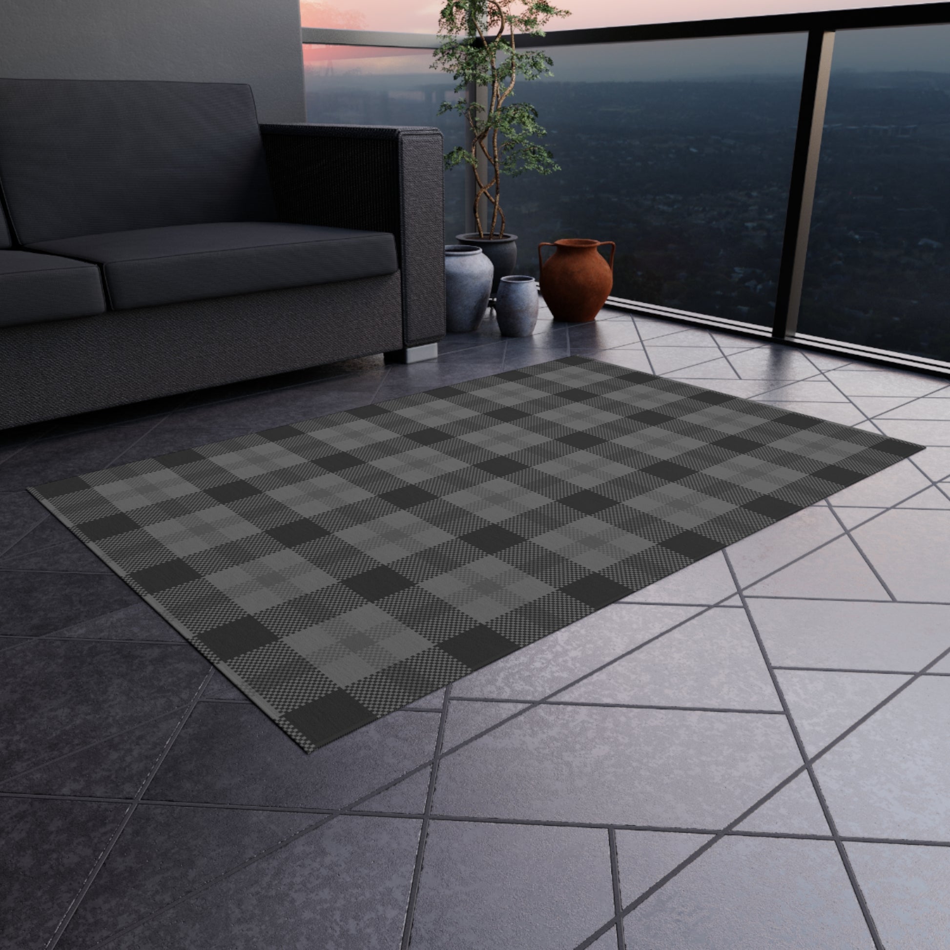 Checker Pattern Chenille Outdoor Rug with No-Skid Backing Cozy Outdoor Carpet Patio Decor Gazebo Rug Pool Area Decor Outdoor Kitchen Carpet
