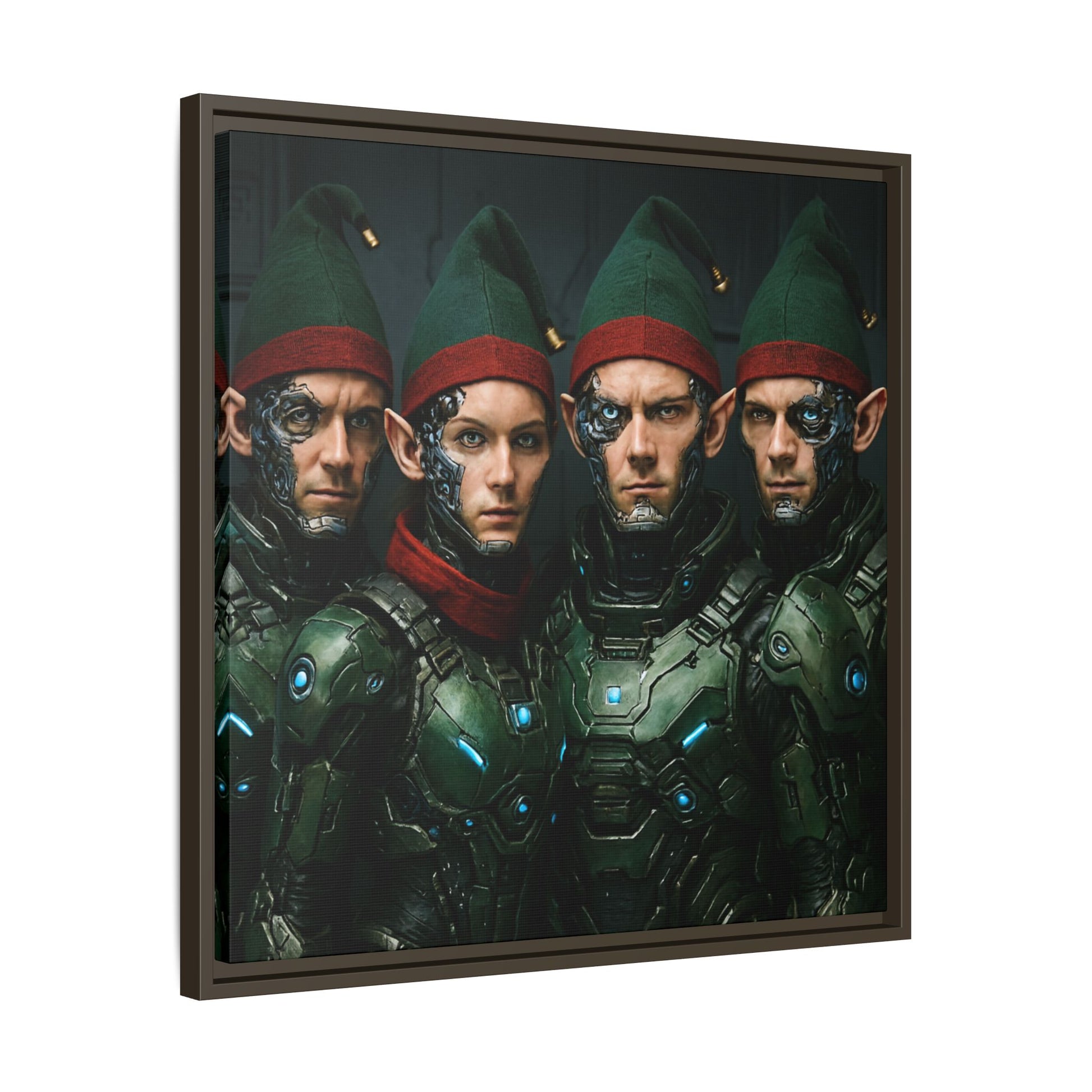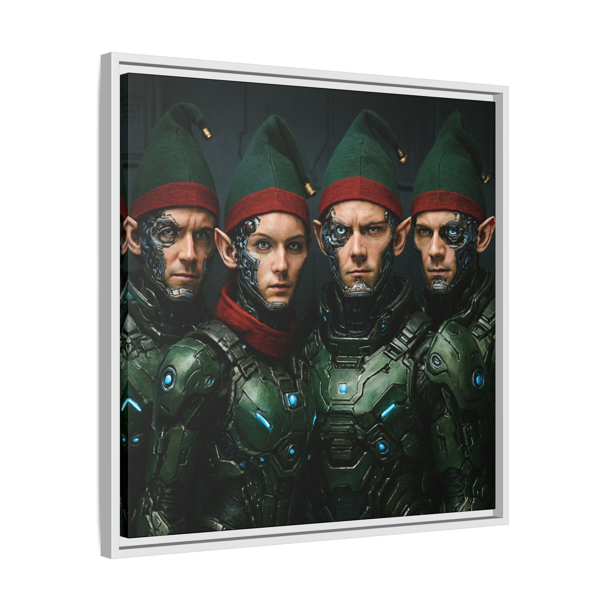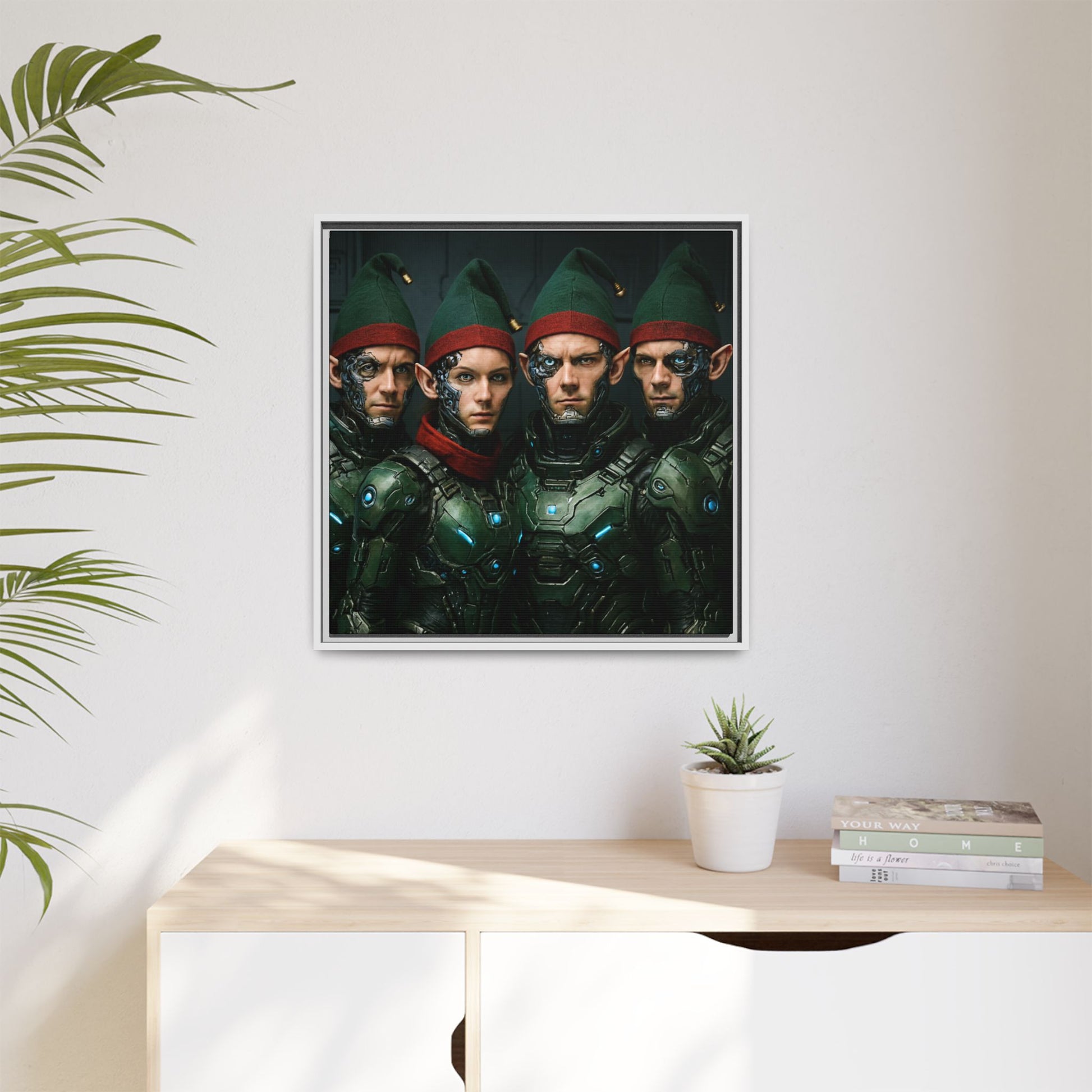 Cyber-Elves Print Modern AI Elf Design Unique Framed Canvas Sci-Fi Print Funny Christmas Elf Wall Art Gamer Gift Decor 3 frame colors