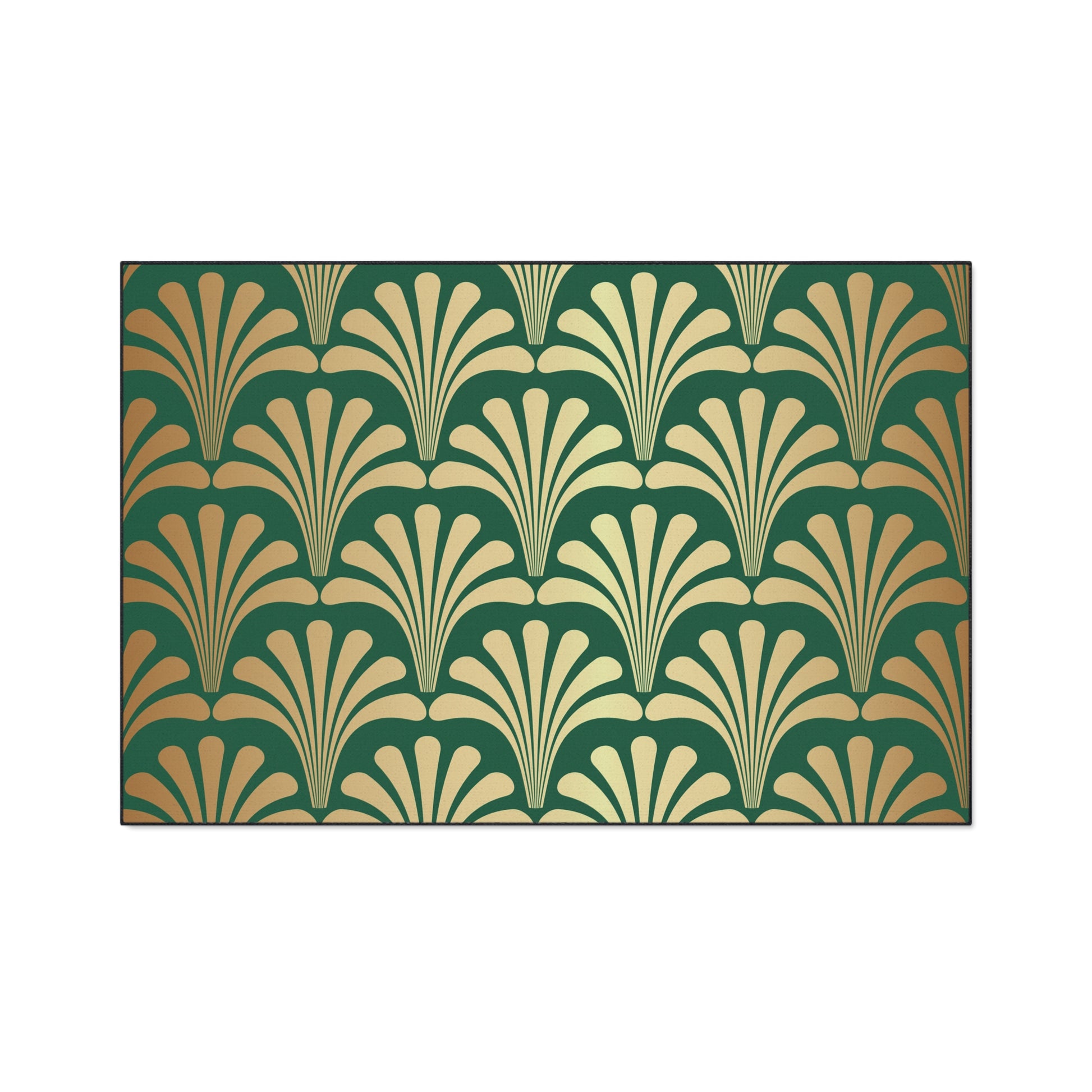 Decorative Heavy Duty Non-Slip Floor Mat Stylish Design Perfect for Entryway Kitchen Décor Green Floral Geometric Design Rug Bathroom Mat