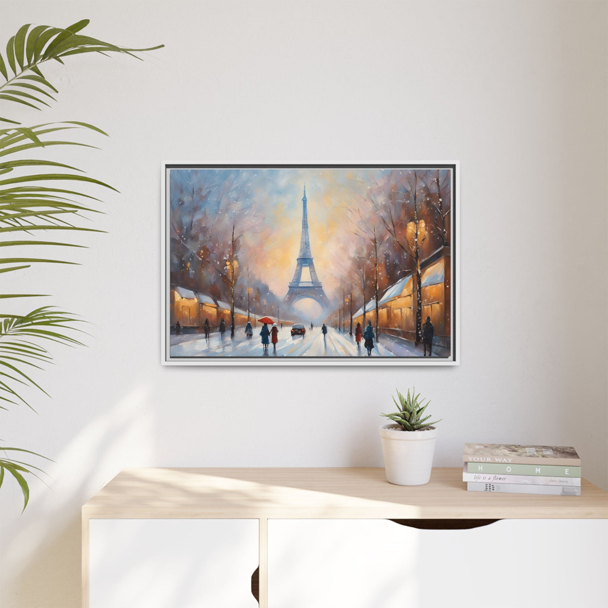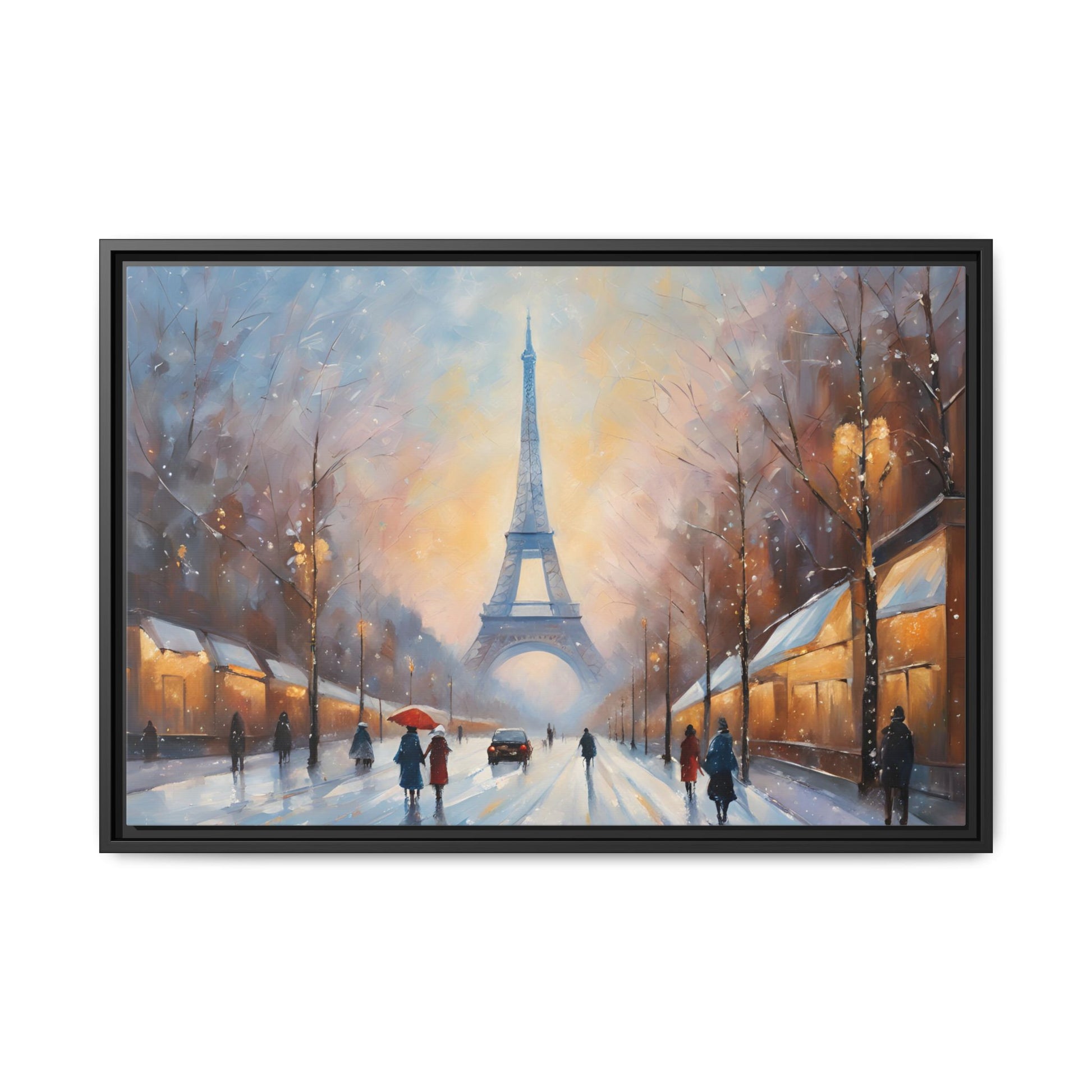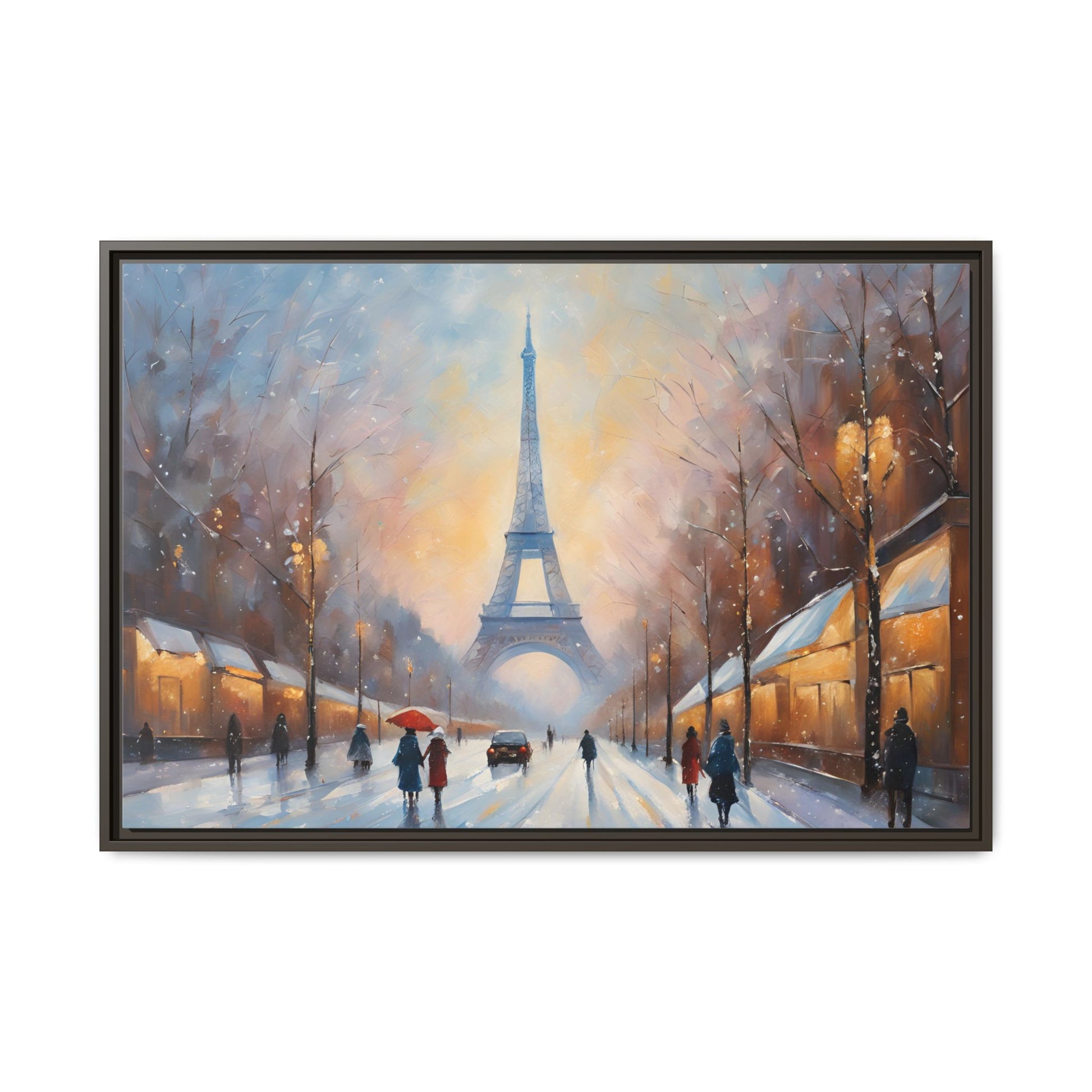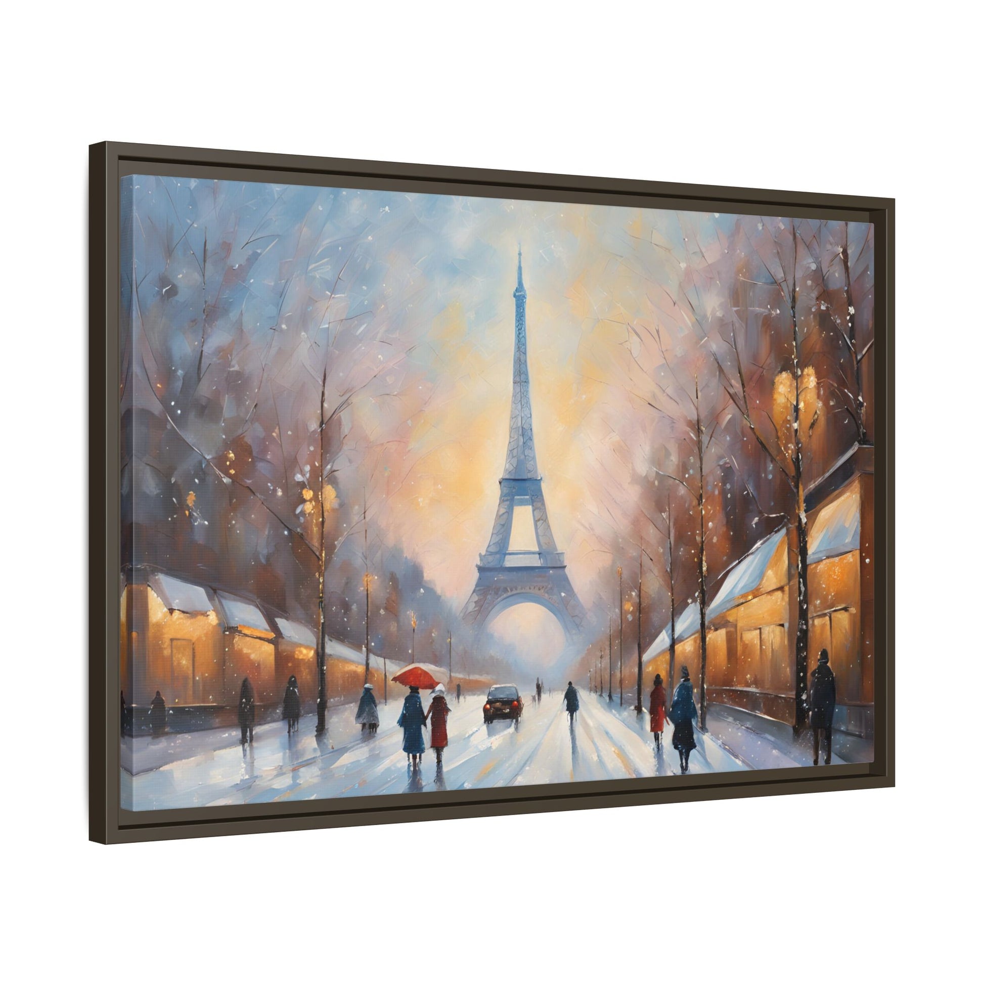 Eiffel Tower in Winter Print Wall Art Matte Stretched Canvas Paris Lover Gift Winter in France, 3 frame colors to choose from