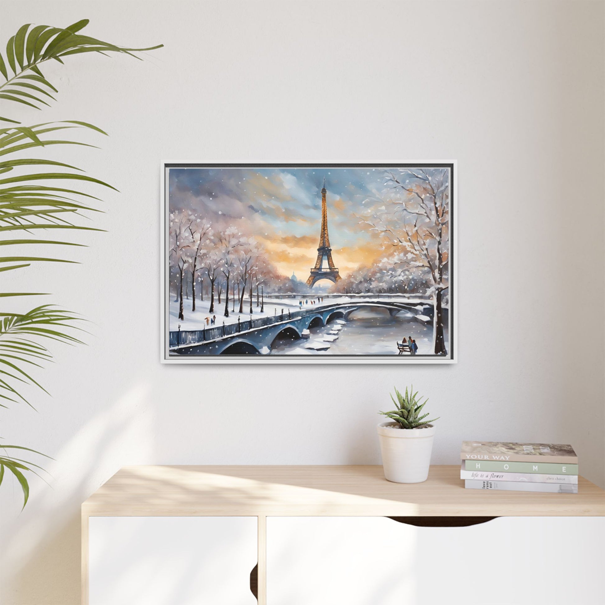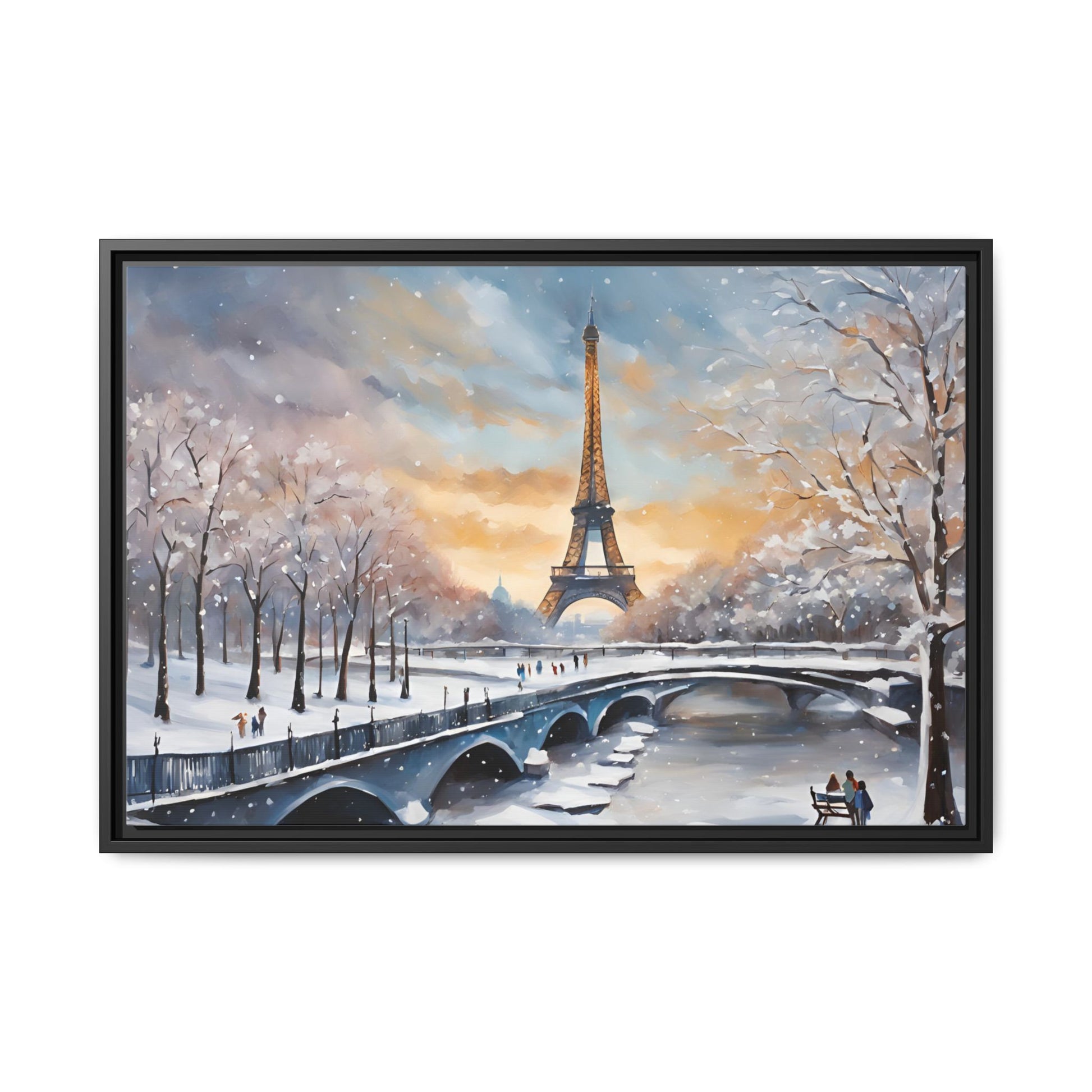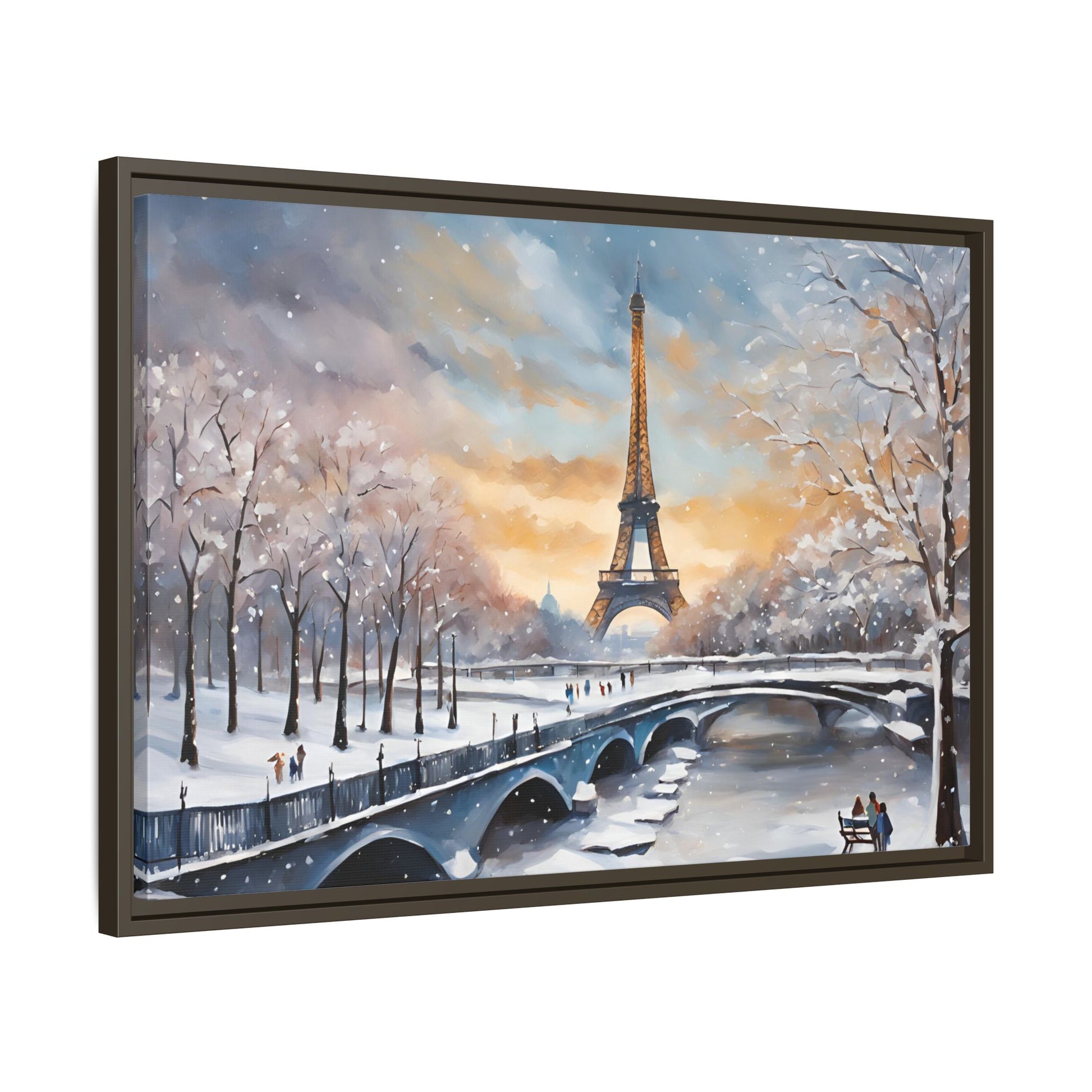 Eiffel Tower in Winter Print Wall Art Matte Stretched Canvas Paris Lover Gift Winter in France, 3 frame colors to choose from
