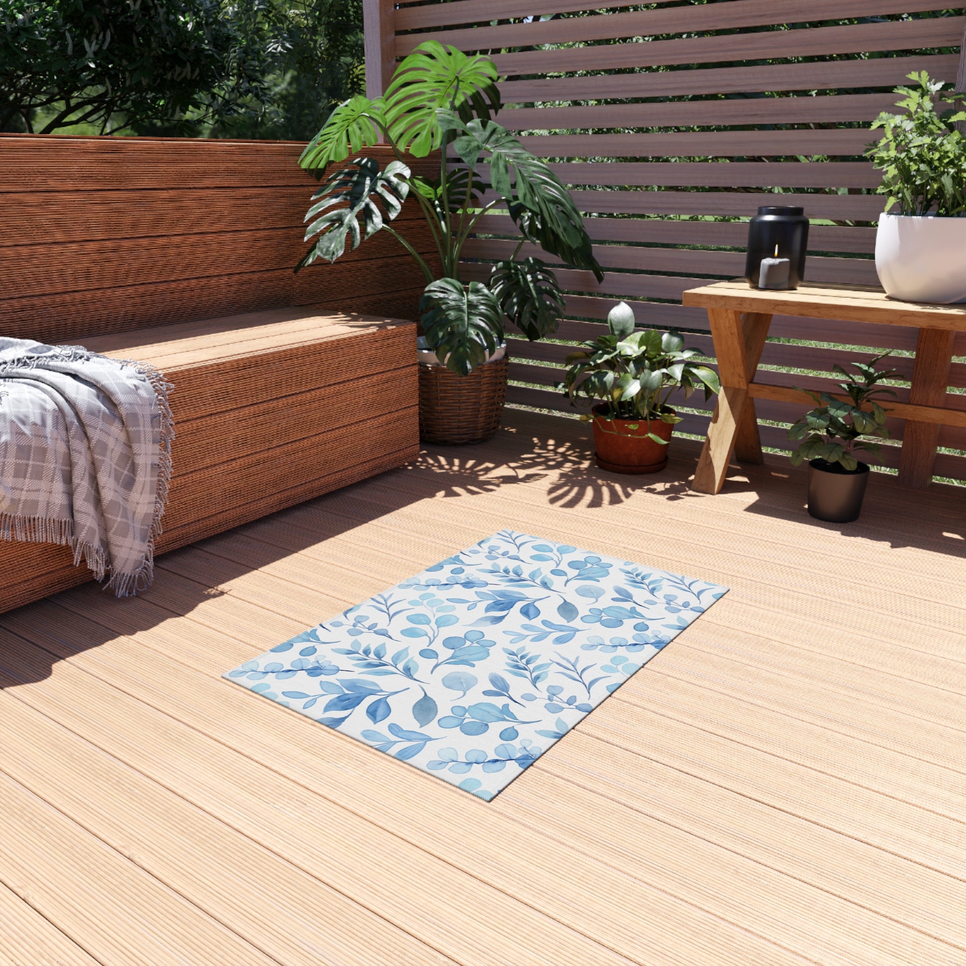 Our non-slip outdoor rugs bring alfresco entertaining to a whole new level of comfort. These rugs come in many different sizes to fit any patio or porch. Made from polyester chenille fabric— they're very durable, breathable, and dry quickly.