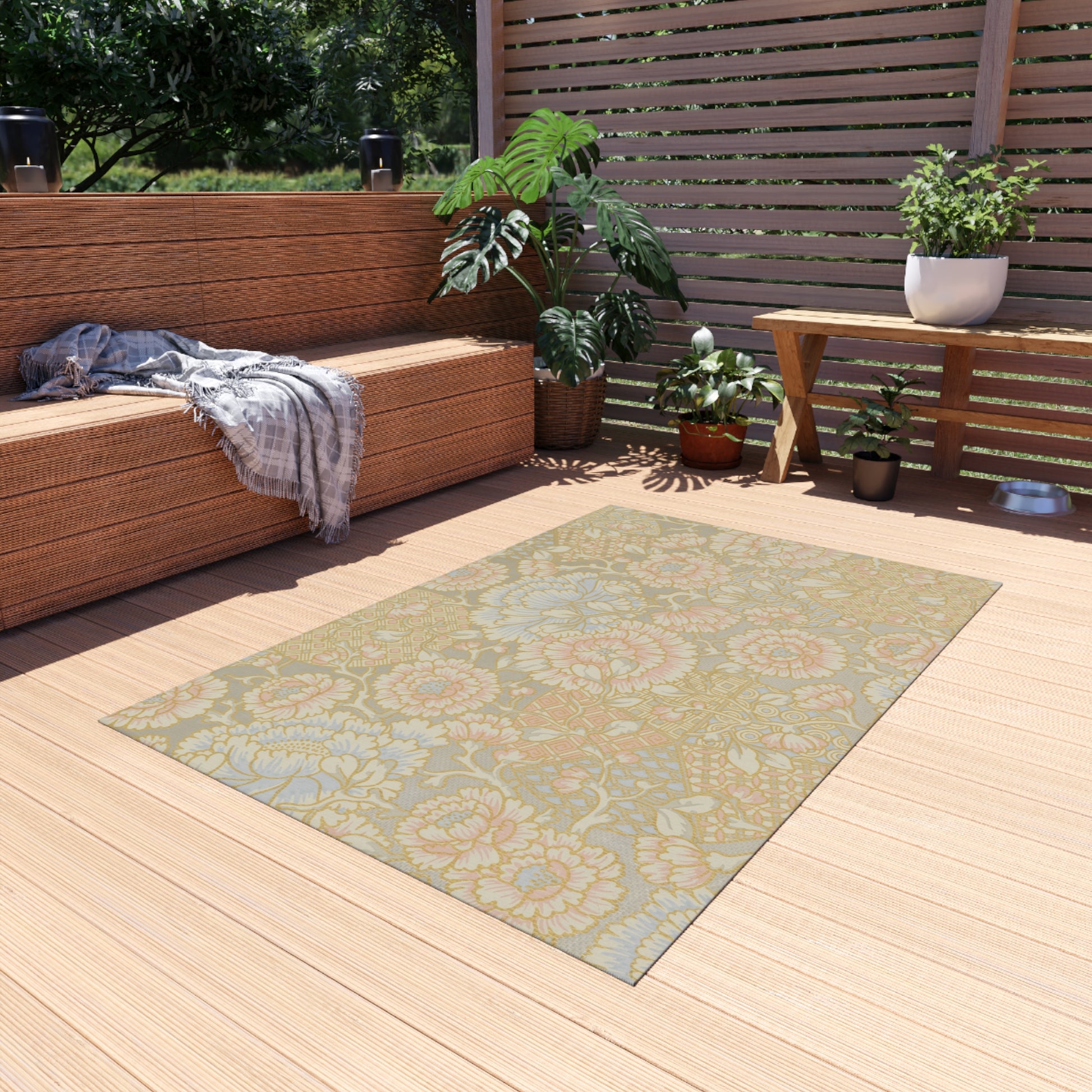 Floral Chenille Outdoor Rug with No-Skid Backing Cozy Outdoor Carpet Patio Decor Gazebo Beachy Rug Pool Area Decor Outdoor Kitchen Carpet