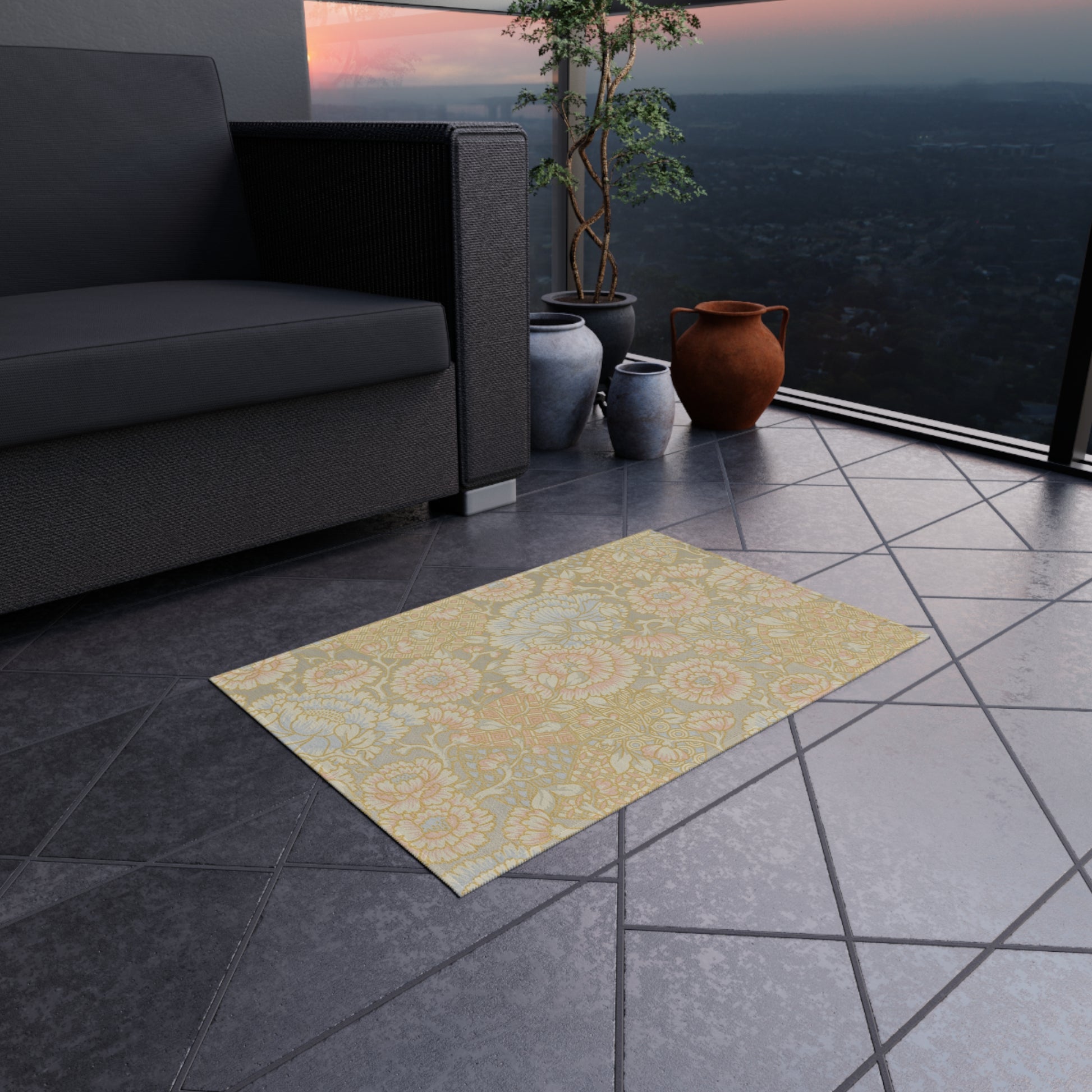 Our non-slip outdoor rugs bring alfresco entertaining to a whole new level of comfort. These rugs come in many different sizes to fit any patio or porch. Made from polyester chenille fabric— they're very durable, breathable, and dry quickly.