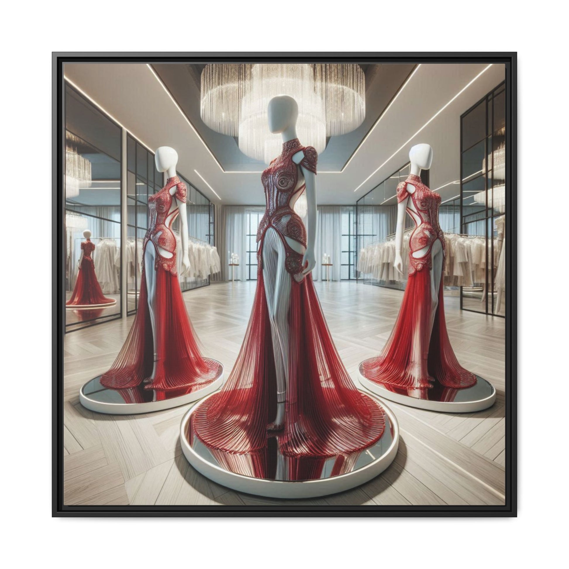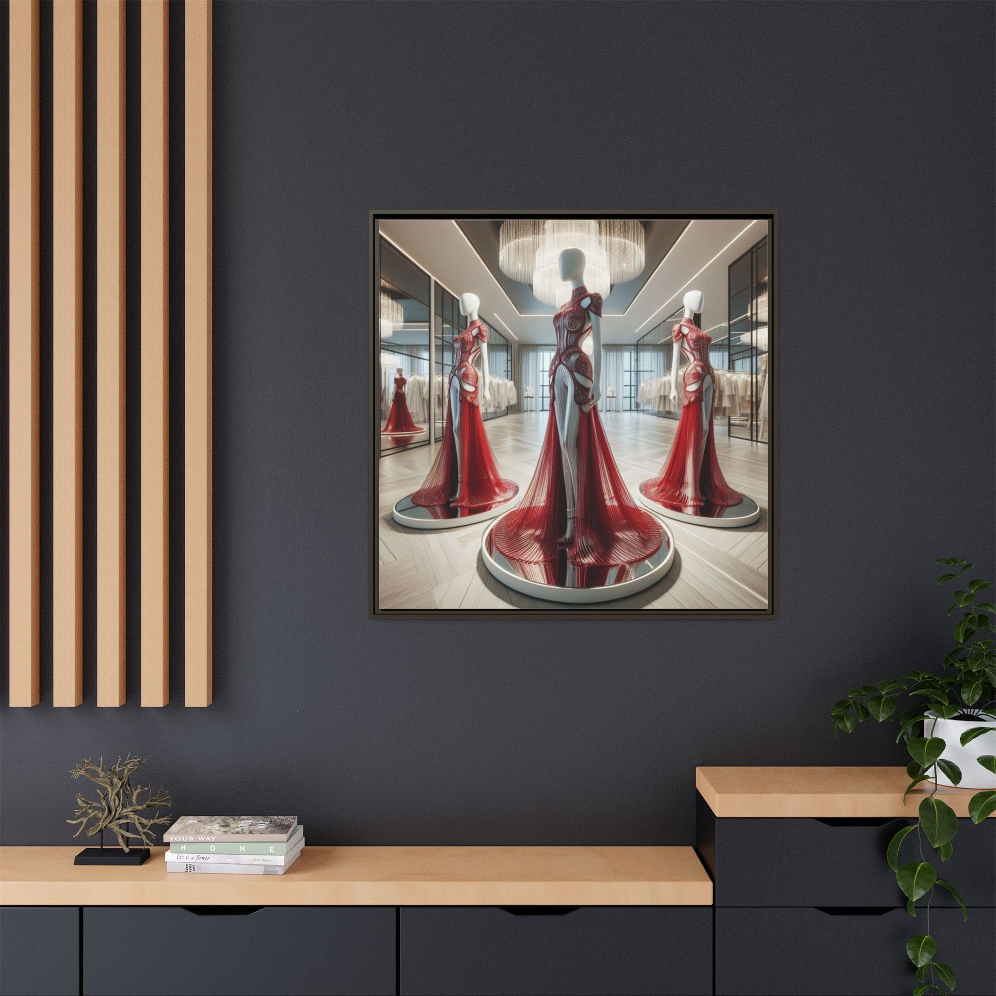 Futuristic Bodycon Runway Dress Framed Canvas Print Wall Art Unique Fashion Designer Style Haute Couture Fashionista Gift 3 Frame Colors