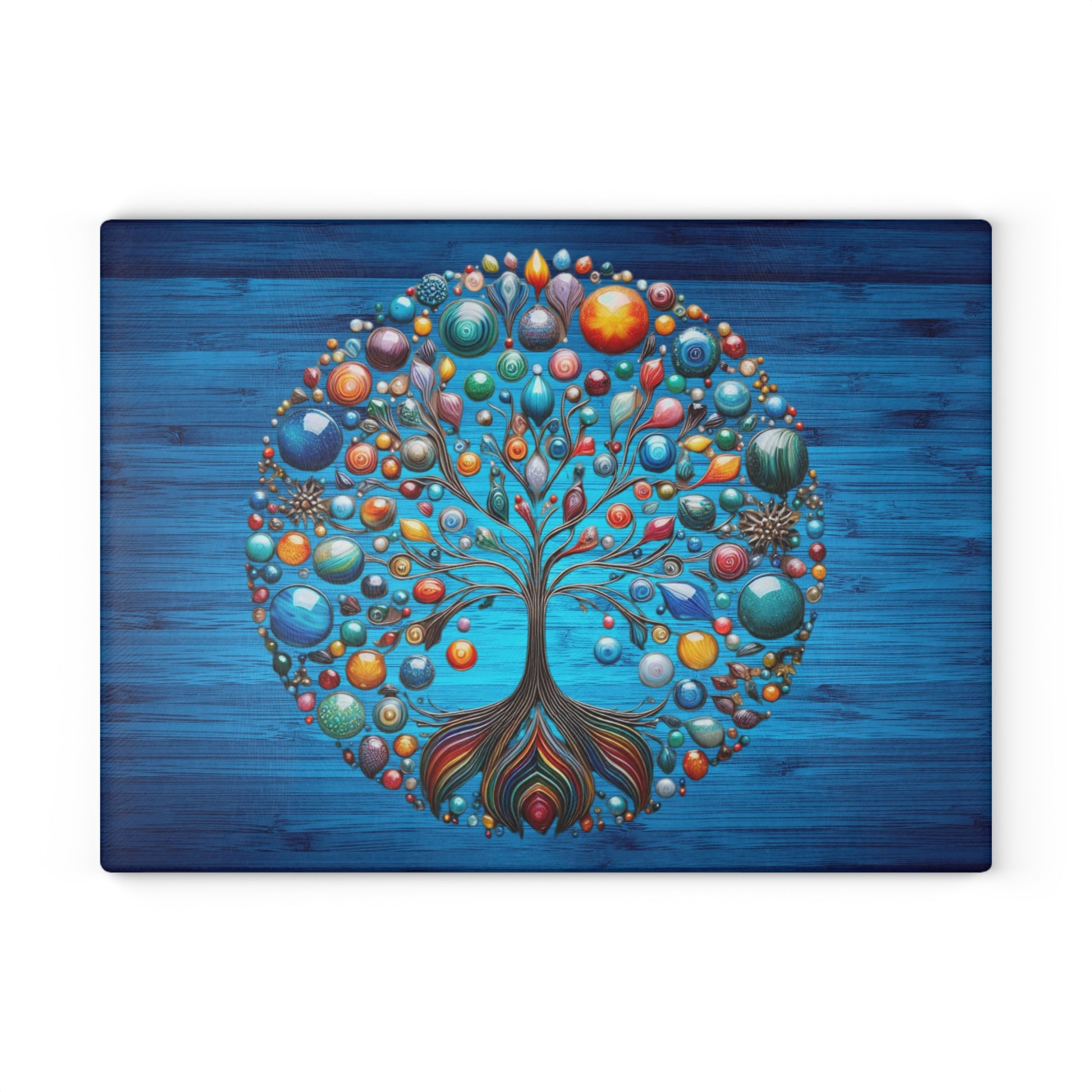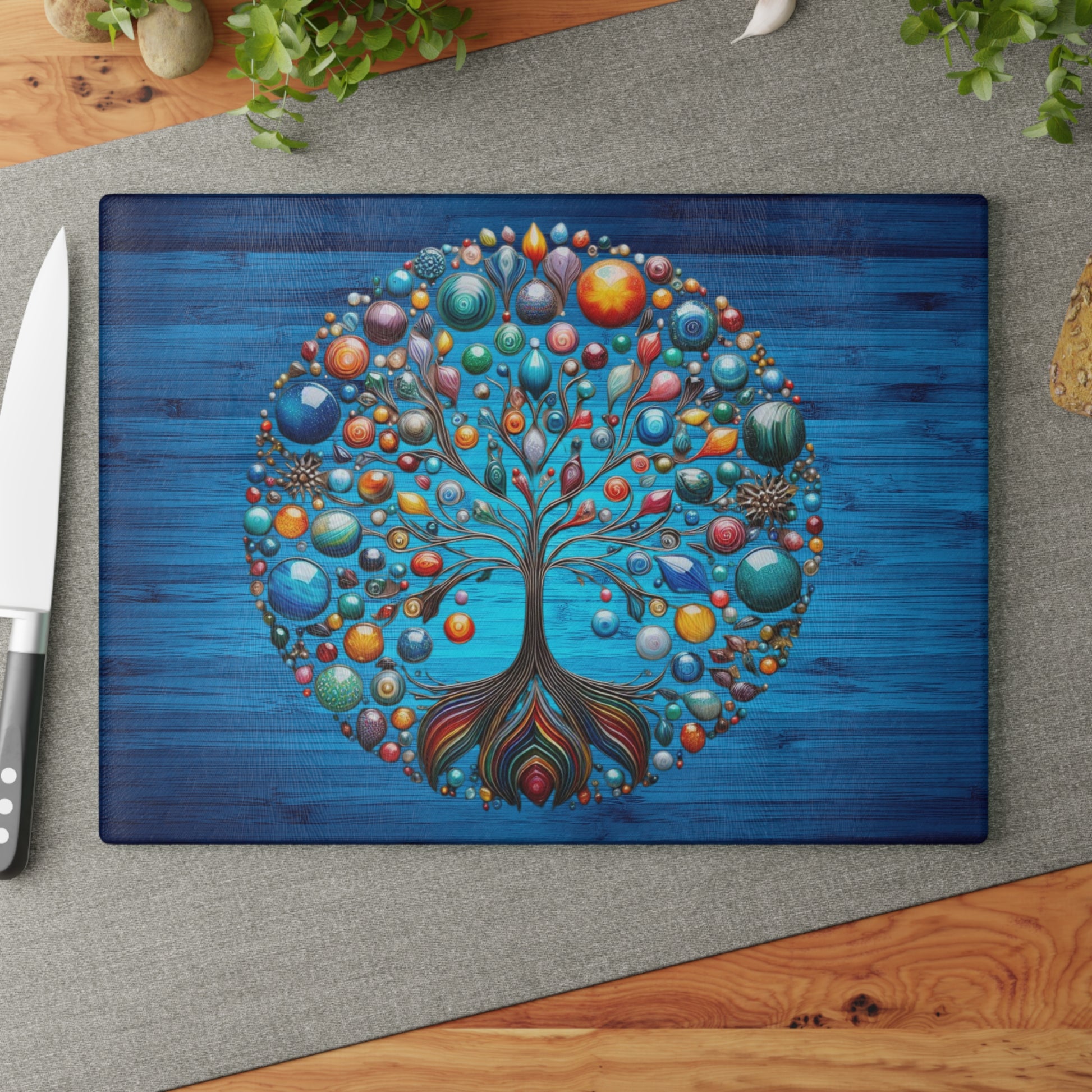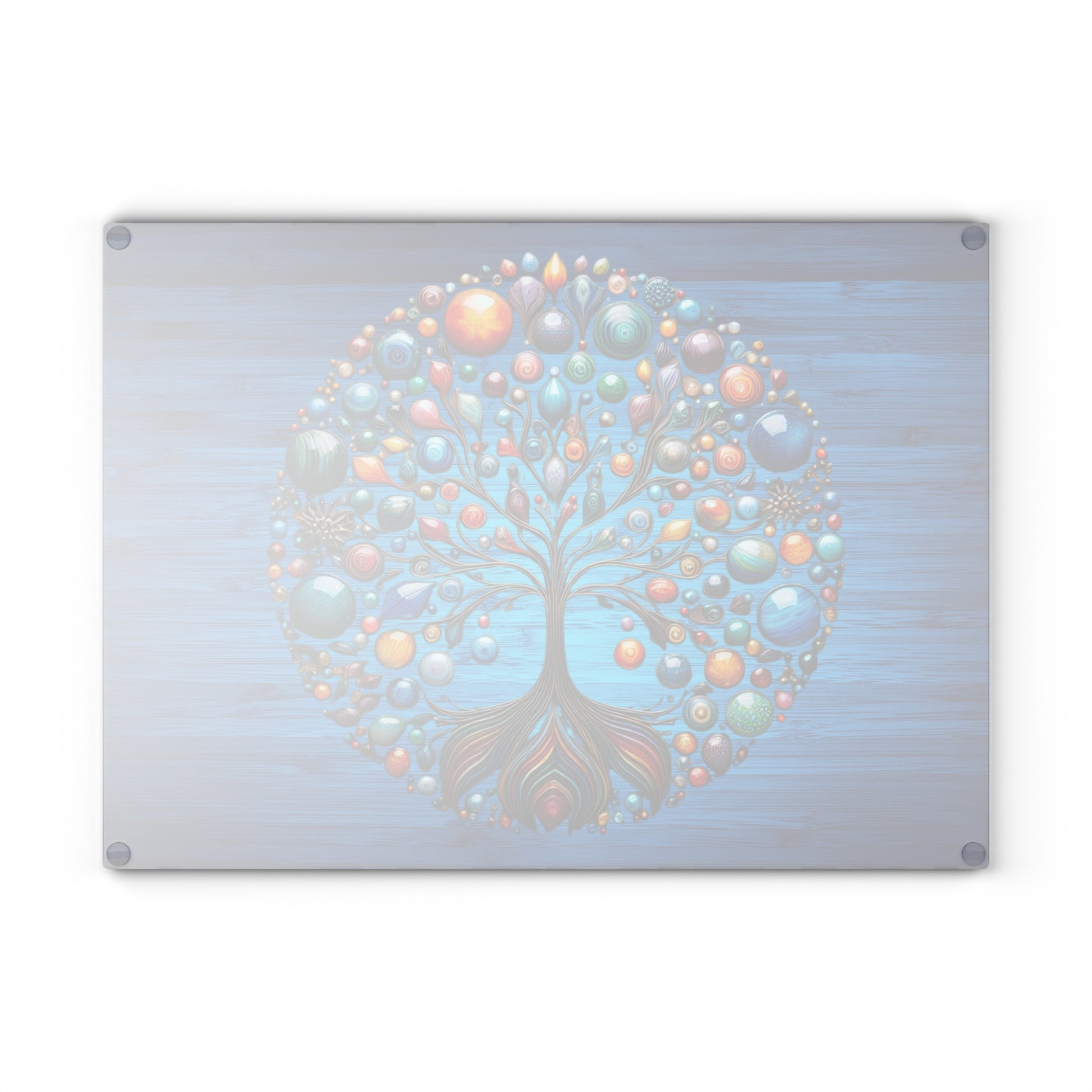 Glass Kitchen Decor Glass Cutting Board Serving Tray with Tree of Life Design Cutting Board Gift for Home Cook Glass Charcuterie Board