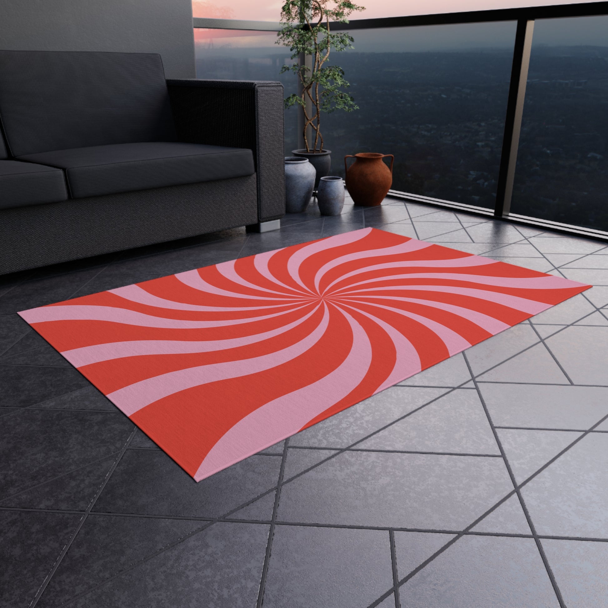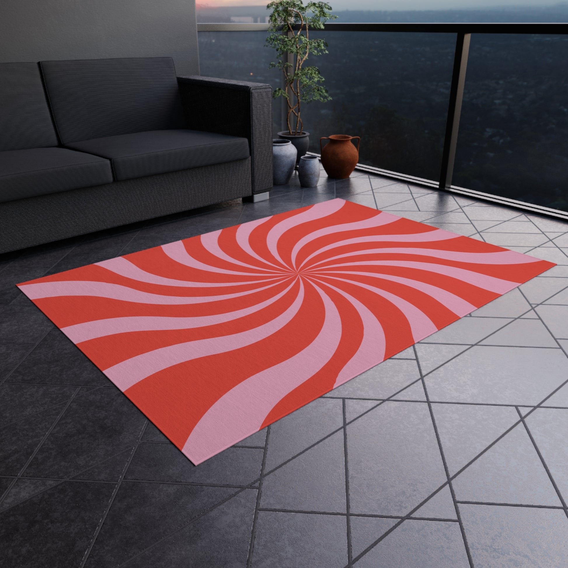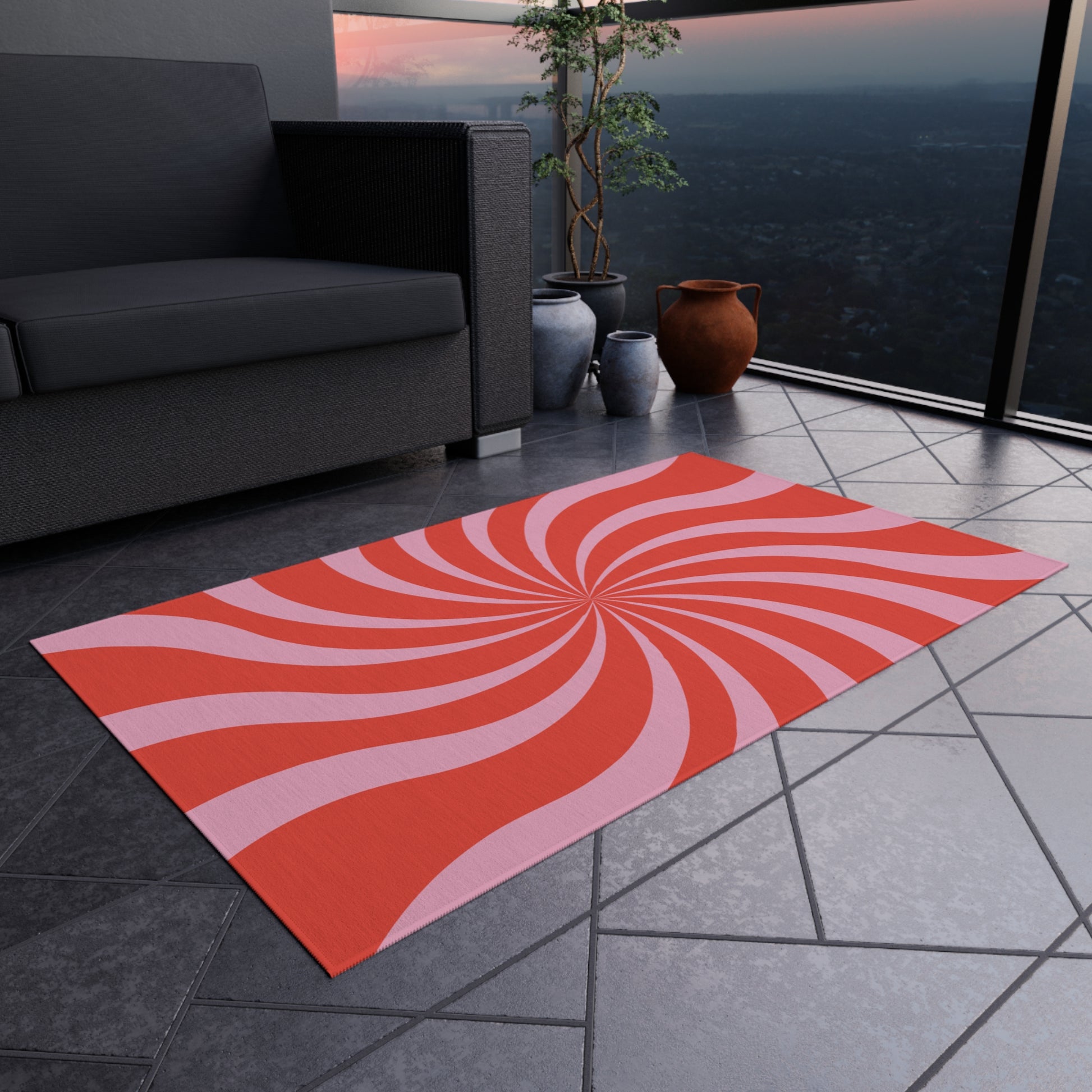 Groovy Retro Chenille Outdoor Rug with No-Skid Backing Cozy Outdoor Carpet Patio Decor Beachy Gazebo Rug Pool Area Outdoor Kitchen Decor