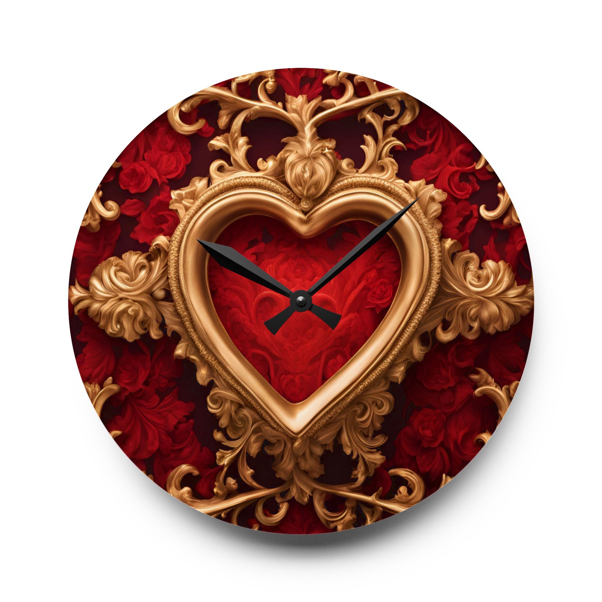 Heart Design Acrylic Office Clock Unique Colorful Wall Clock for Kitchen or Living Room Royal Damask Look Pattern