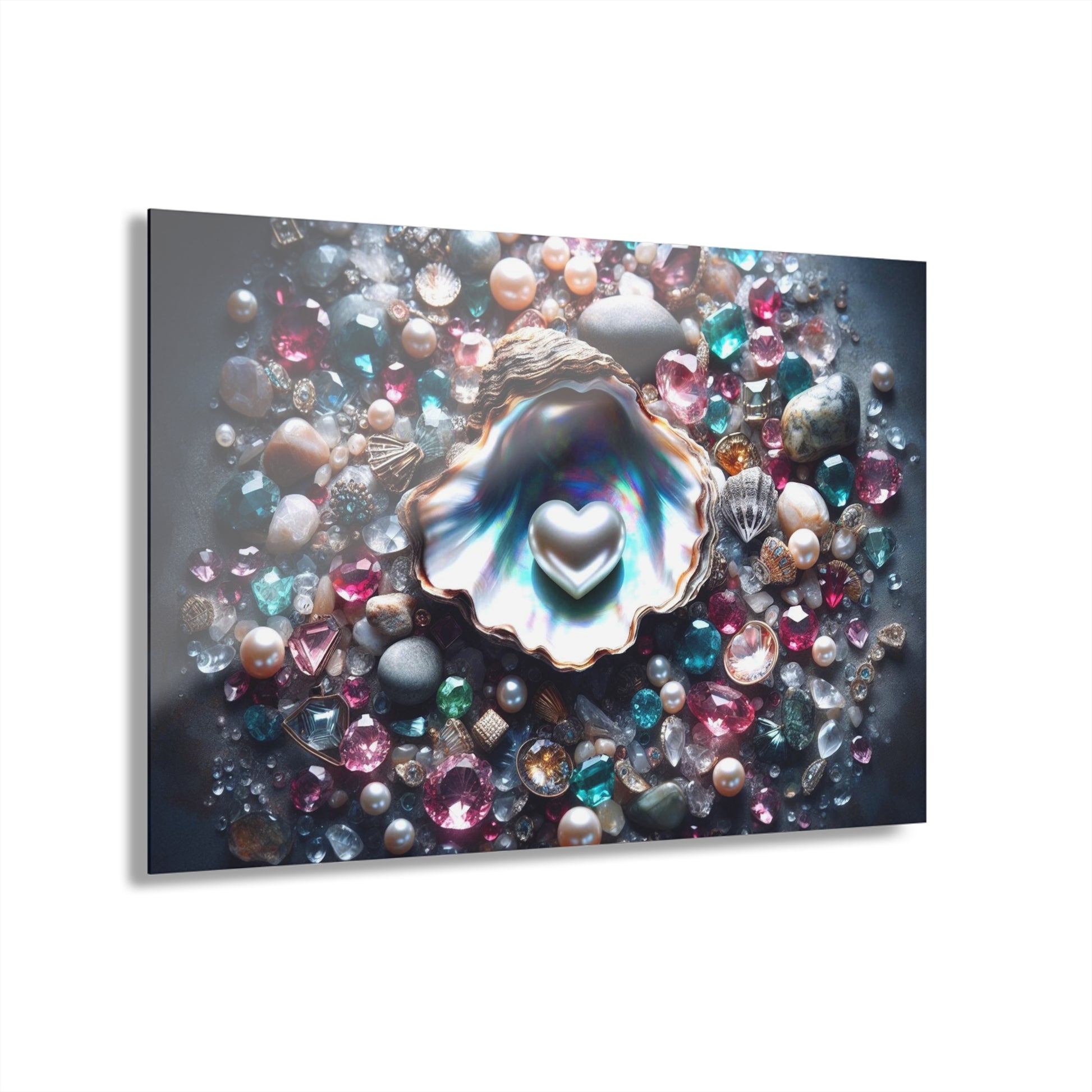 Heart-shaped Pearl in Oyster Shell Acrylic Print with French Cleat Salt-life Oceanic Nature Wall Art Beachy Relaxing Artwork Modern Decor
