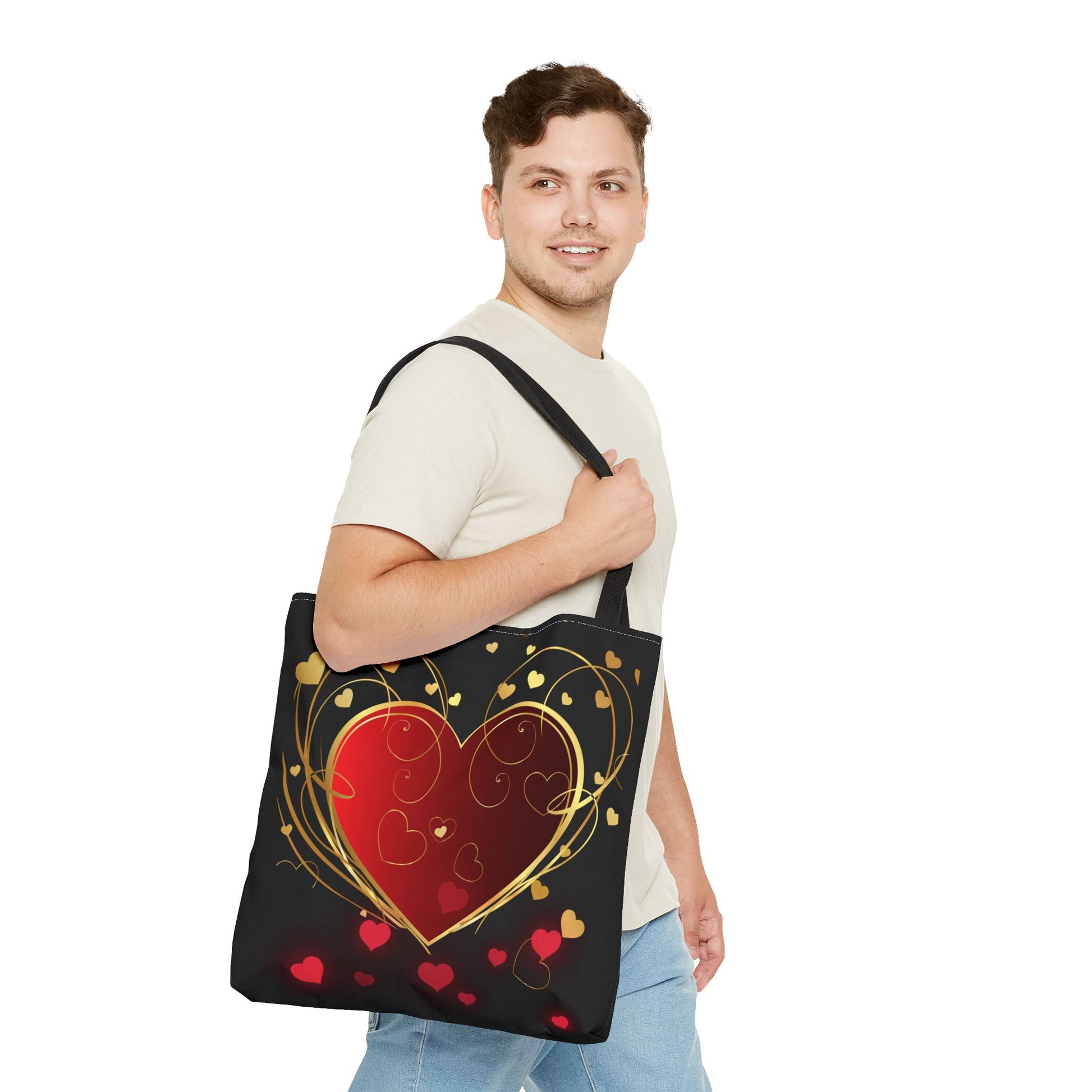 Heart Tote Bag | Carryall | Red and Gold | Love | Happiness | Friendship |