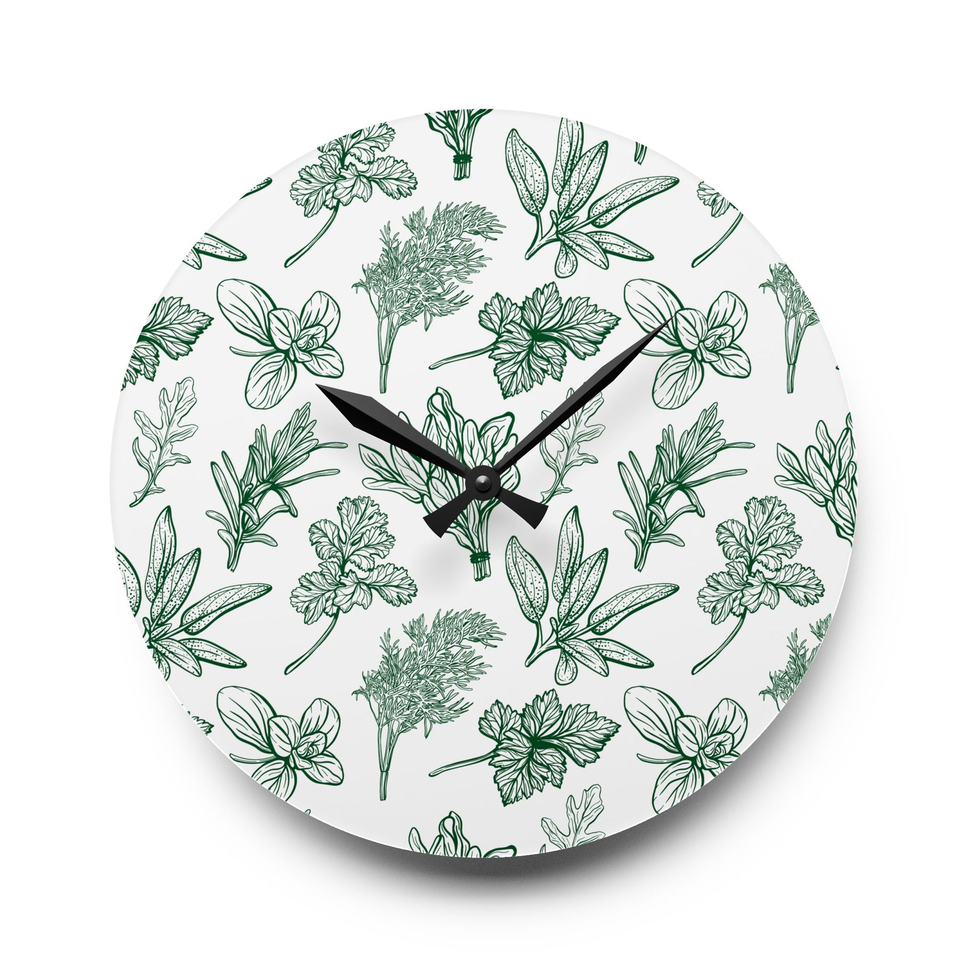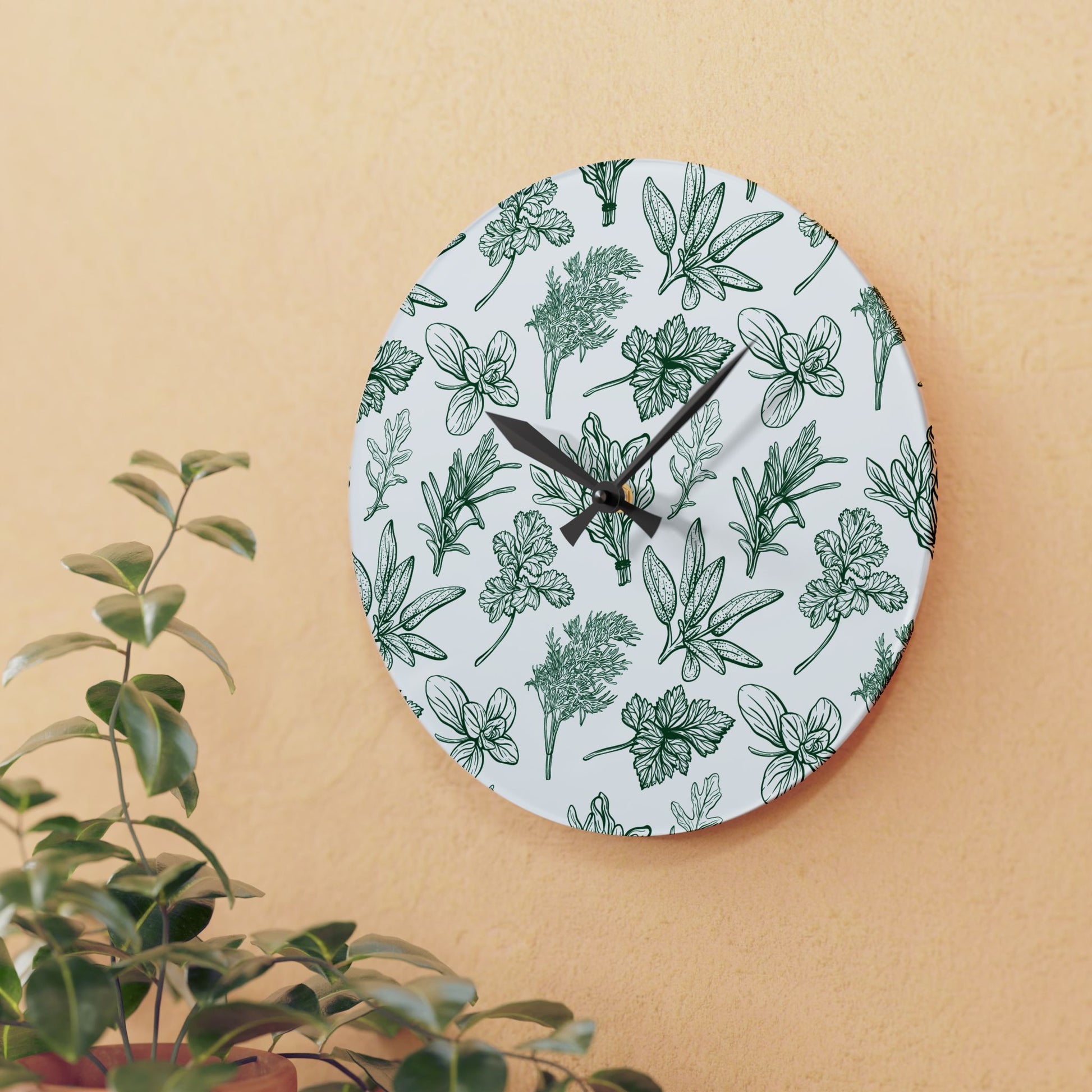 Herb Garden Design Acrylic Clock Unique Colorful Wall Clock for Kitchen or Living Room Nature Lover Field of Flowers Gardener Gift