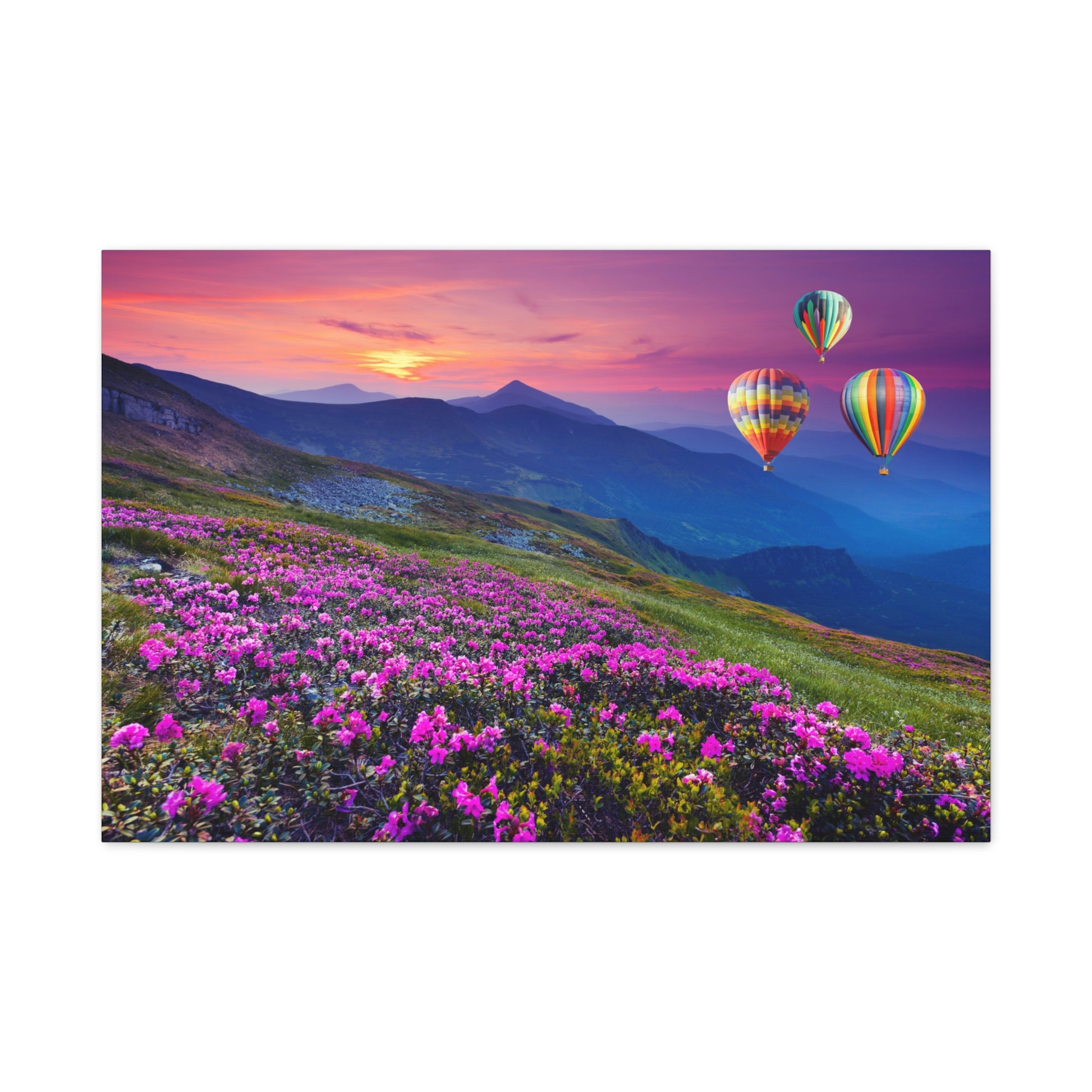 Hot Air Balloons Print Wall Art | Matte Canvas, Stretched, 1.25" | Mountains | Nature | Sunrise | Sunset |
