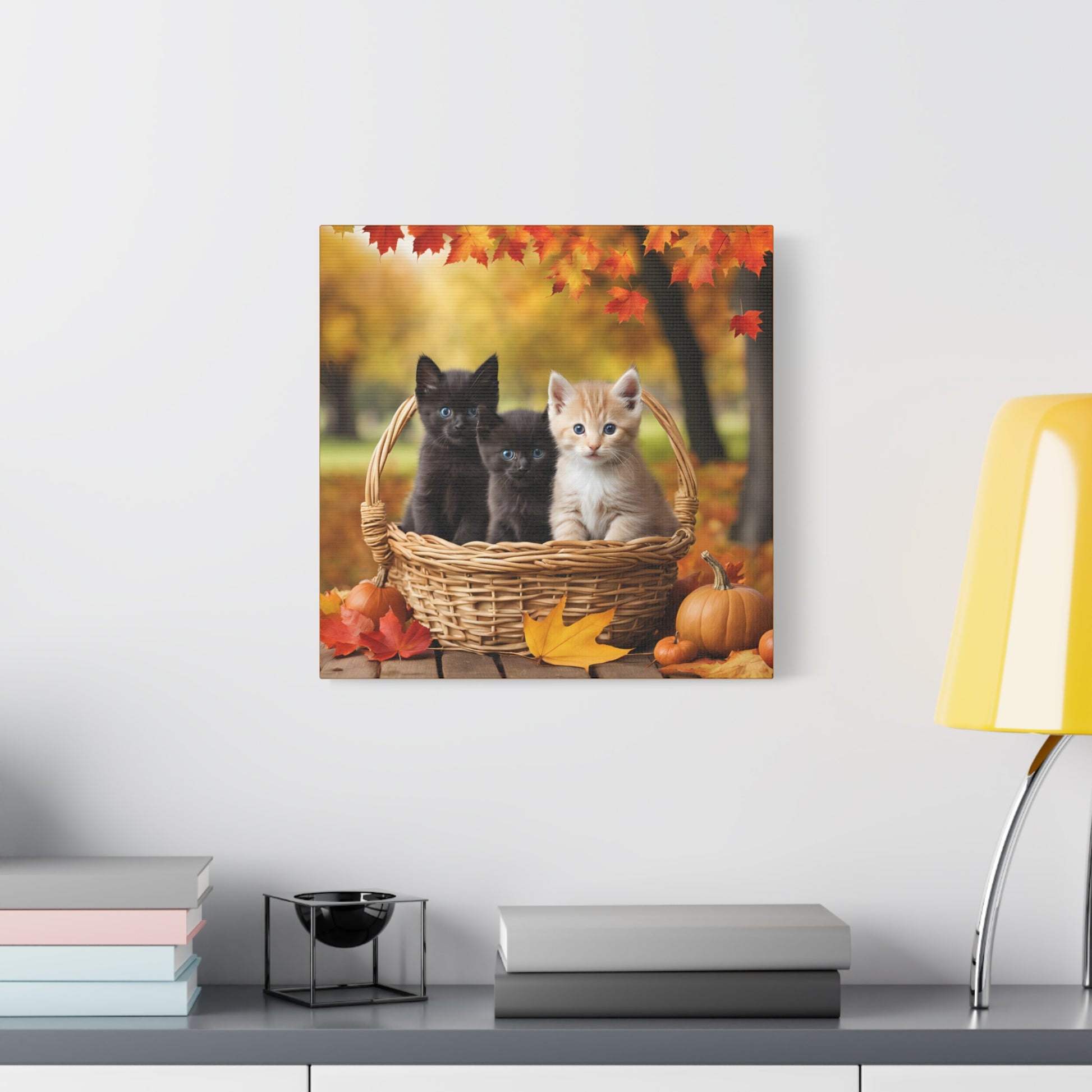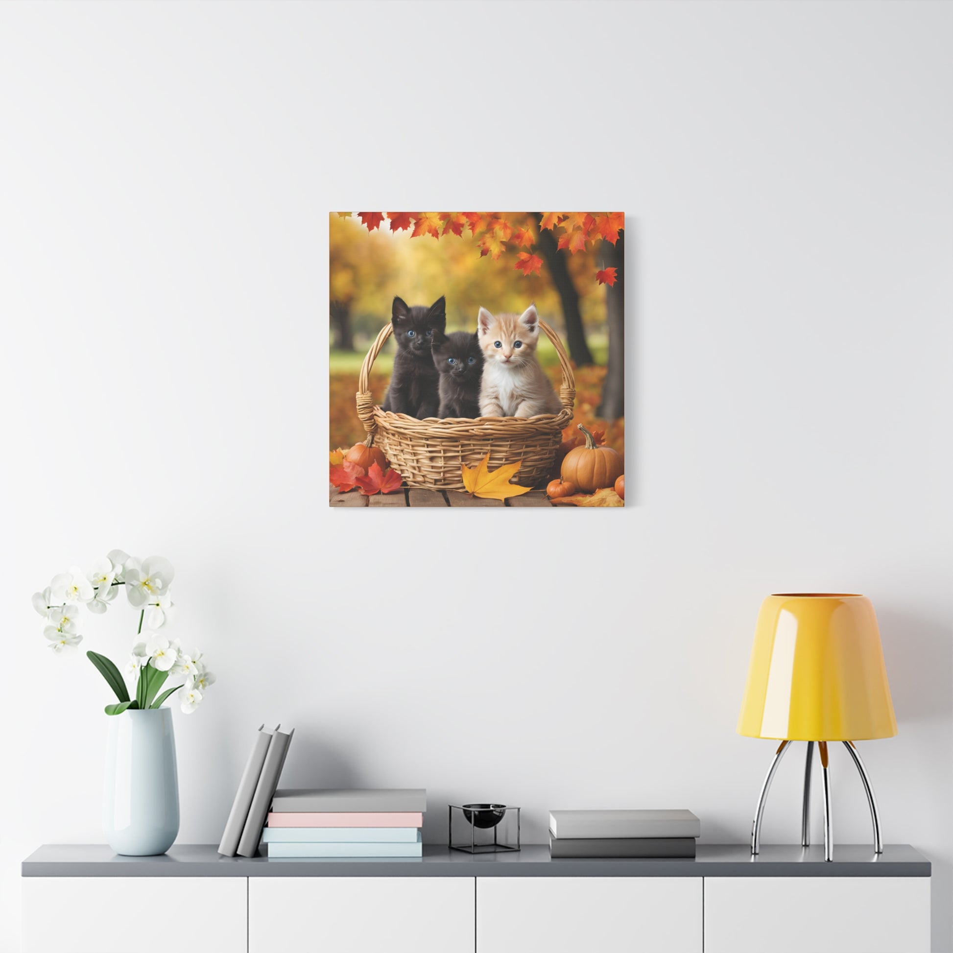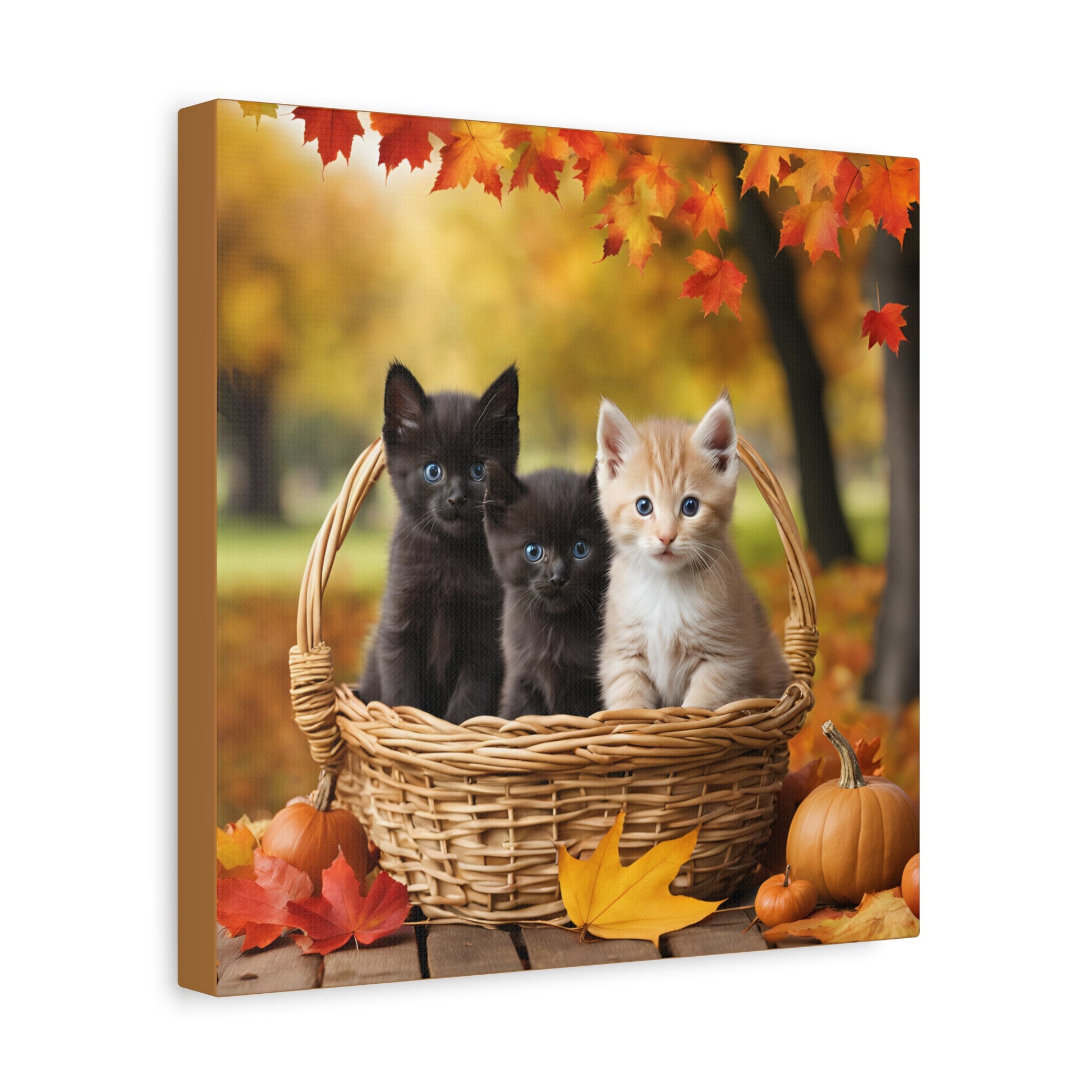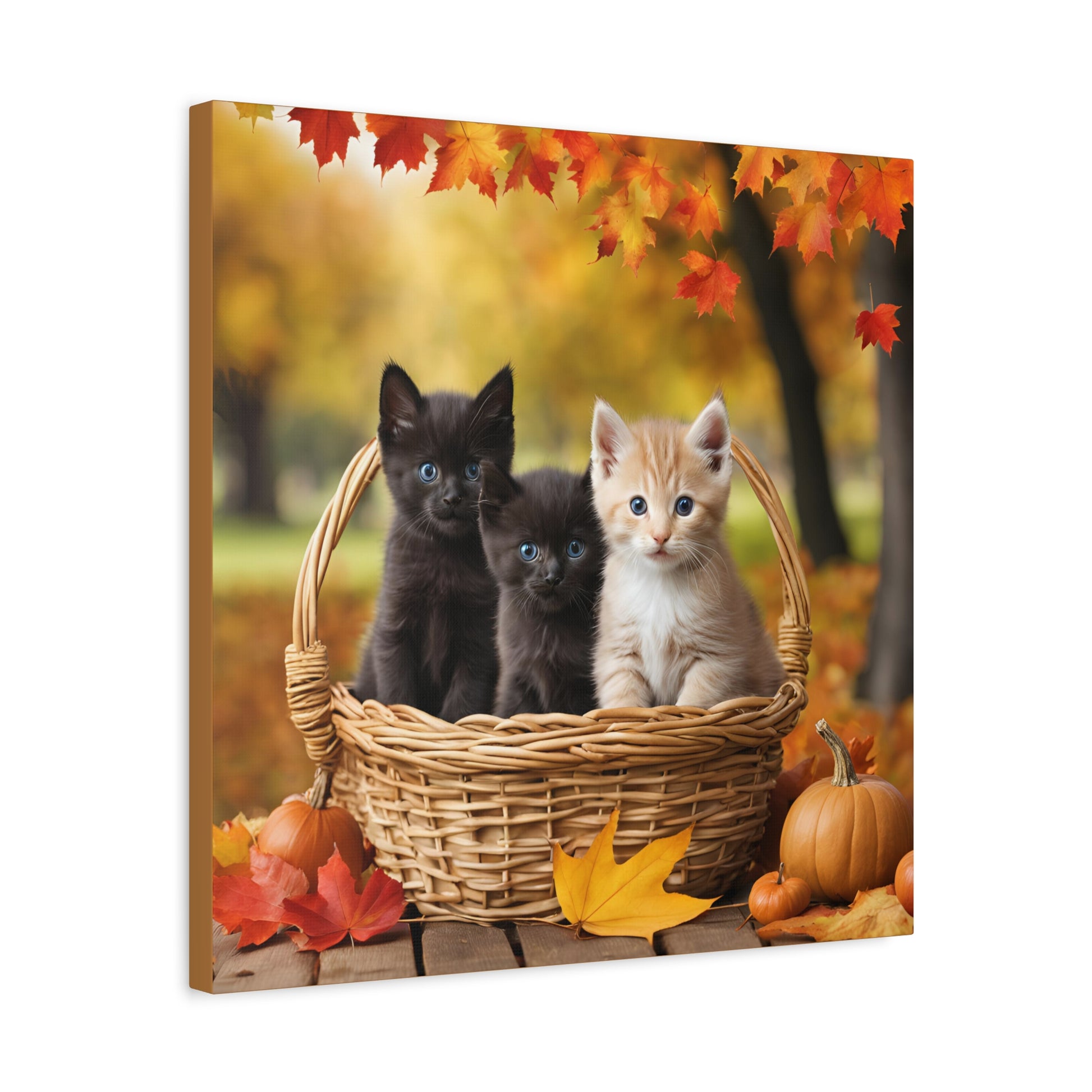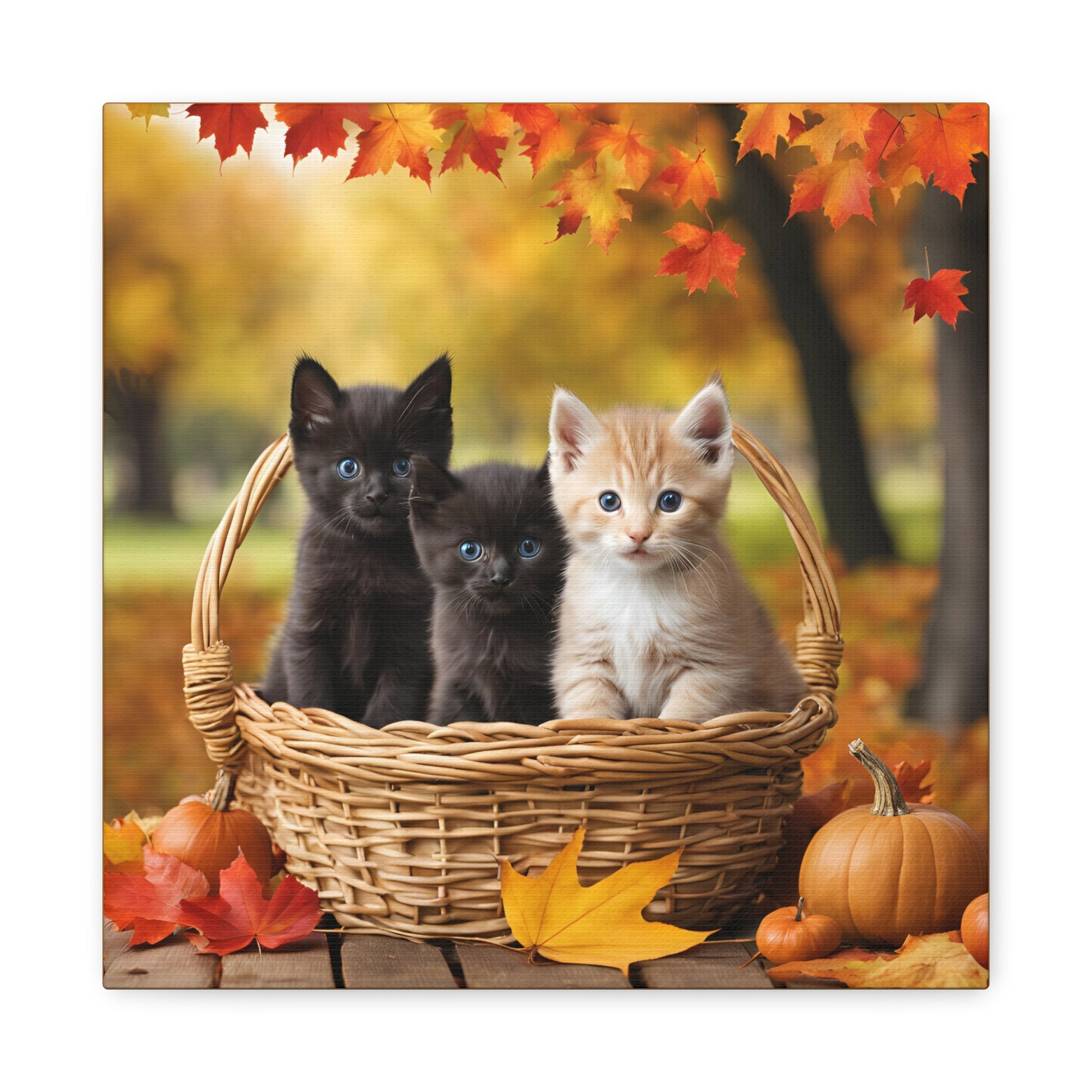 Kittens in Basket Fall Print Wall Art | Matte Canvas, Stretched, 1.25" | Cat Lover | Autumn | Pumpkins |