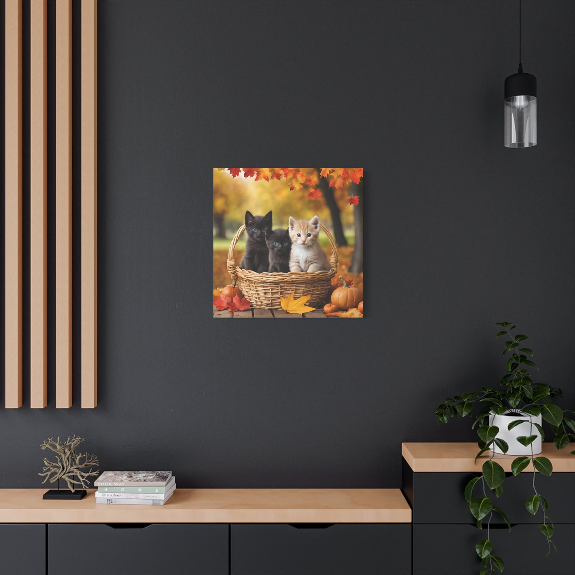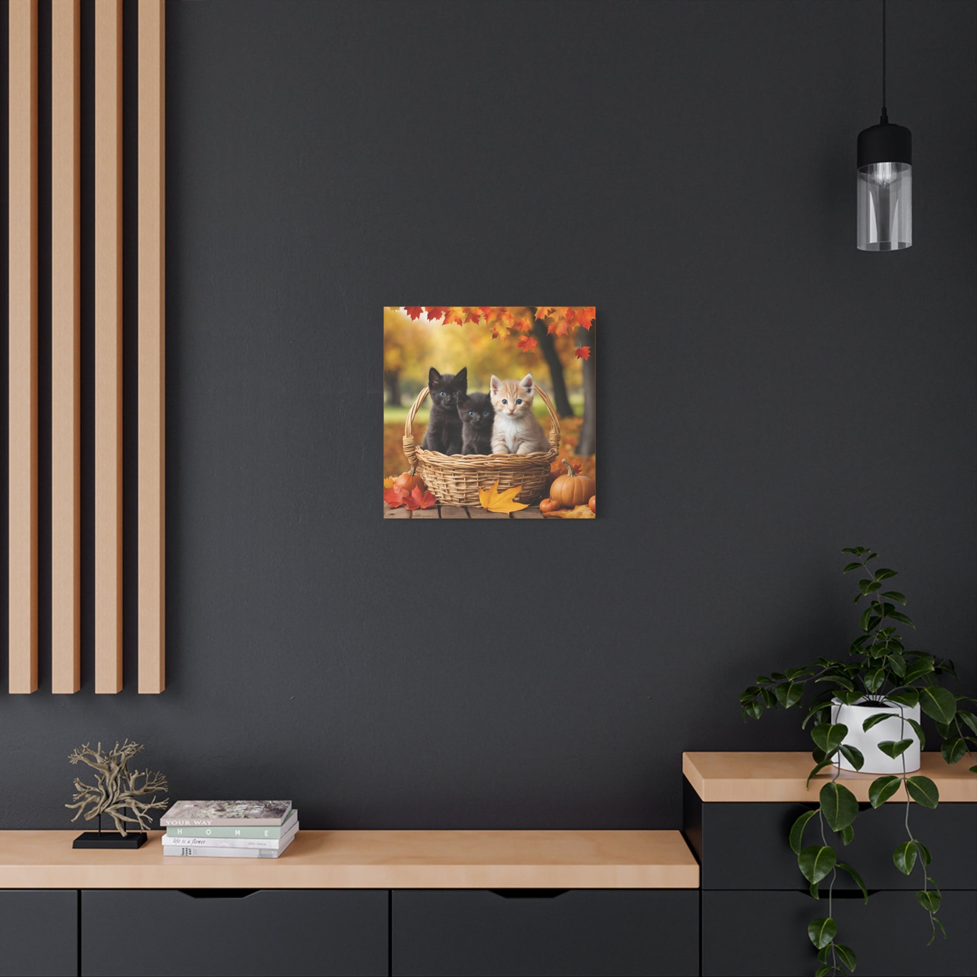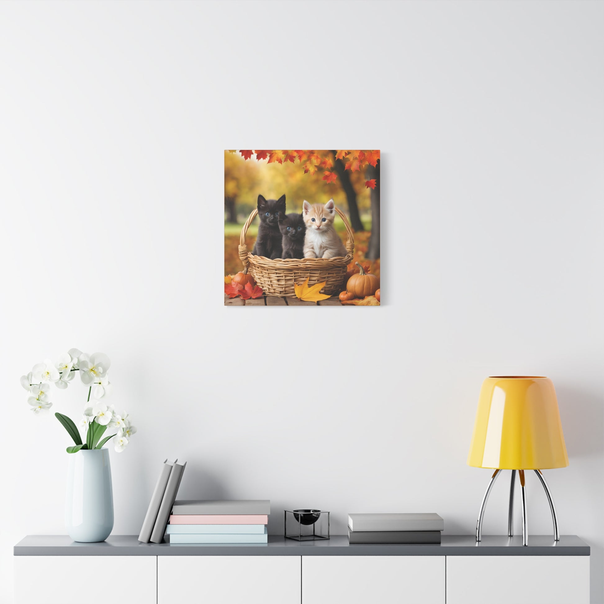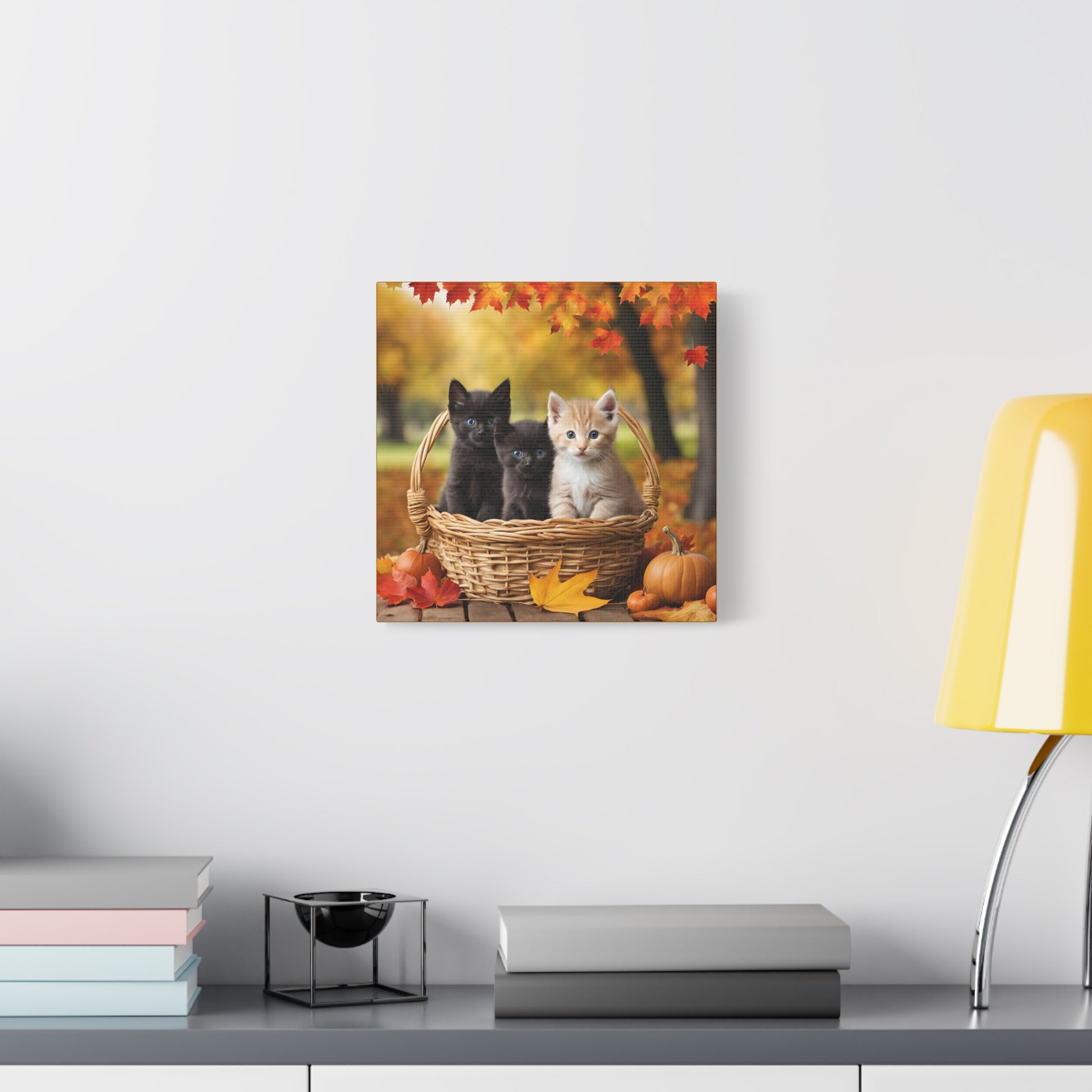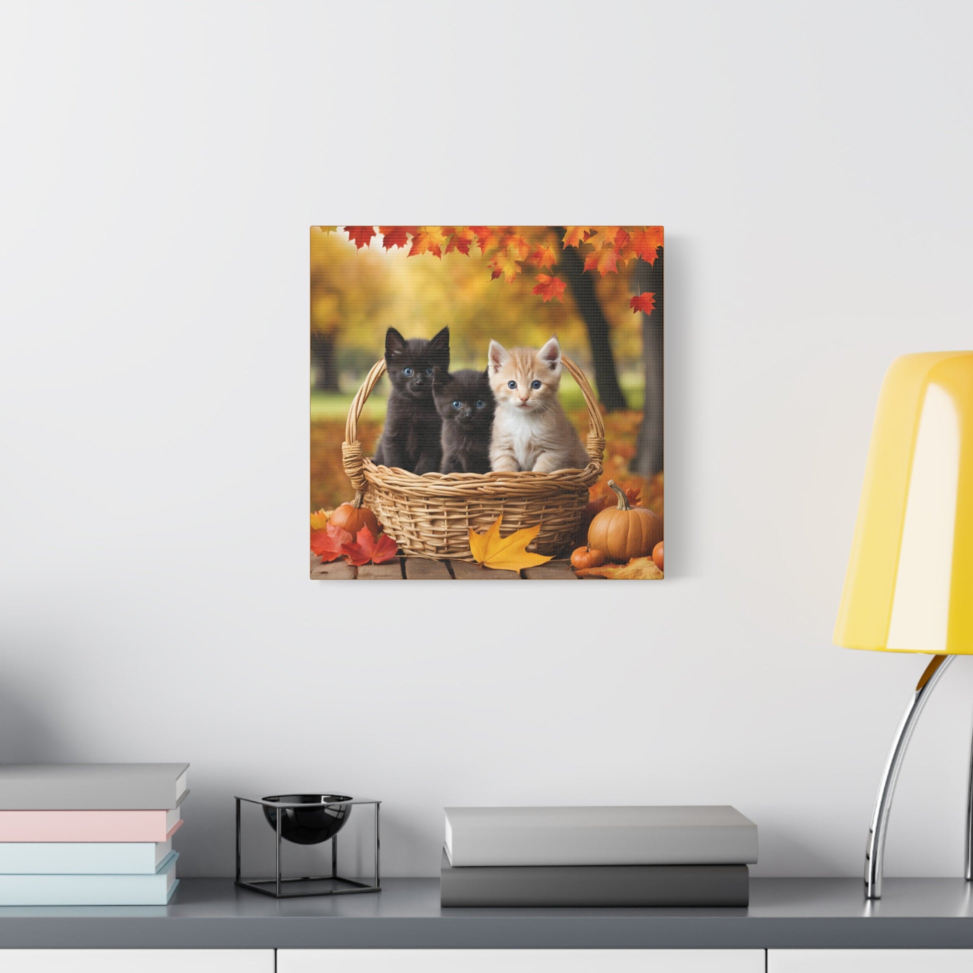 Kittens in Basket Fall Print Wall Art | Matte Canvas, Stretched, 1.25" | Cat Lover | Autumn | Pumpkins |