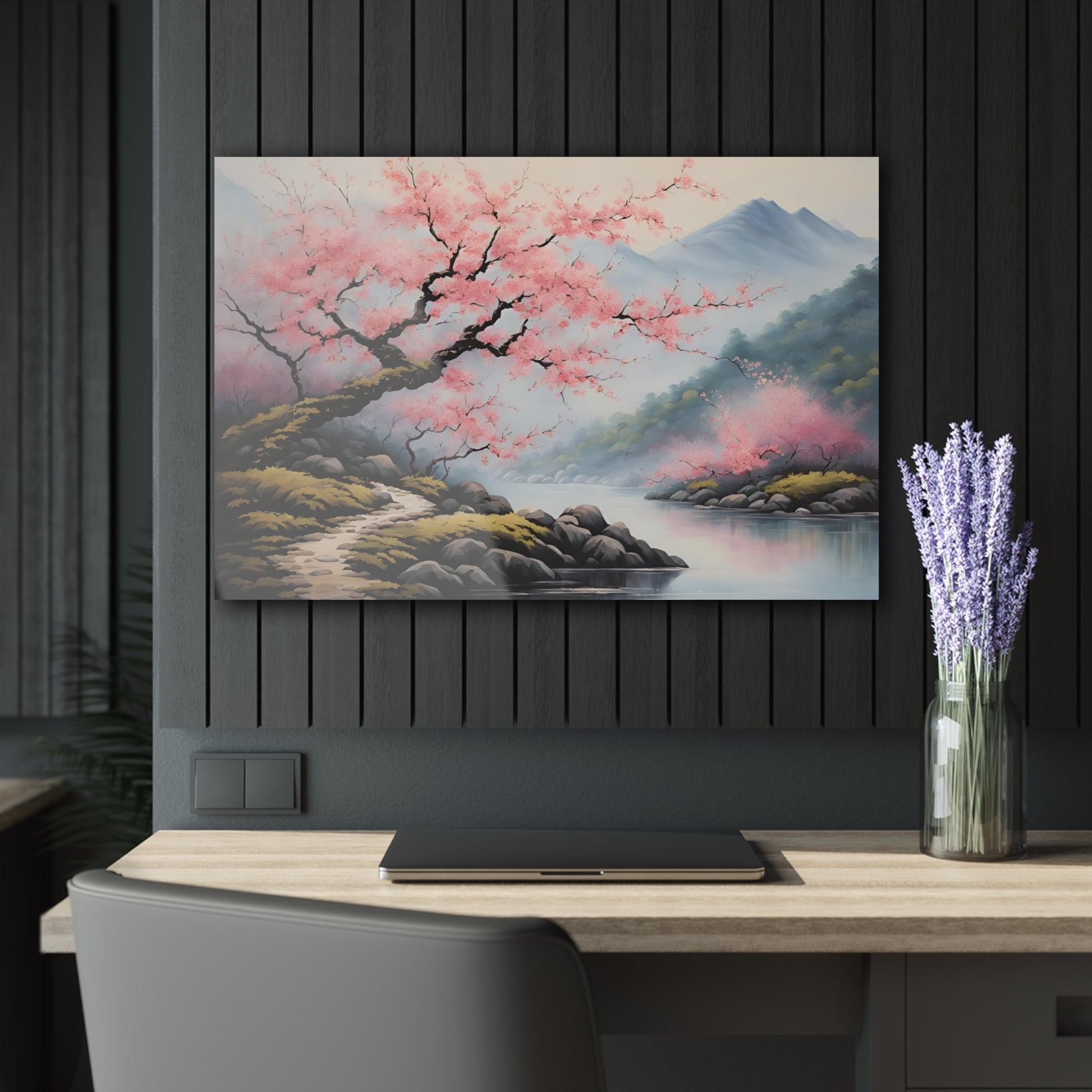 Large Asian Floral Design Acrylic Print with French Cleat Nature Lover Wall Art Flower Lover Gift Art Modern Plum Cherry Blossom Home Decor