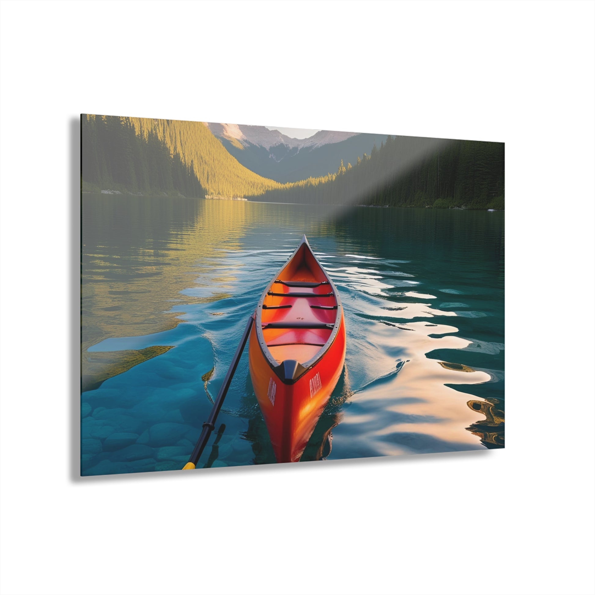 Large Canoe on Lake Acrylic Print with French Cleat Mountain Life Wall Art Outdoorsman Gift Kayak Lover Nature Artwork Modern Home Decor