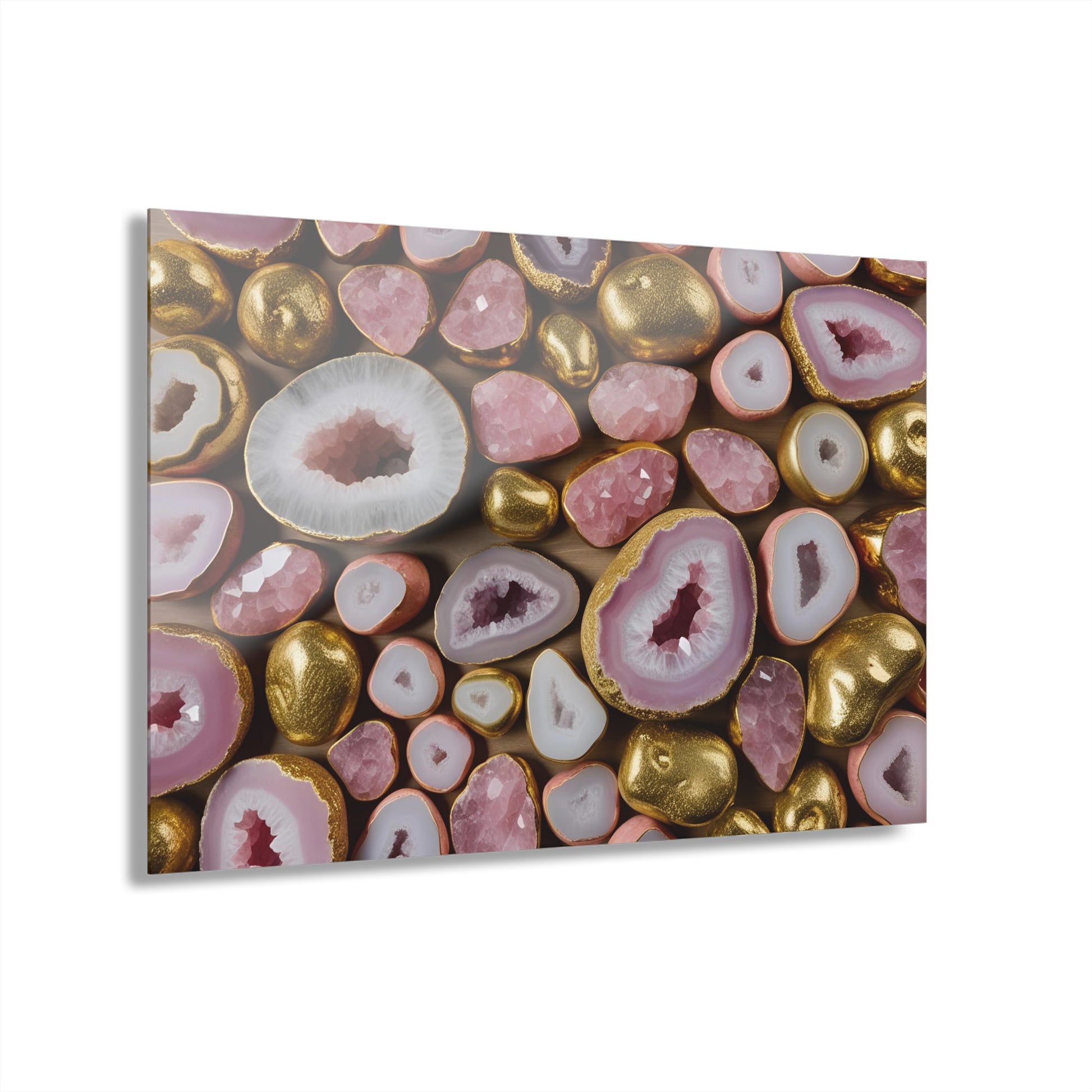 Large Pink Quartz-Inspired Design Acrylic Print Geode Look French Cleat Nature Rock Lover Wall Art Lover Gift Artwork Modern Home Decor