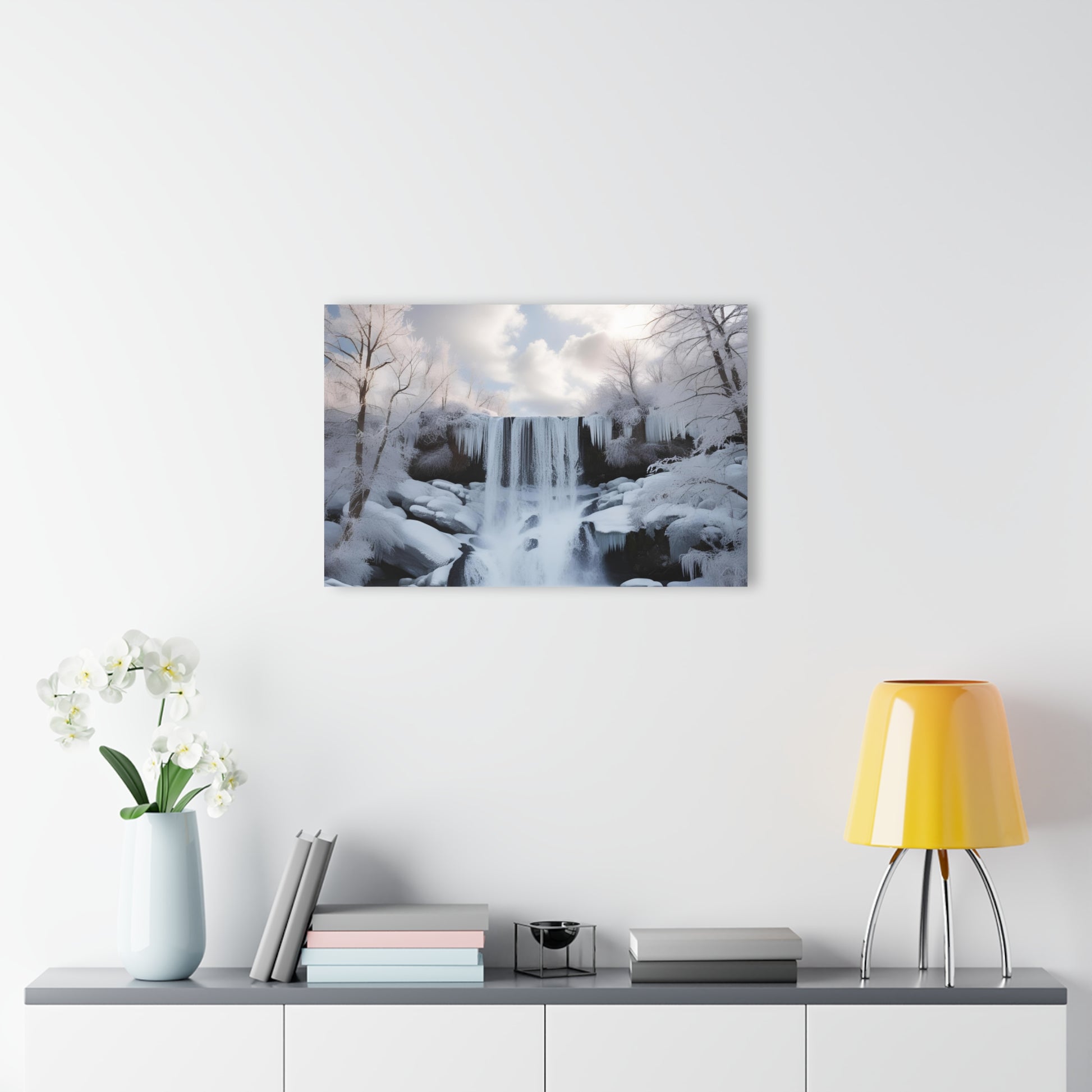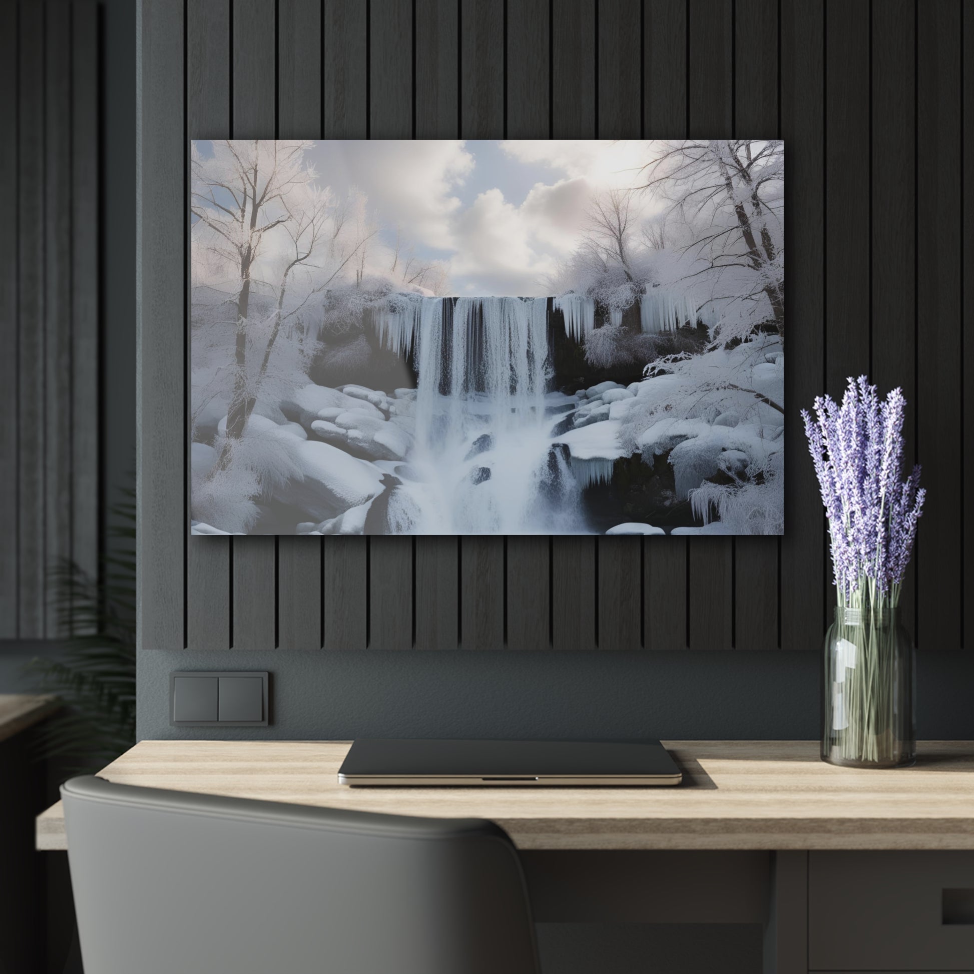 Large Snowy Waterfall Acrylic Print with French Cleat Nature Lover Wall Art Mountain Life Gift Outdoors Artwork Modern Home Decor