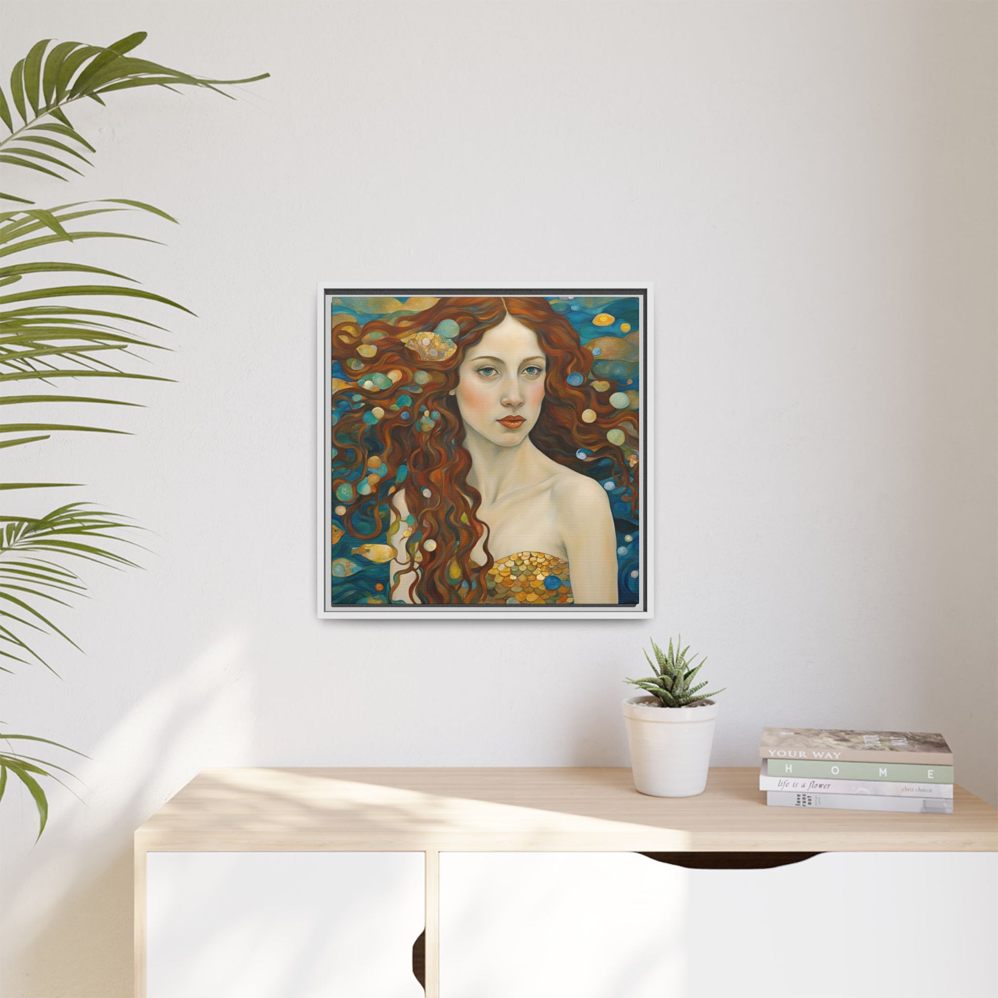 Modern Abstract Mermaid Design Unique Framed Canvas Oceanic Wall Art Underwater Gold Fish Anime Gift Nature Lover Gift 3 frame colors