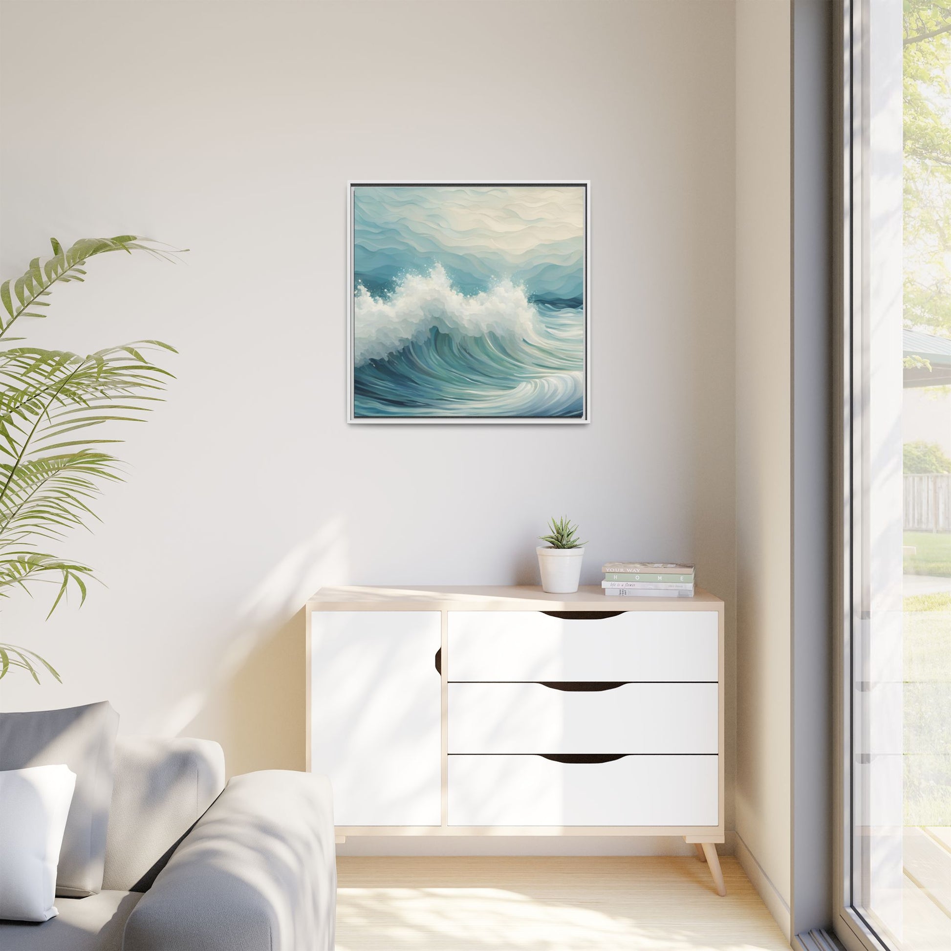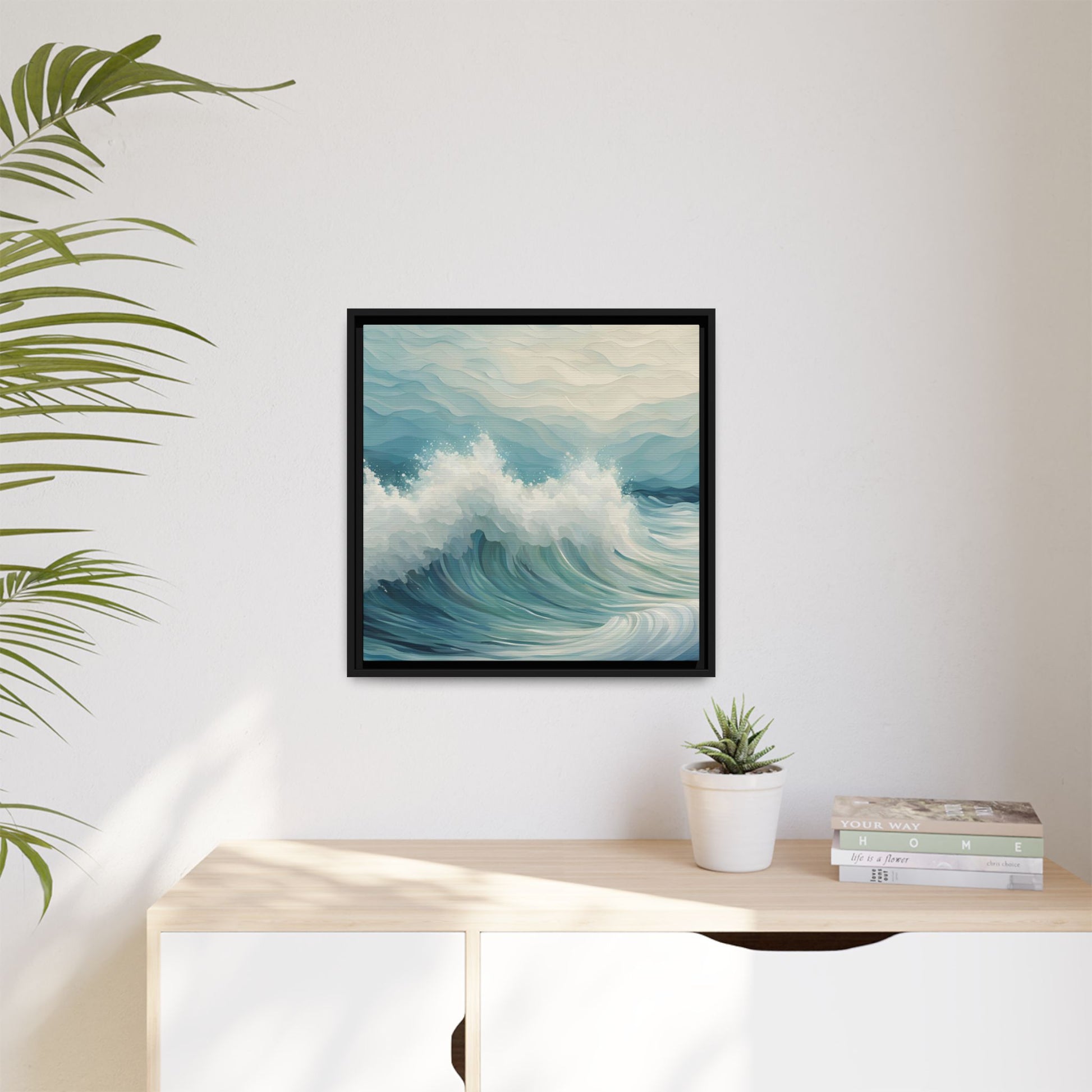 Enhance your interior space with our beautiful art framed in a pinewood frame. Printed on a cotton-polyester canvas with a special proprietary coating to ensure long-lasting, vibrant colors and eye-catching detail. Made with sustainably sourced materials (Forest Stewardship Council certified), these frames are an eco-friendly choice. Choose between multiple sizes, and between 3 colors that matches your surroundings. The sawtooth hanging hardware is already attached.