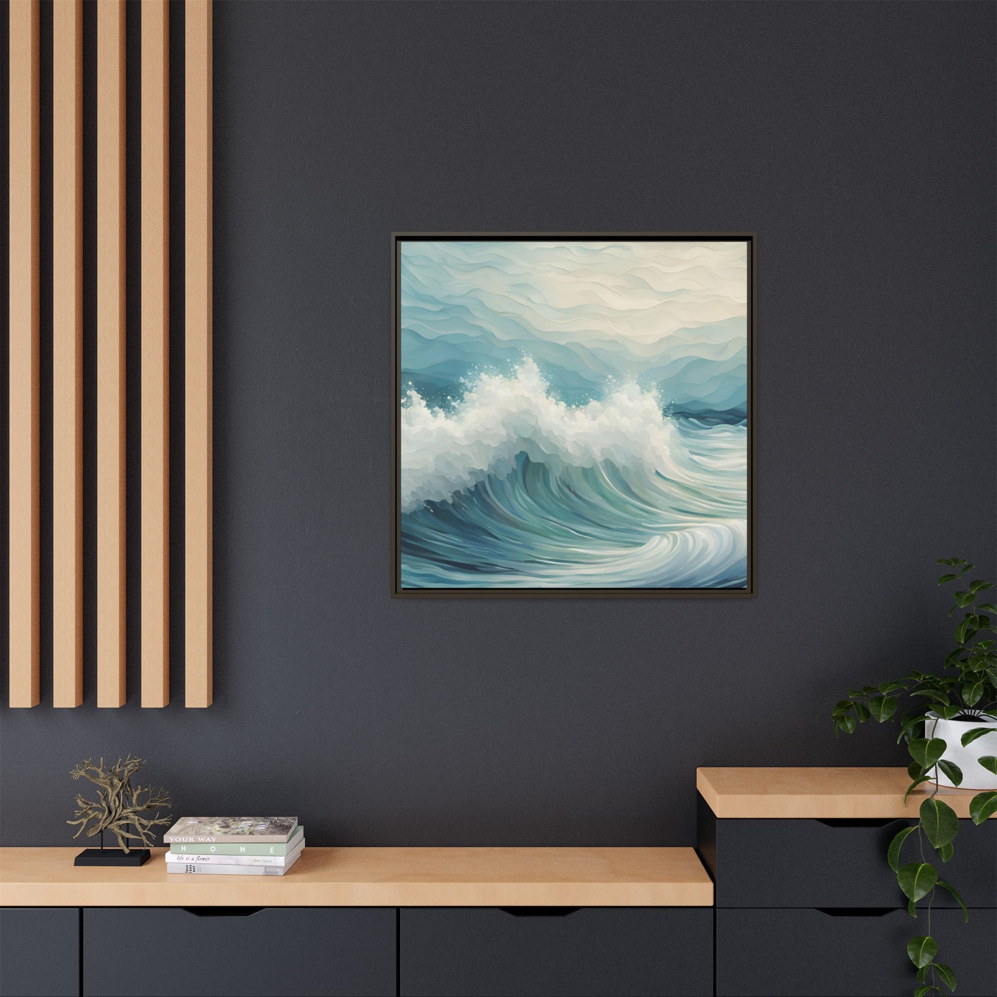 Modern Abstract Wave Design Unique Framed Canvas Wall Art Ocean Beach Gift Nature Lover Gift Underwater Sea Lover Gift 3 frame colors