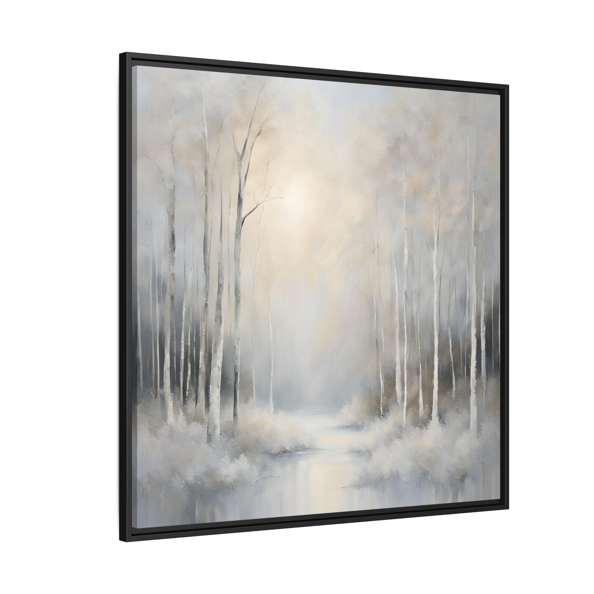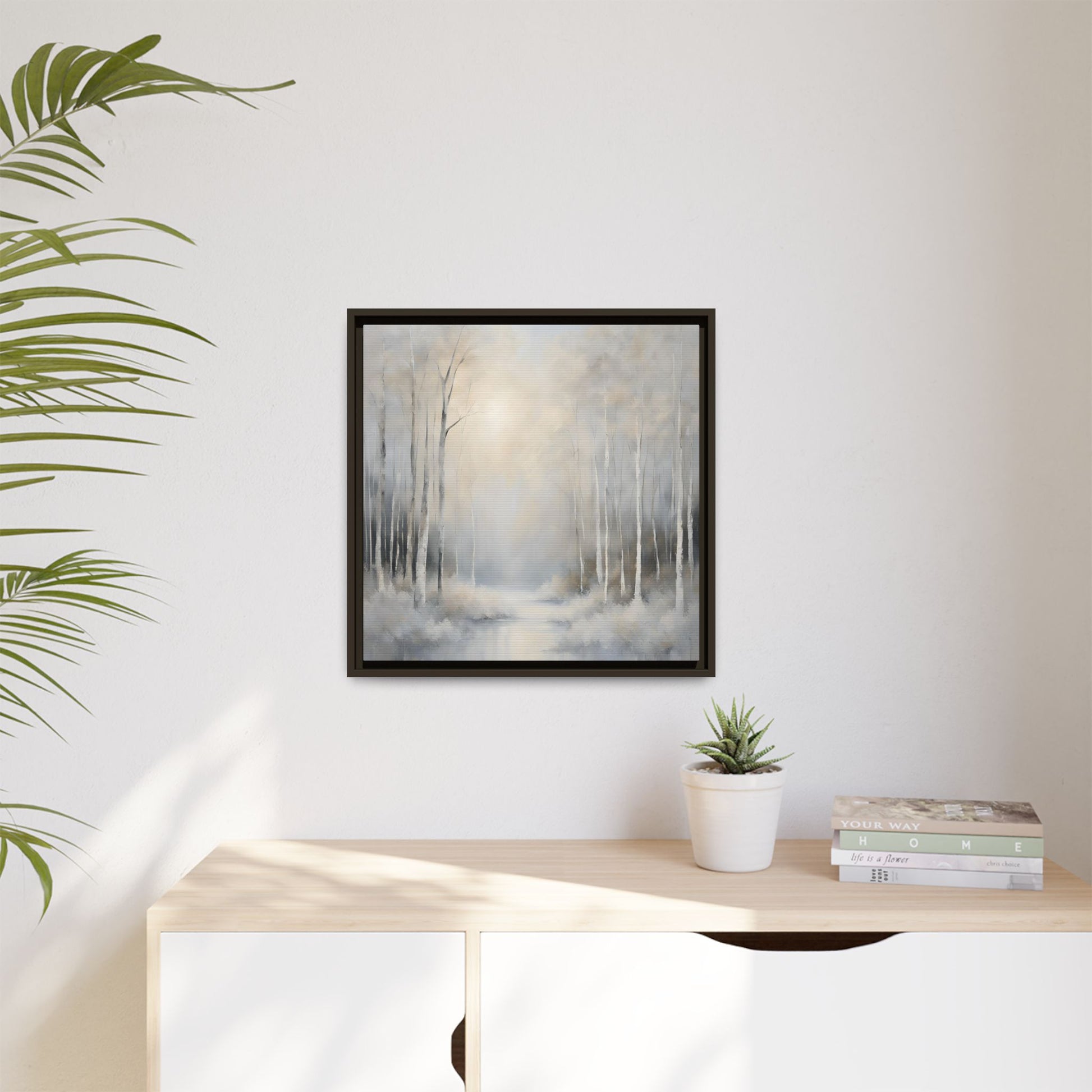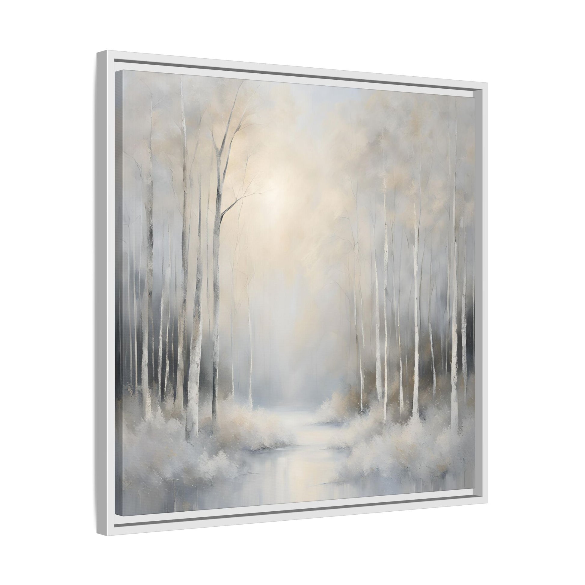 Modern Abstract White Forest Design Unique Framed Canvas Wall Art Ocean Beach Gift Nature Lover Gift 3 frame colors