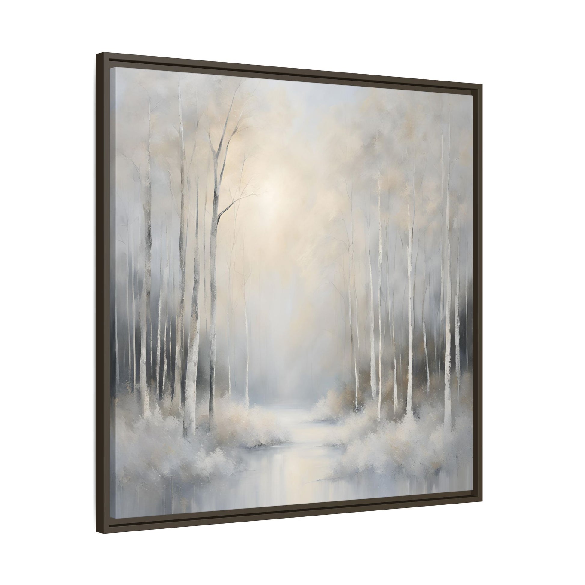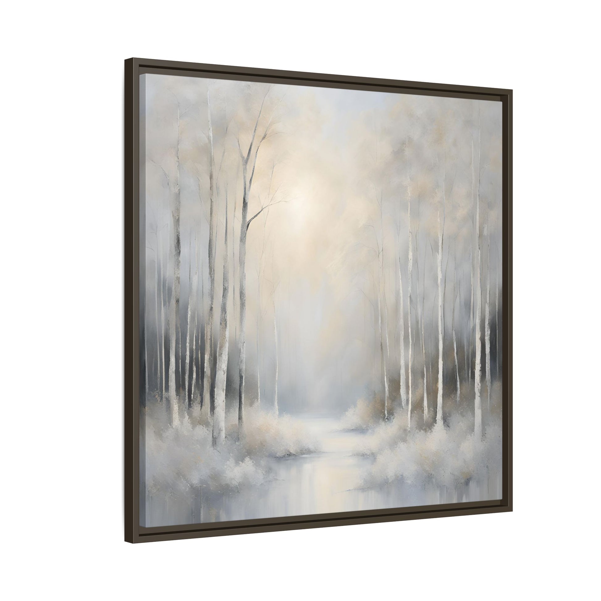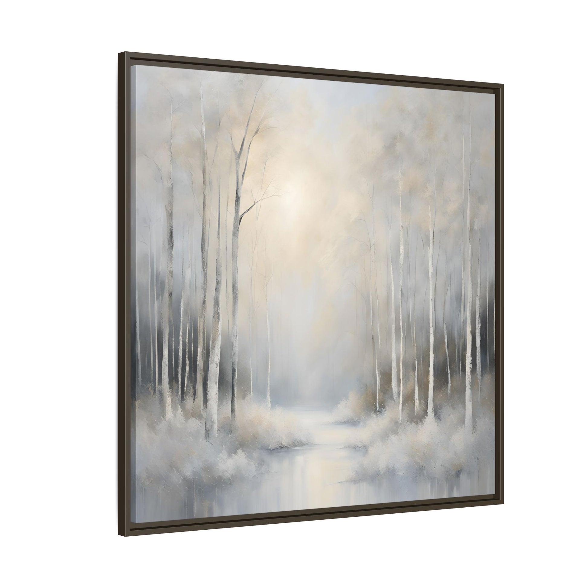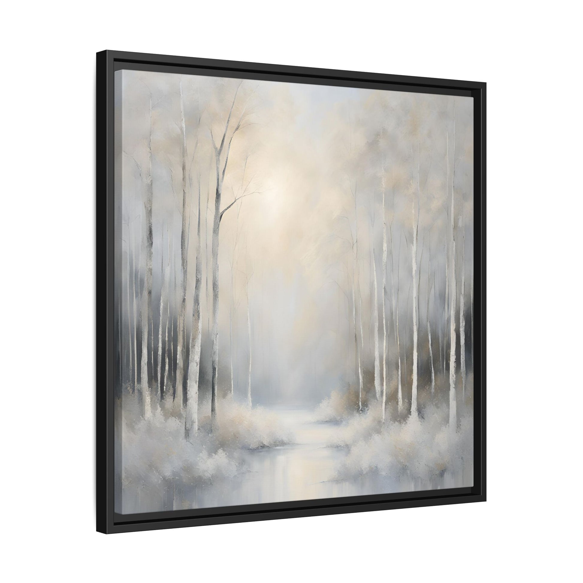 Modern Abstract White Forest Design Unique Framed Canvas Wall Art Ocean Beach Gift Nature Lover Gift 3 frame colors