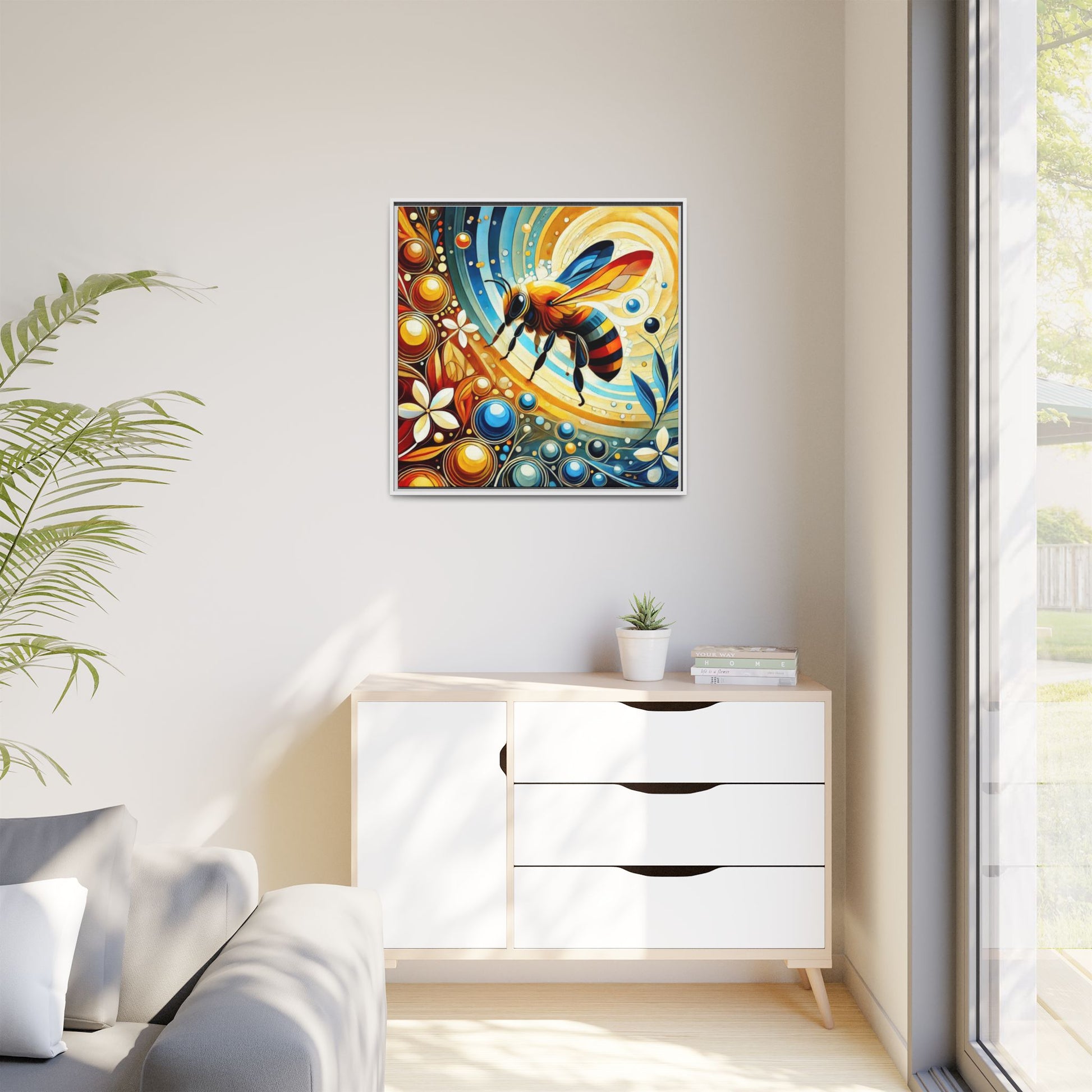 Modern Bee Print Abstract Design Unique Framed Canvas Print Insect Lover Wall Art Animal Lover Nature Lover Decor 3 frame colors