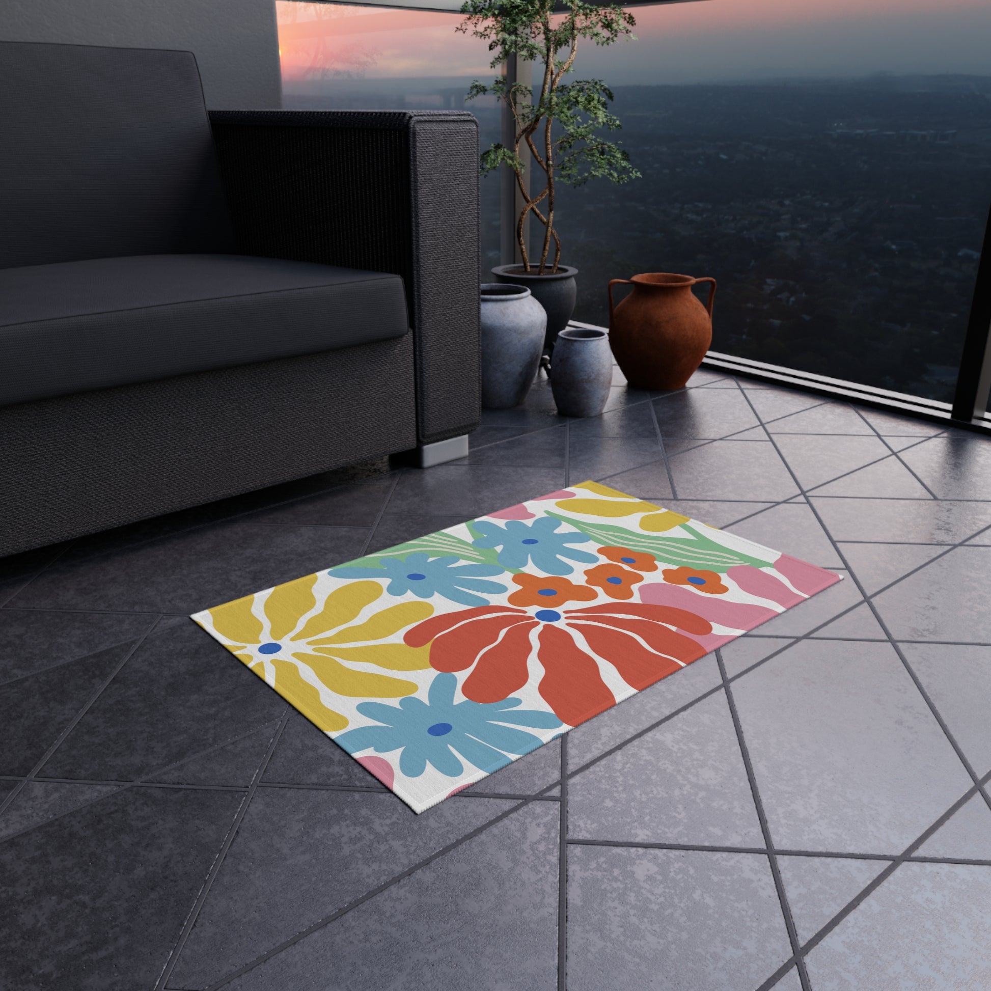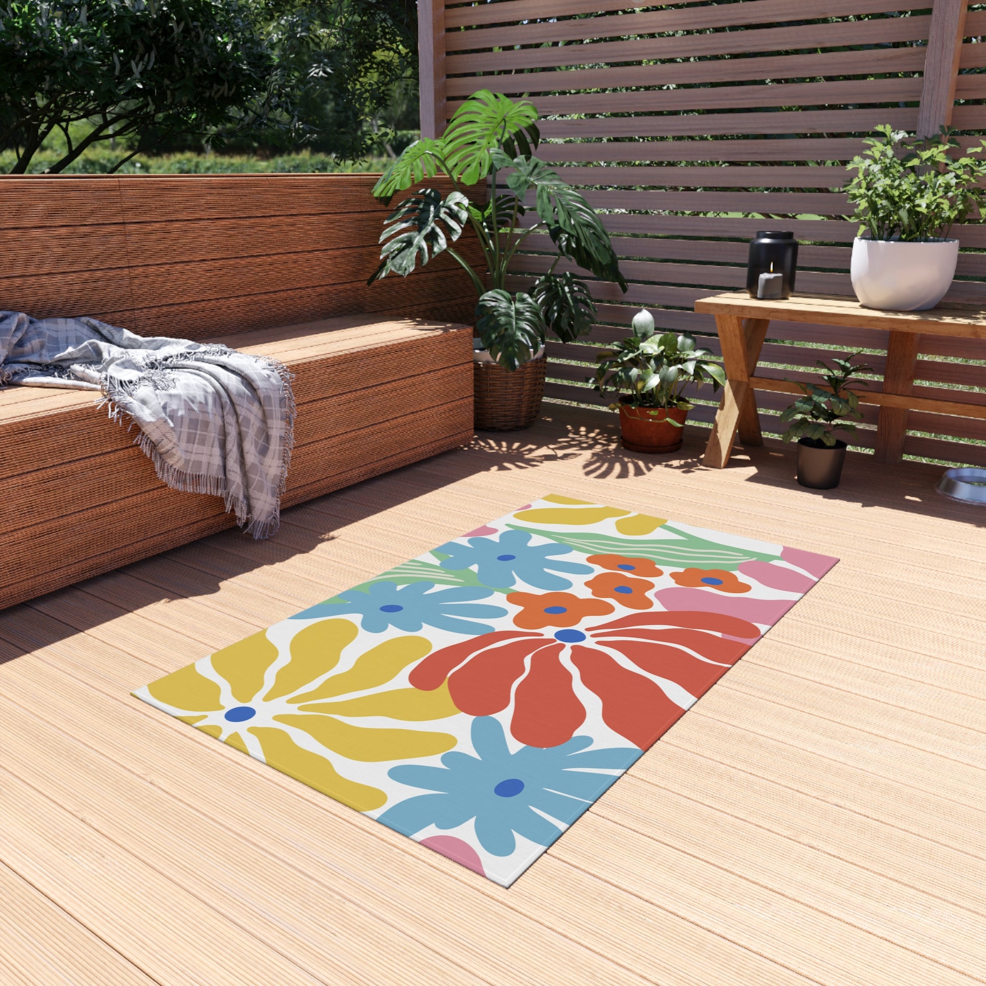 Modern Floral Chenille Outdoor Rug with No-Skid Backing Cozy Outdoor Carpet Patio Decor Gazebo Rug Pool Area Decor Outdoor Kitchen Carpet