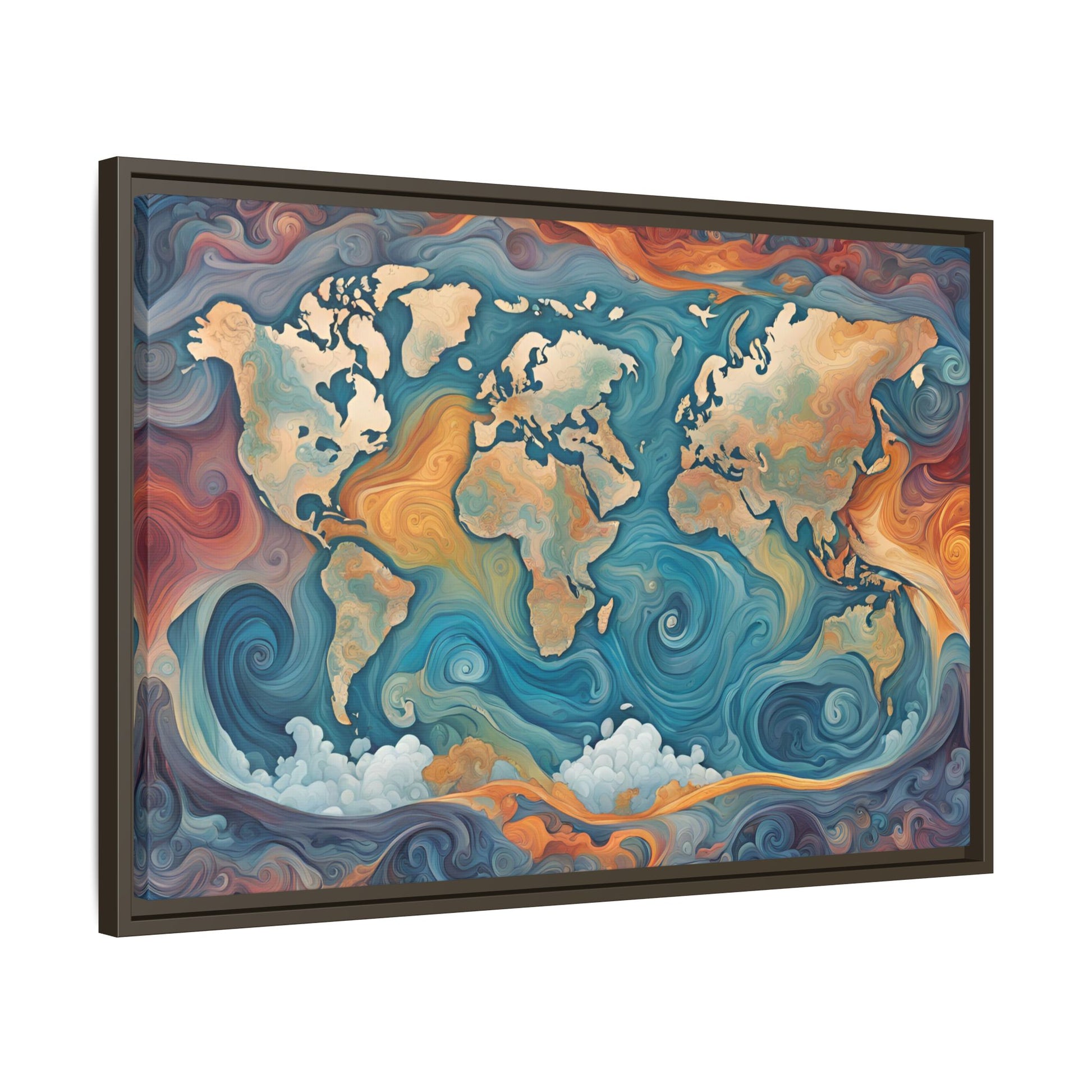 Modern Swirl Art Style Colorful Global World Map Print Matte Canvas Wall Art 3 frame colors to choose from