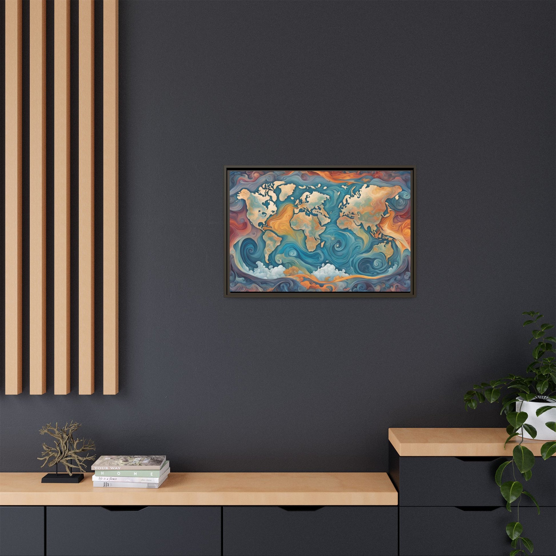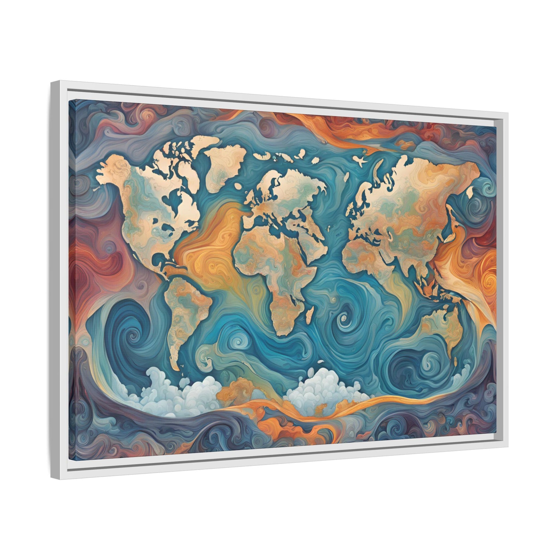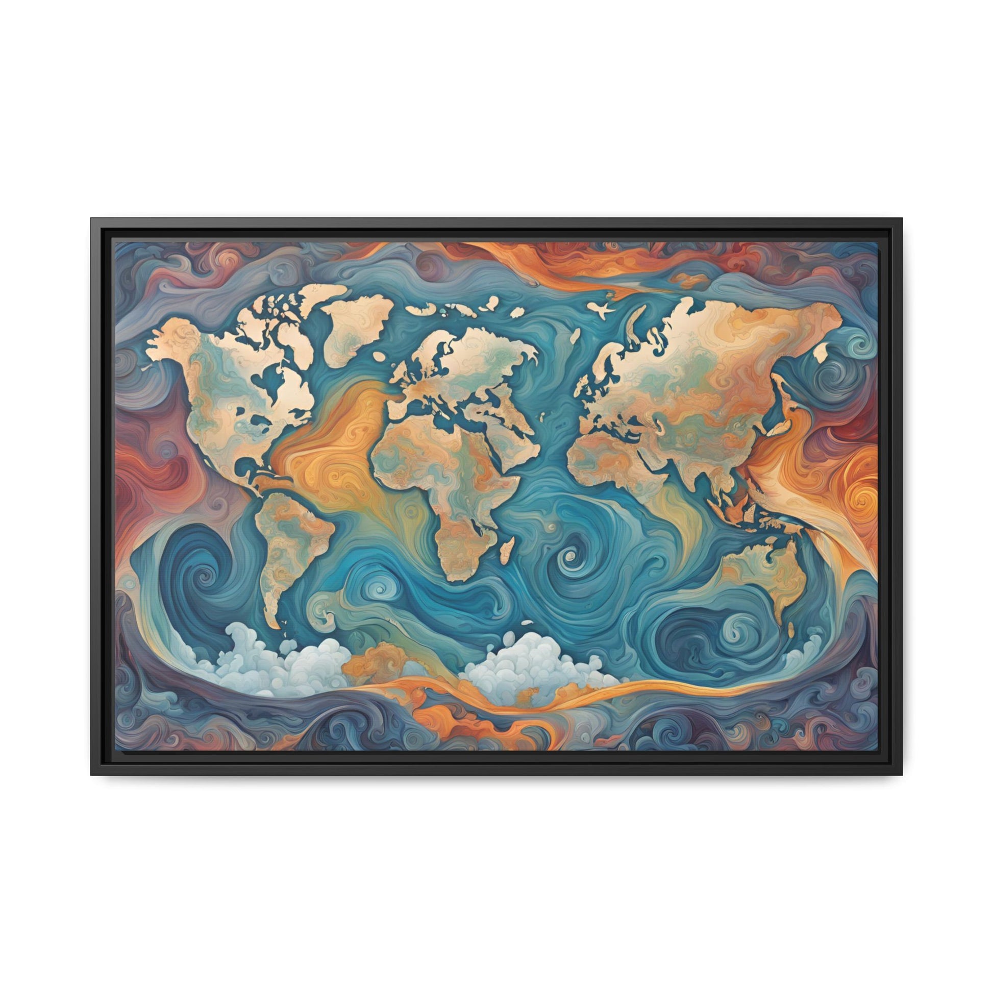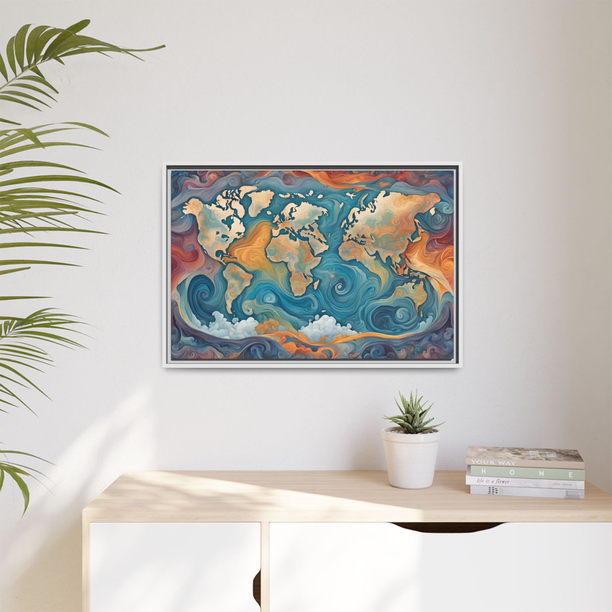 Modern Swirl Art Style Colorful Global World Map Print Matte Canvas Wall Art 3 frame colors to choose from