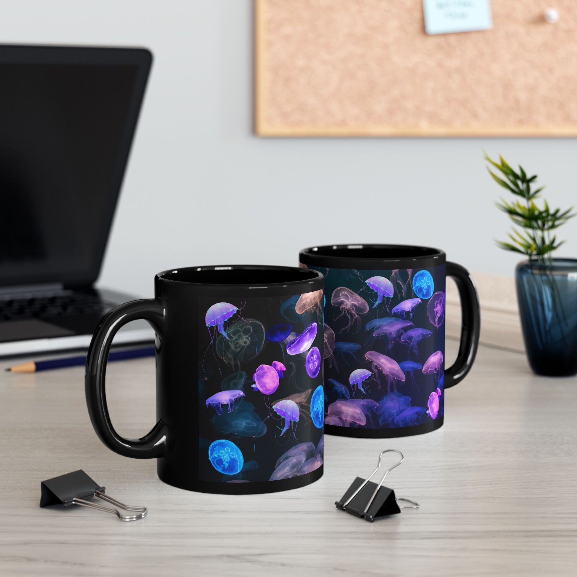 Neon Jellyfish Design Mug perfect for coffee, tea and hot chocolate that makes a great gift for yourself or the Sea Life Lover in your life! We've created a beautiful underwater image that is sublimated onto a ceramic mug and wraps around the mug. It's BPA and Lead-free, microwave & dishwasher-safe, and made of white, durable ceramic in 11-ounce size. The perfect gift for coffee, tea, and chocolate lovers as well as your picky and hard to shop for friends and family members for birthdays, Christmas, Valentine's Day or just to say you are thinking about them. We are so pleased to be able to offer this very popular mug design. All mugs feature a comfortable C-handle and a shiny finish so that they're both easy to use and great to look at. Be sure to check out our store's uniquely designed wall clocks as well! ** Please note that all of our mugs are made of ceramic material only and do not contain any precious metals, minerals, crystals, marble, quartz or gemstones.