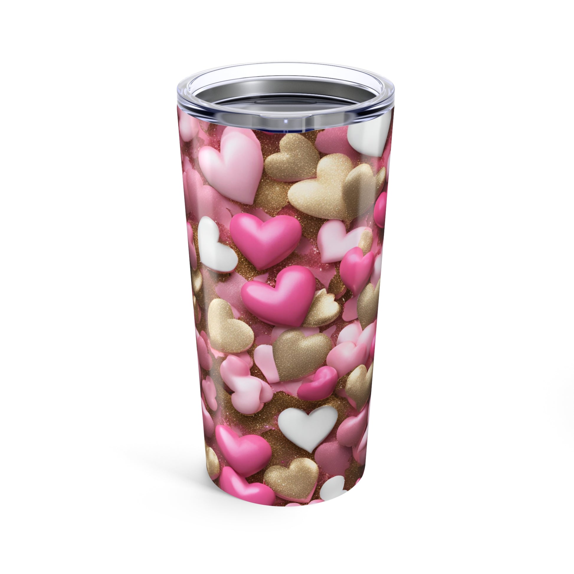 Pink and Gold Pearl Hearts Tumbler Valentine's Gift for Her Love Friendship Gift Tumbler Gemstone Lover Rhinestone Crystal Design Tumbler