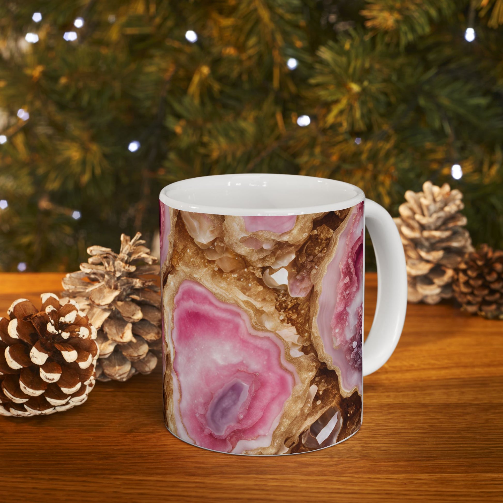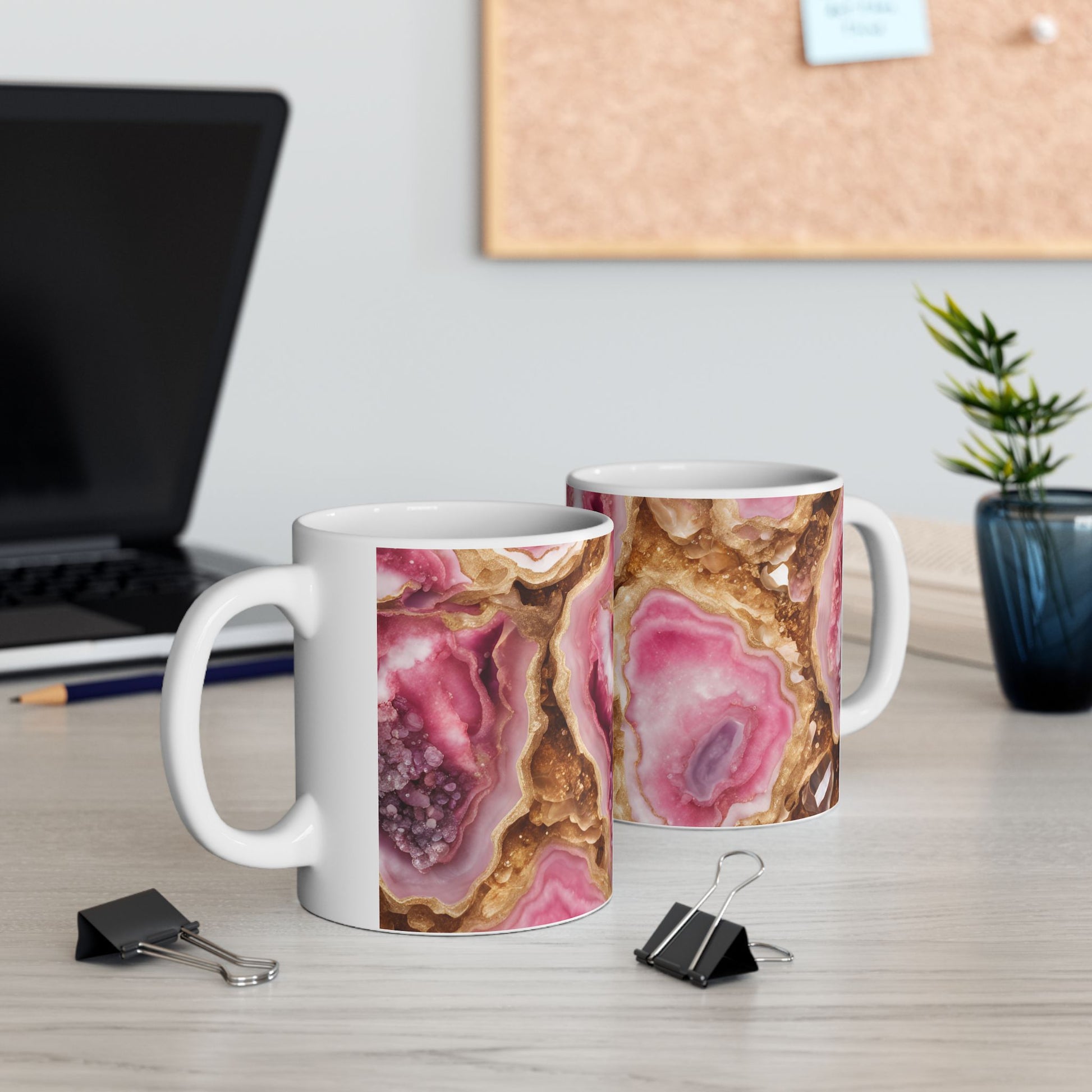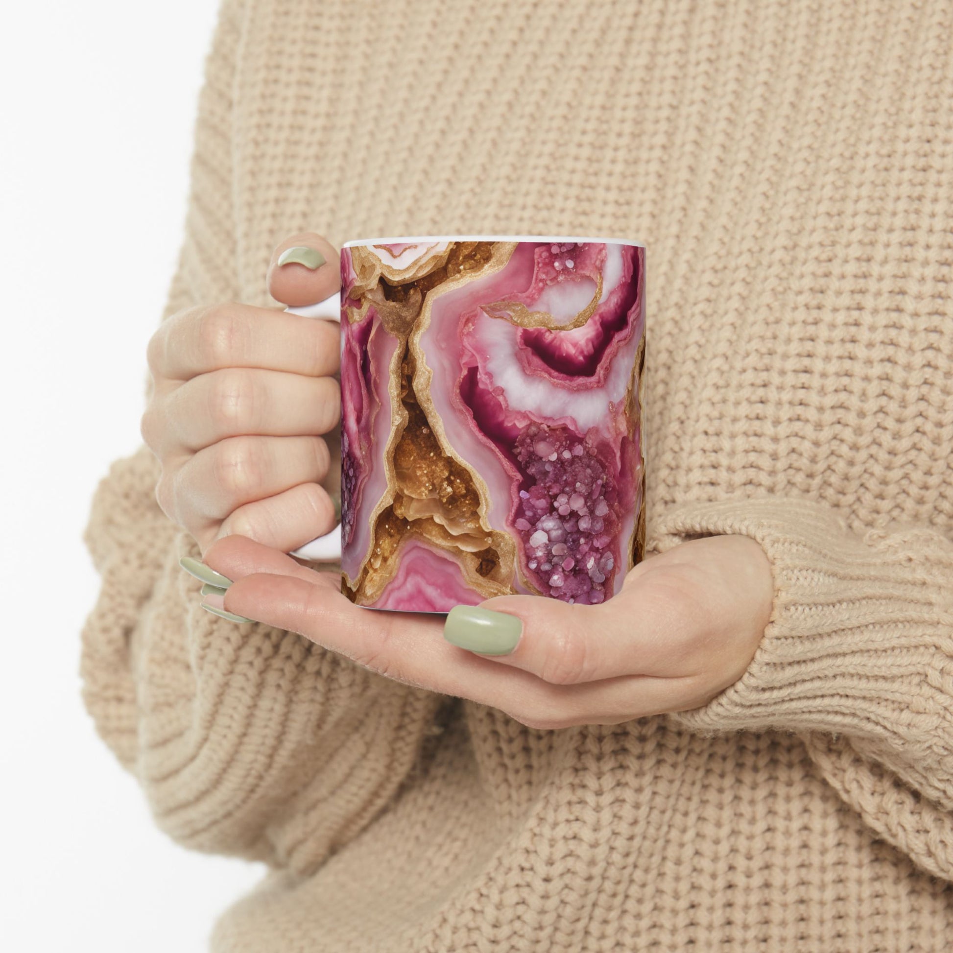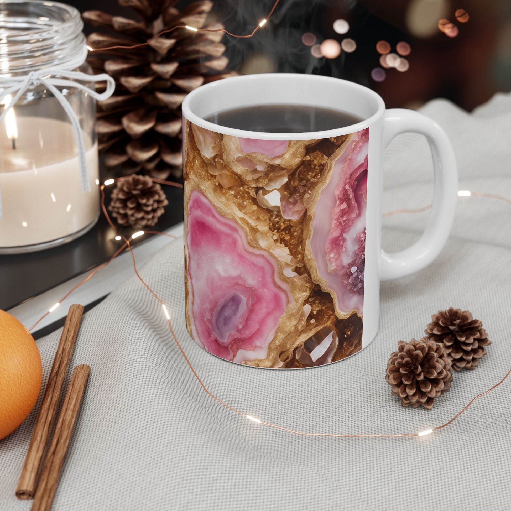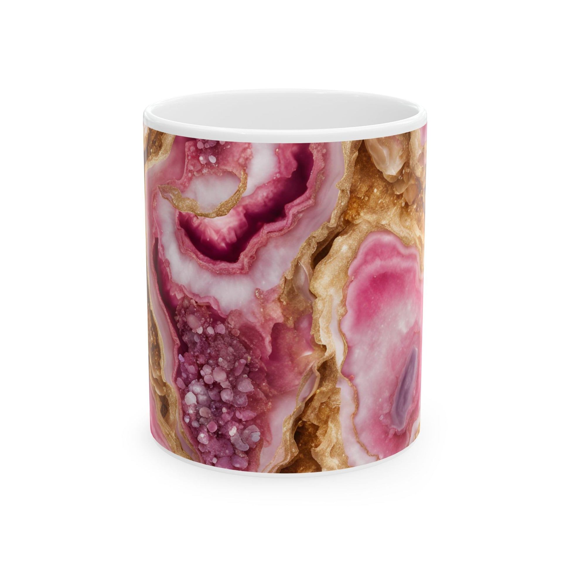 Pink and Gold Quartz Crystal Geode Design Coffee Tea Mug Boho Marble Gemologist Gift for Her Nature Lover Amethyst Stone Rock Geology Gift