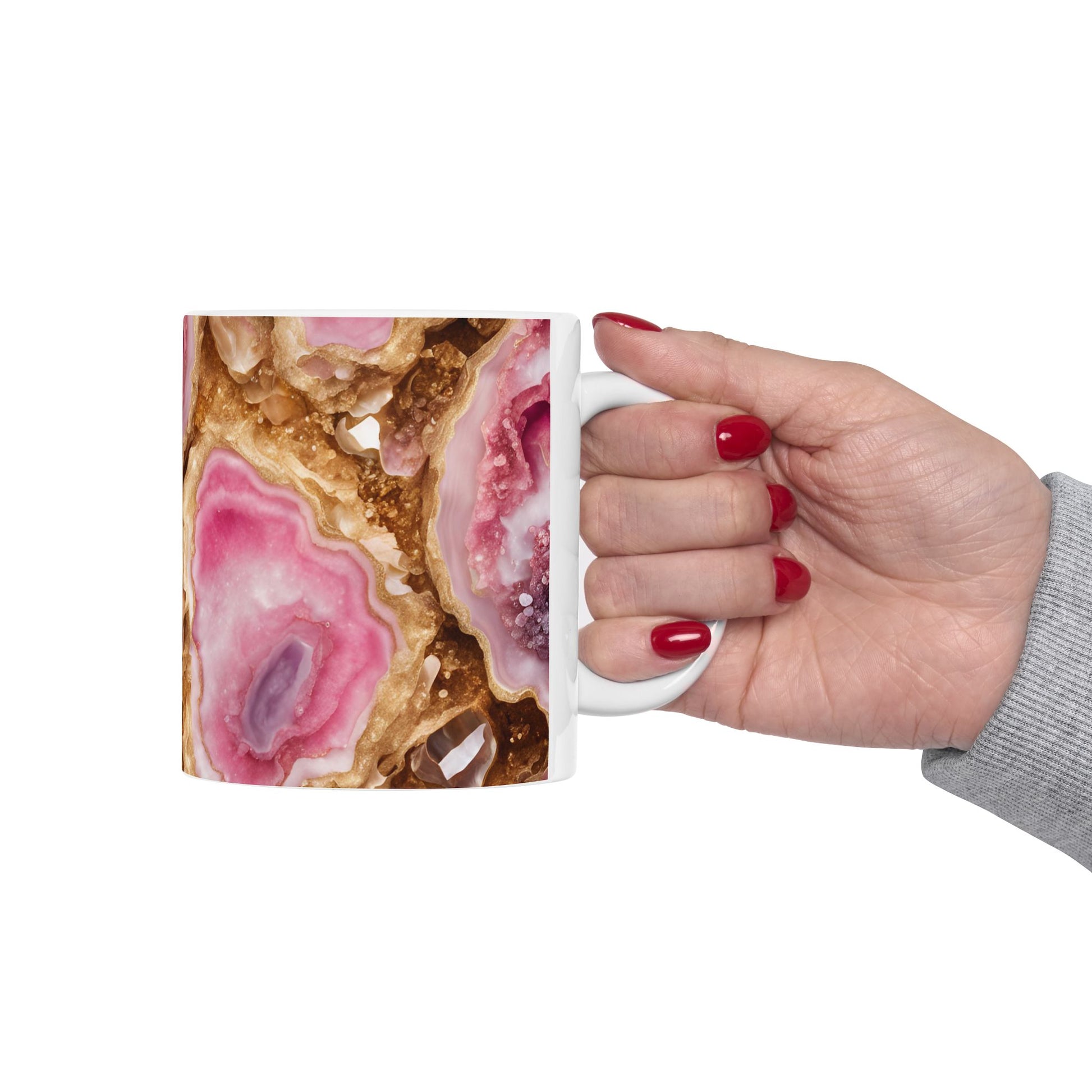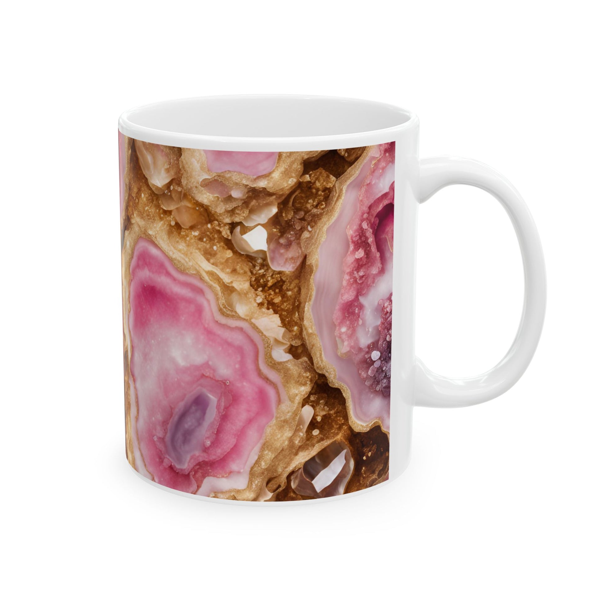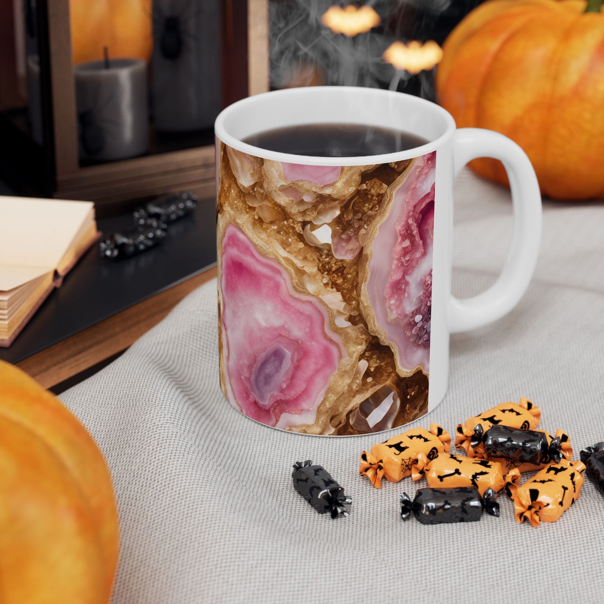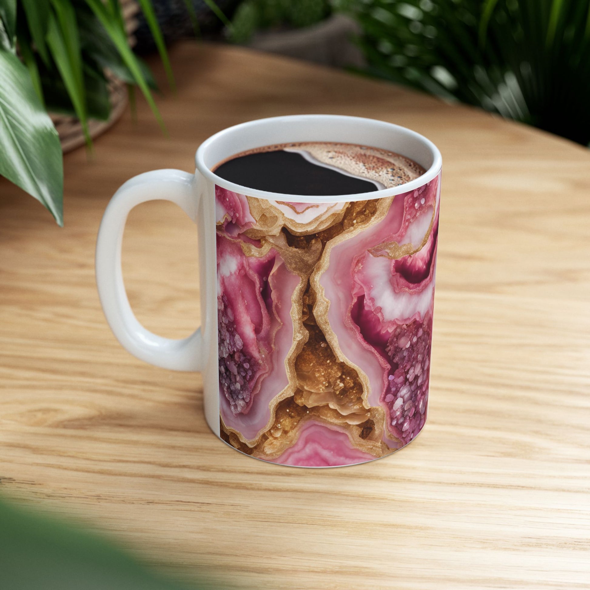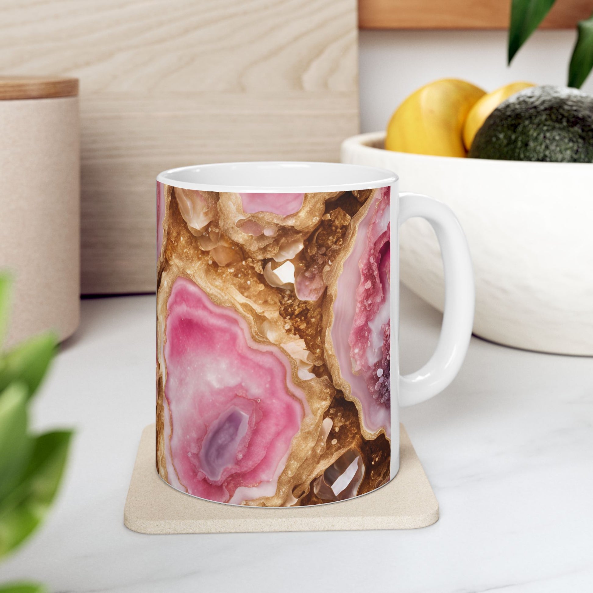 Pink and Gold Quartz Crystal Geode Design Coffee Tea Mug Boho Marble Gemologist Gift for Her Nature Lover Amethyst Stone Rock Geology Gift