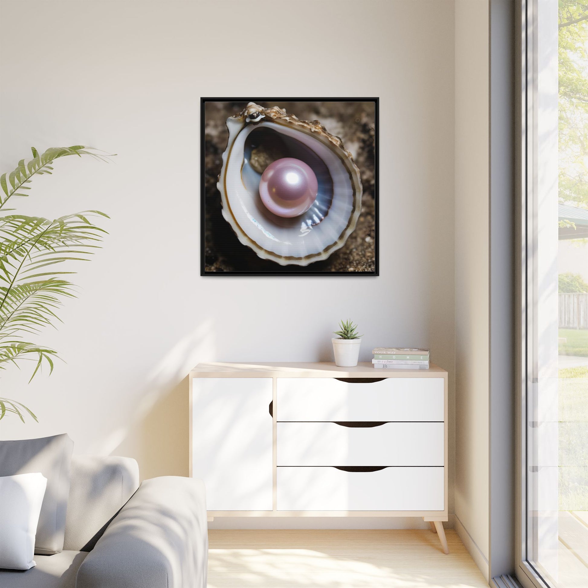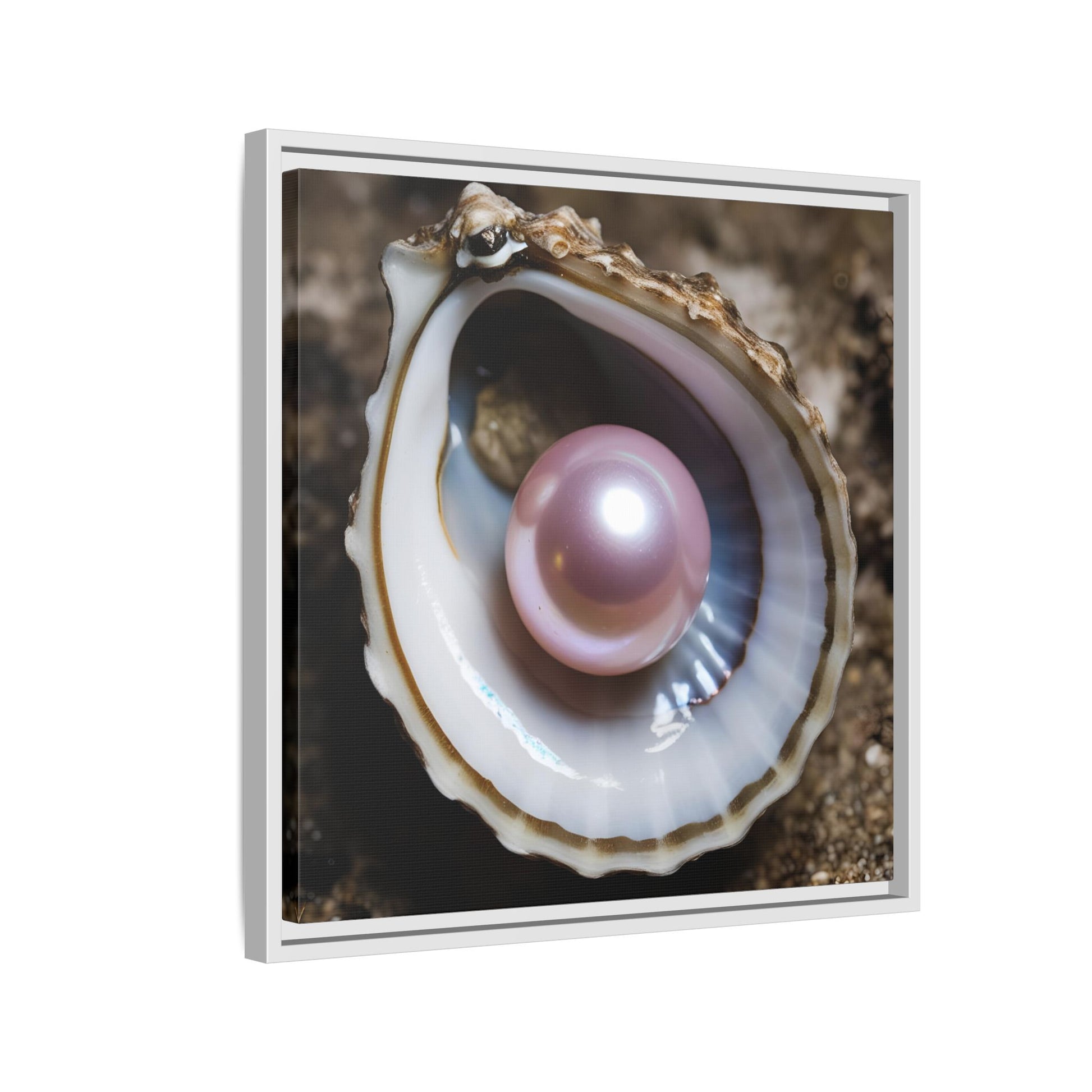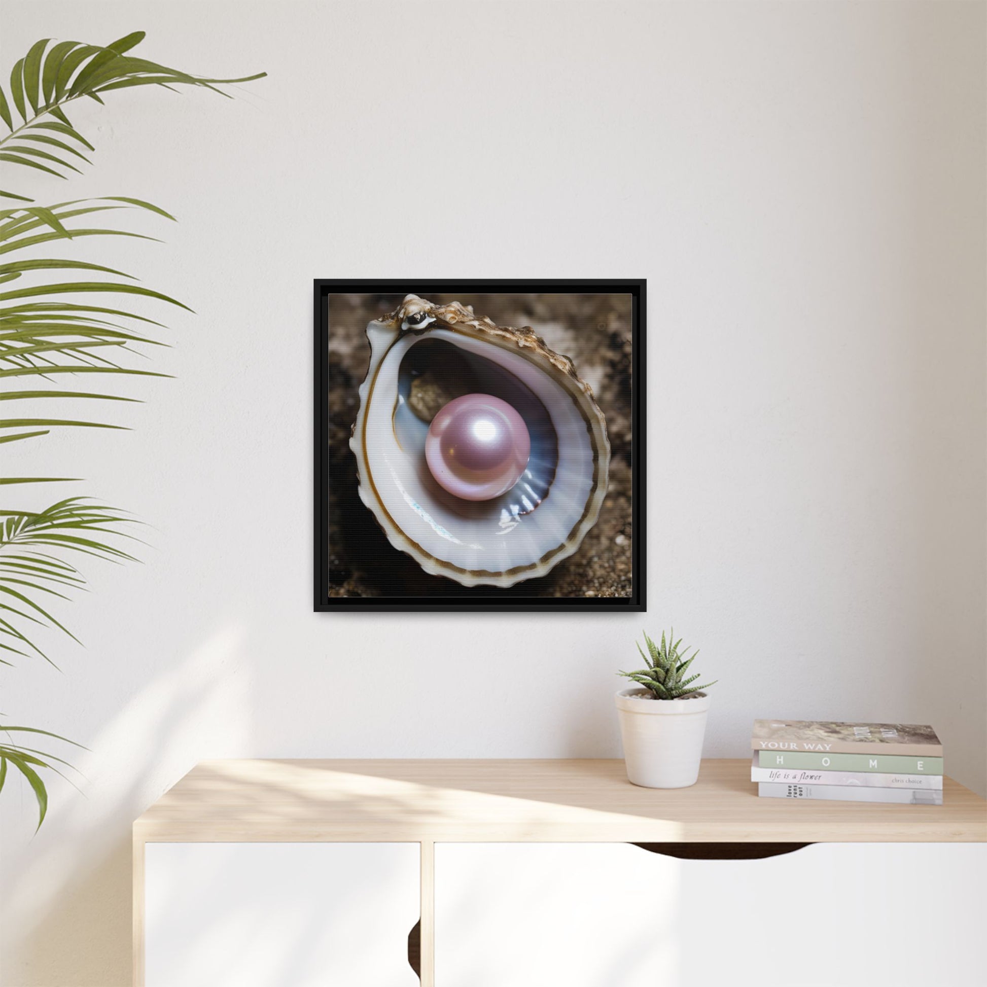 Pink Pearl in Oyster Shell Framed Canvas Wall Art Beach Lover Vacation Oceanic Gift Nature Lover Peaceful Zen Gift 3 frame colors