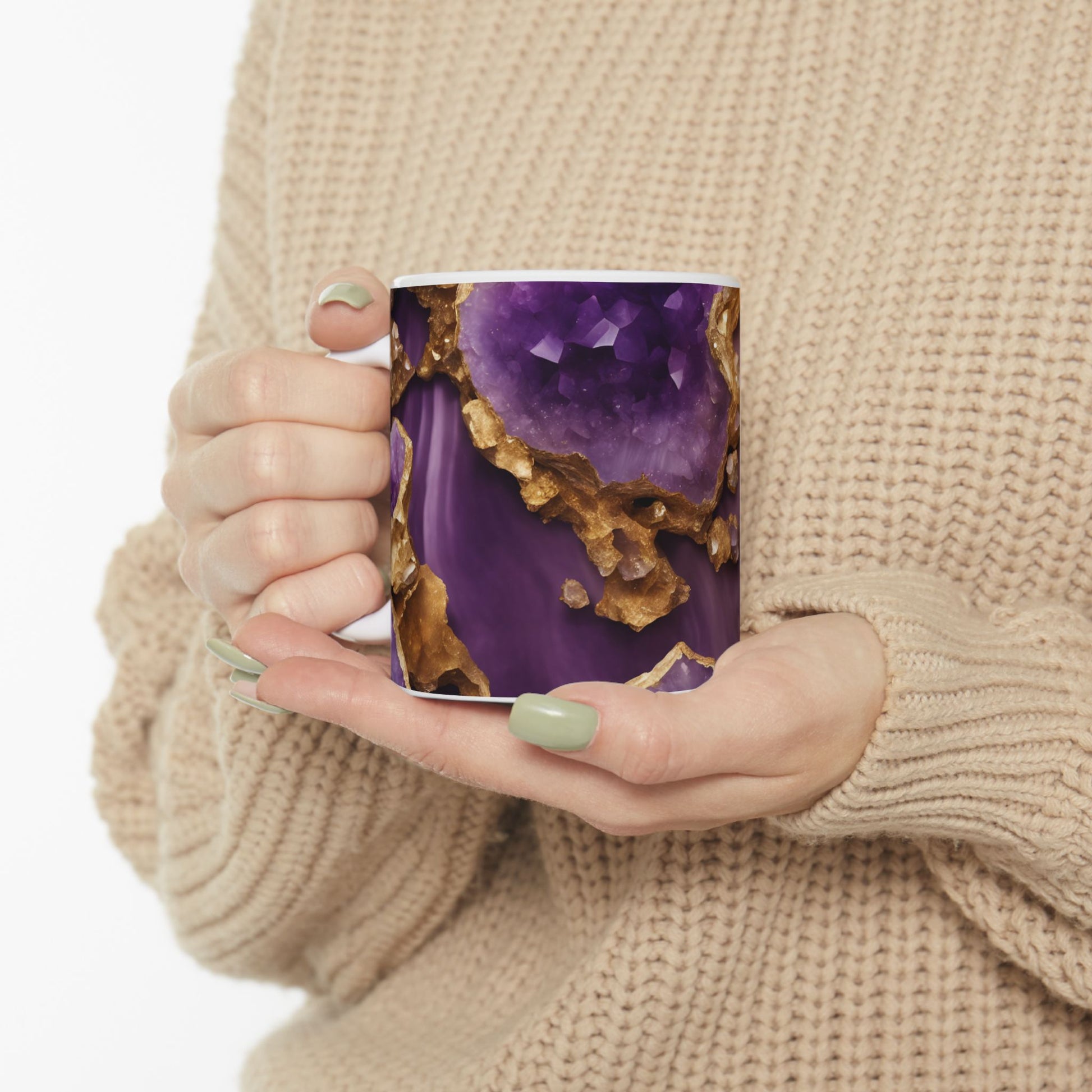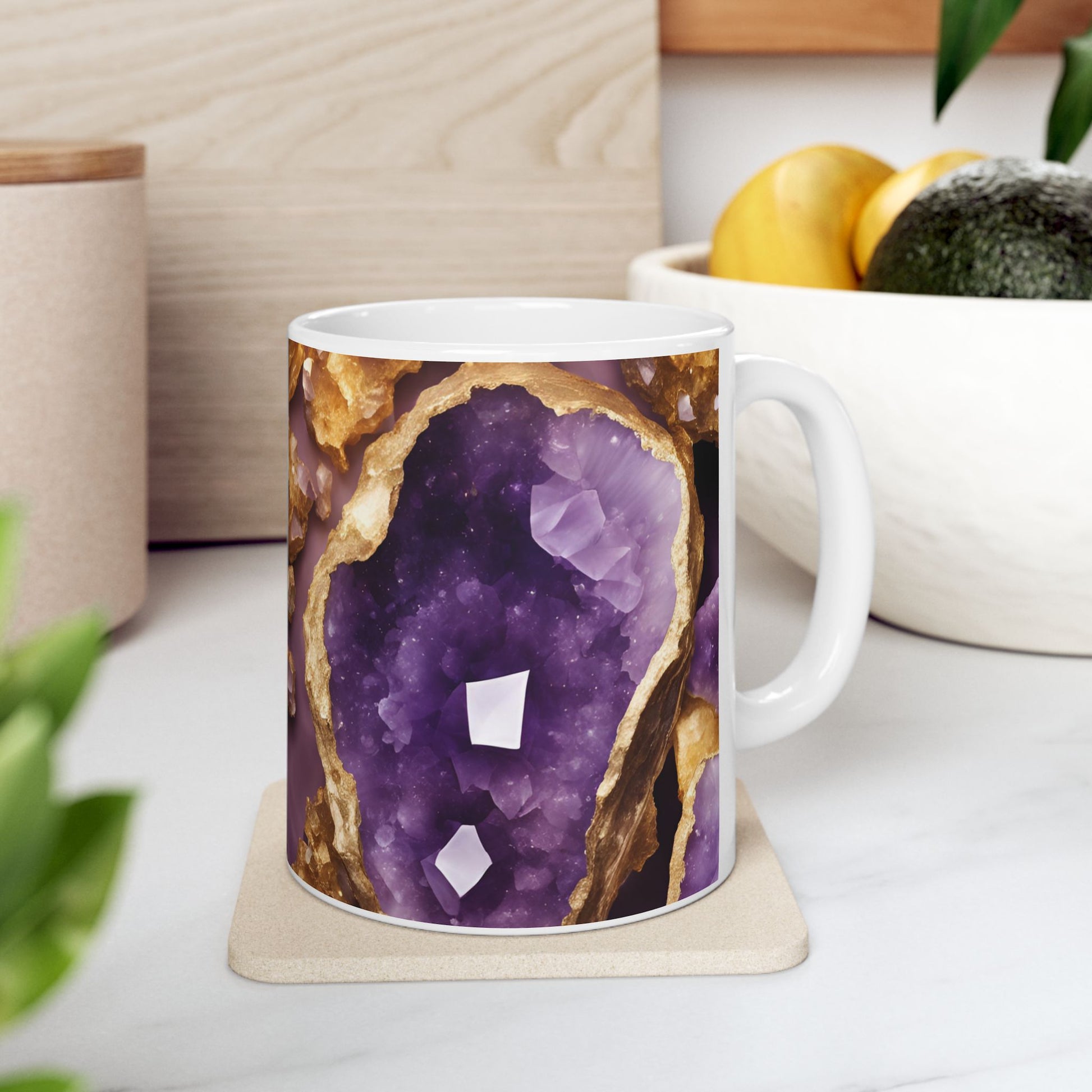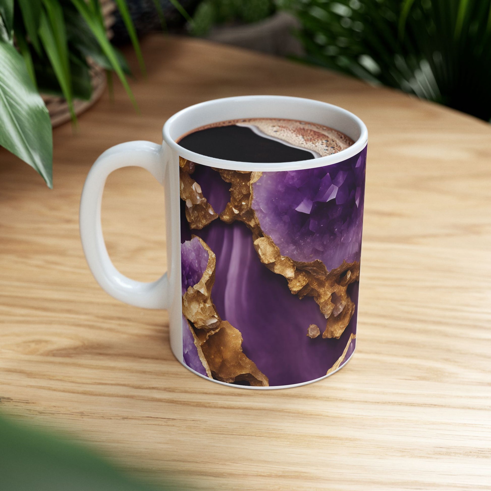 Purple and Gold Amethyst Design Geode Coffee Tea Mug Boho Gemologist Gift for Her Nature Lover Gift Geology Marble Agate Rock Lover Gift
