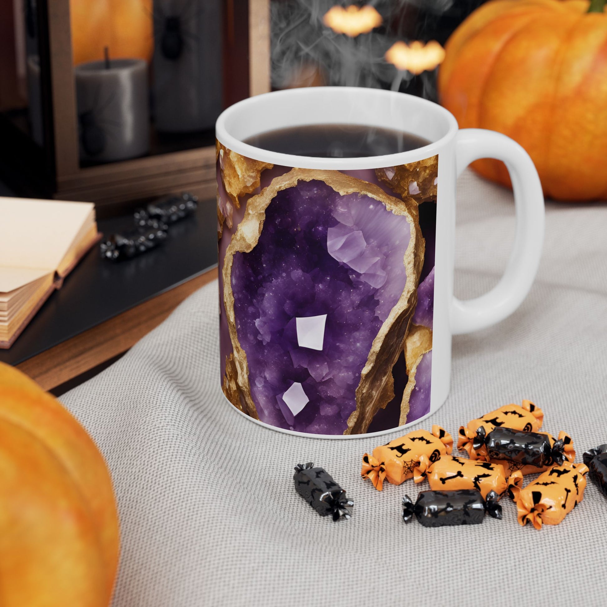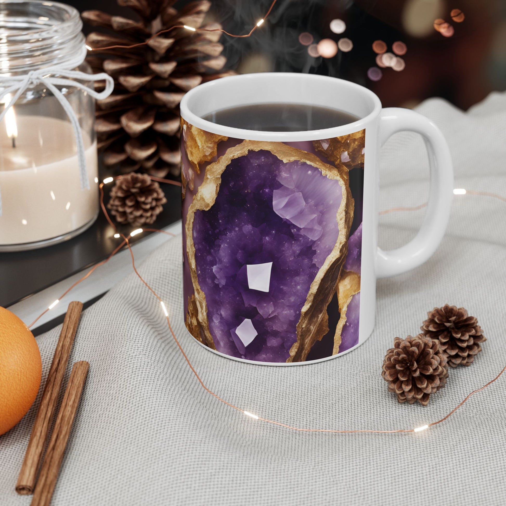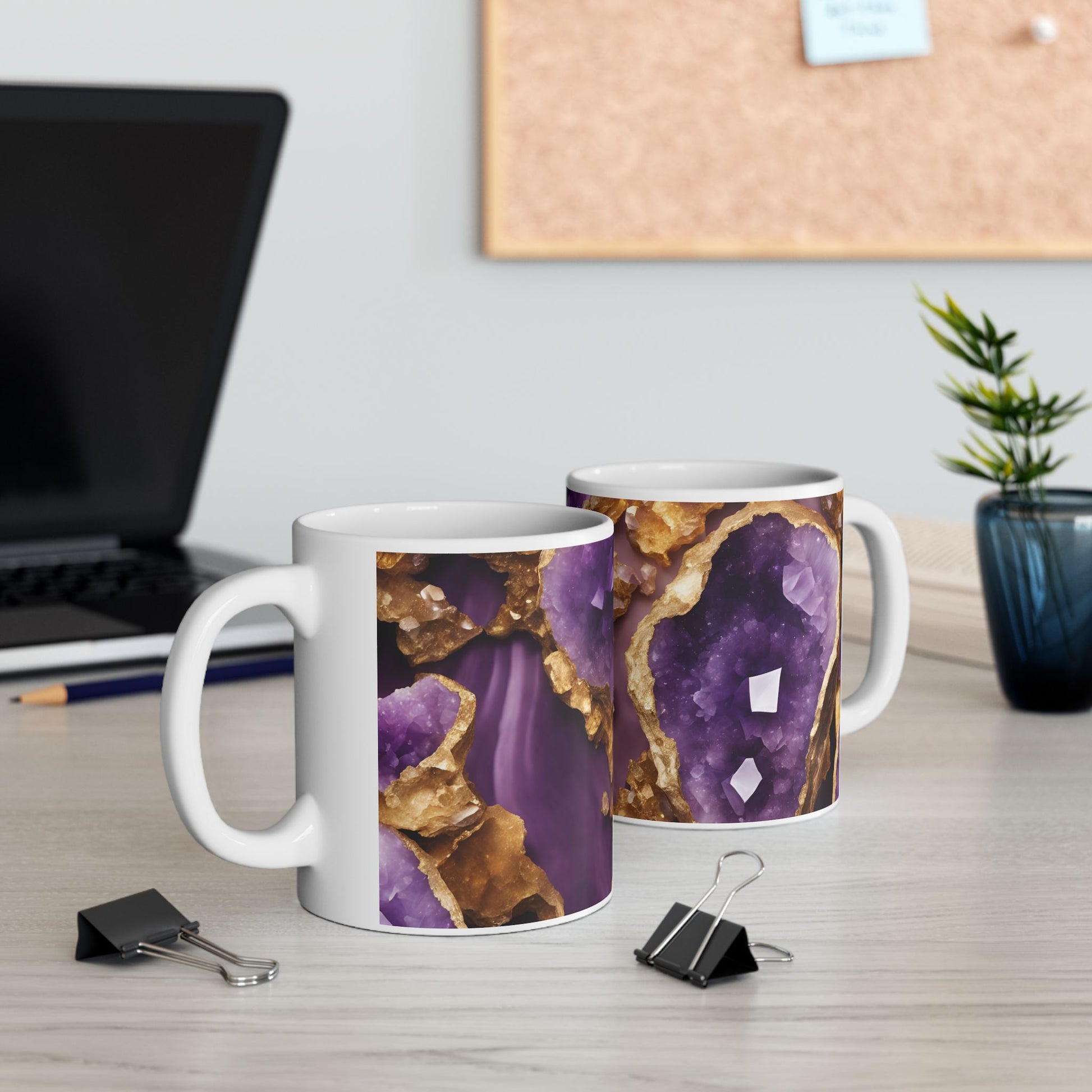 Purple and Gold Amethyst Design Geode Coffee Tea Mug Boho Gemologist Gift for Her Nature Lover Gift Geology Marble Agate Rock Lover Gift
