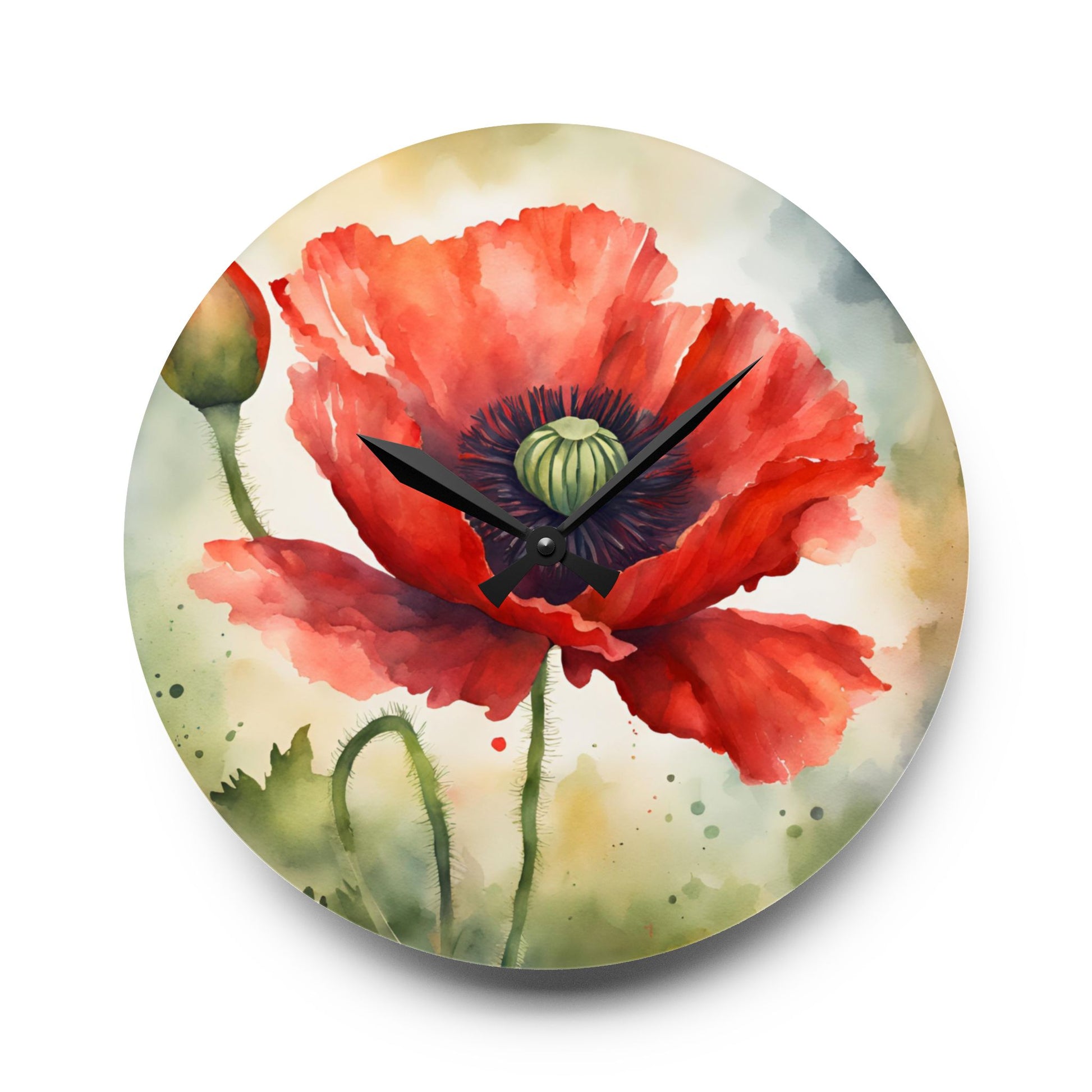 Red Poppy Design Acrylic Office Clock Unique Colorful Wall Clock for Kitchen or Living Room Nature Lover Gift Flower Art Design